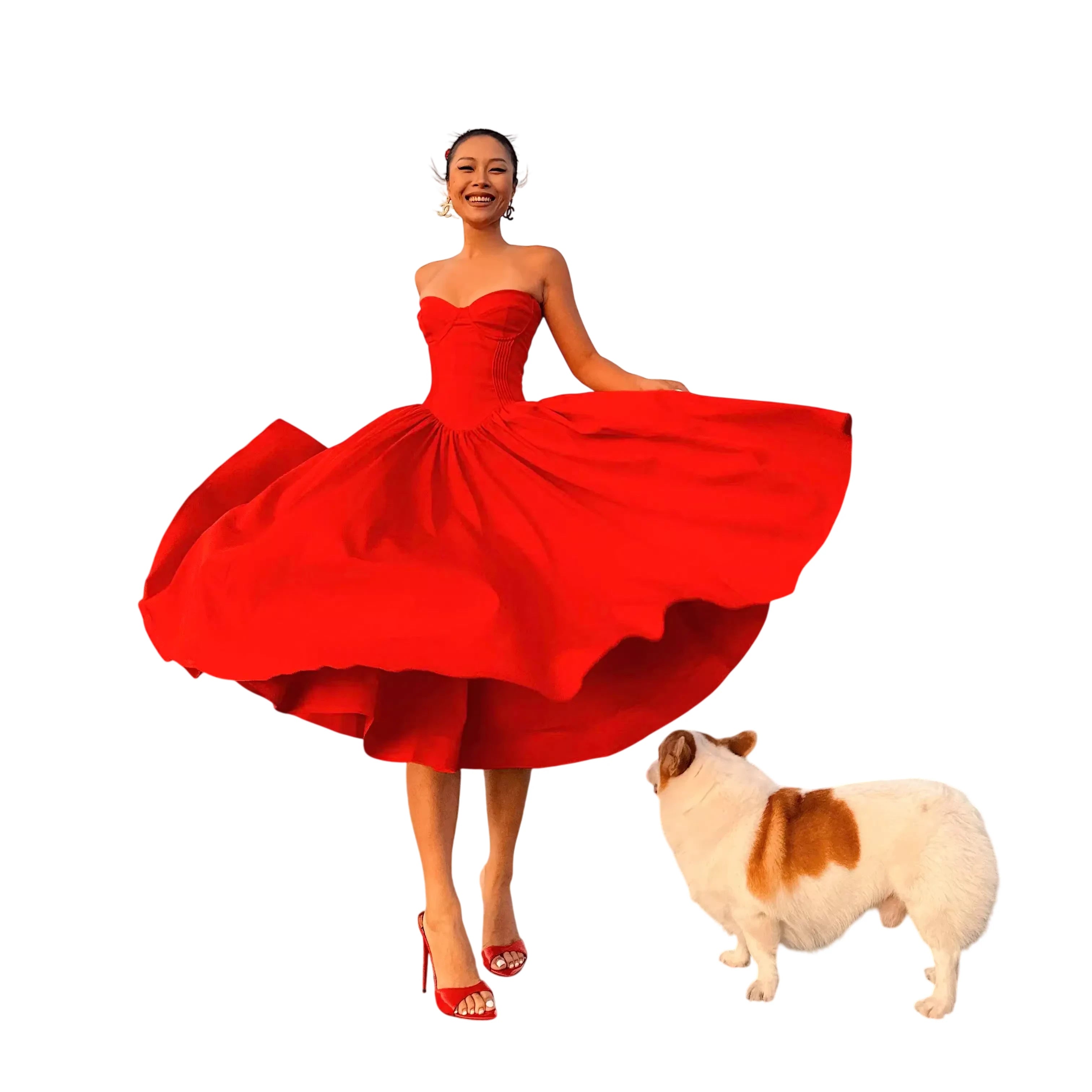 This elegant women's strapless dress features a romantic red hue with a structured bodice for a flattering fit. The double-layered, voluminous A-line skirt adds a touch of ballet-inspired whimsy, making it a perfect choice for birthdays, engagements, and special toast ceremonies. Designed to create graceful movement and timeless charm, this dress embodies feminine sophistication with a playful twist.