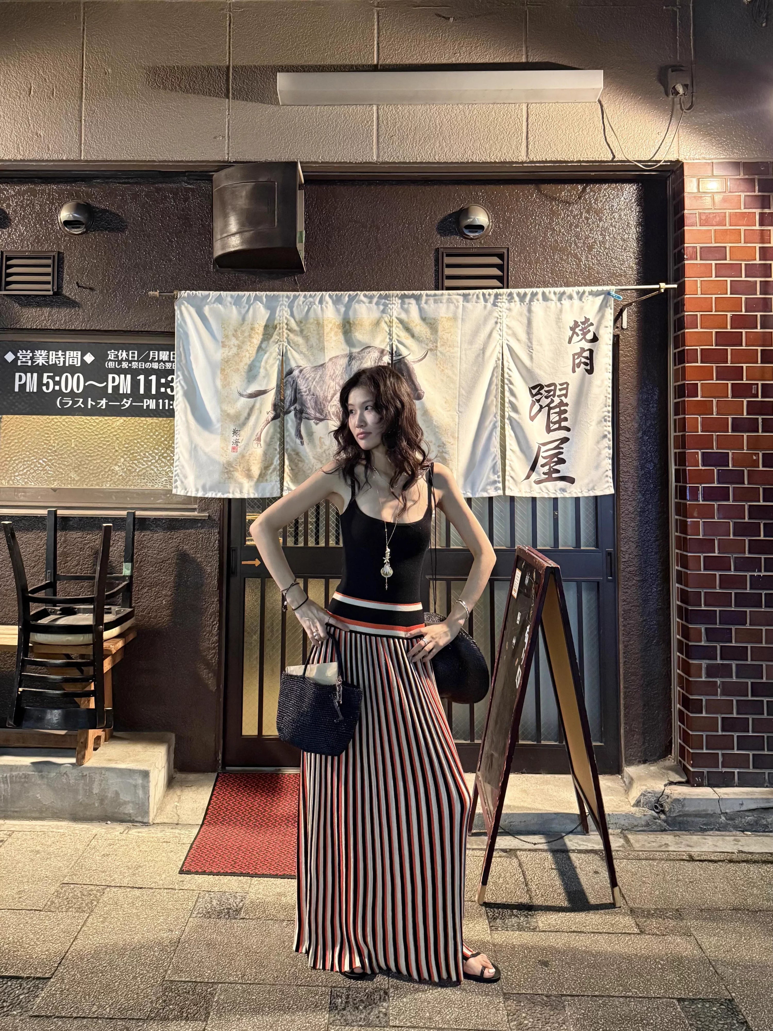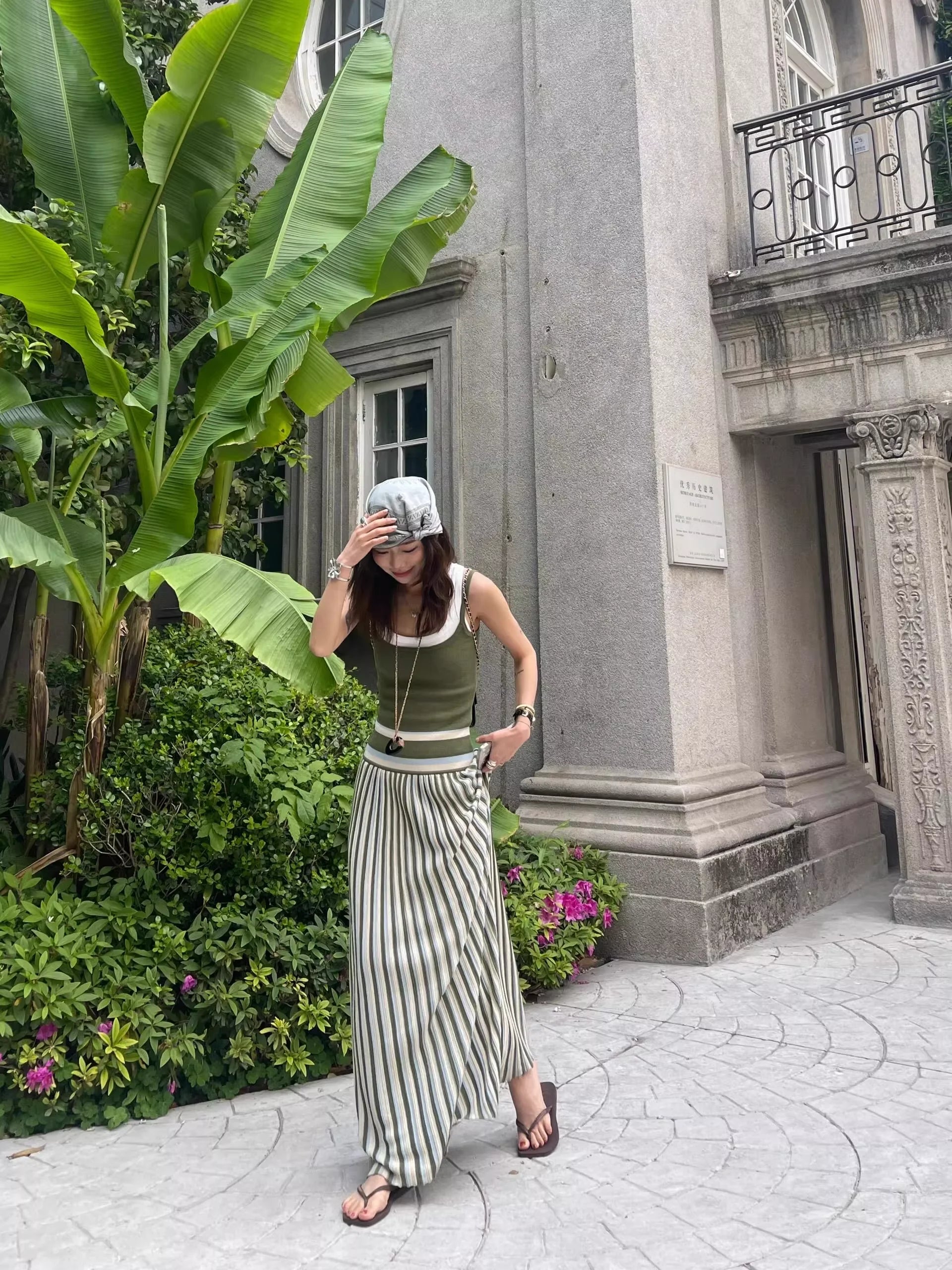 1S STUDIO Retro Striped Spaghetti Strap Maxi Dress
