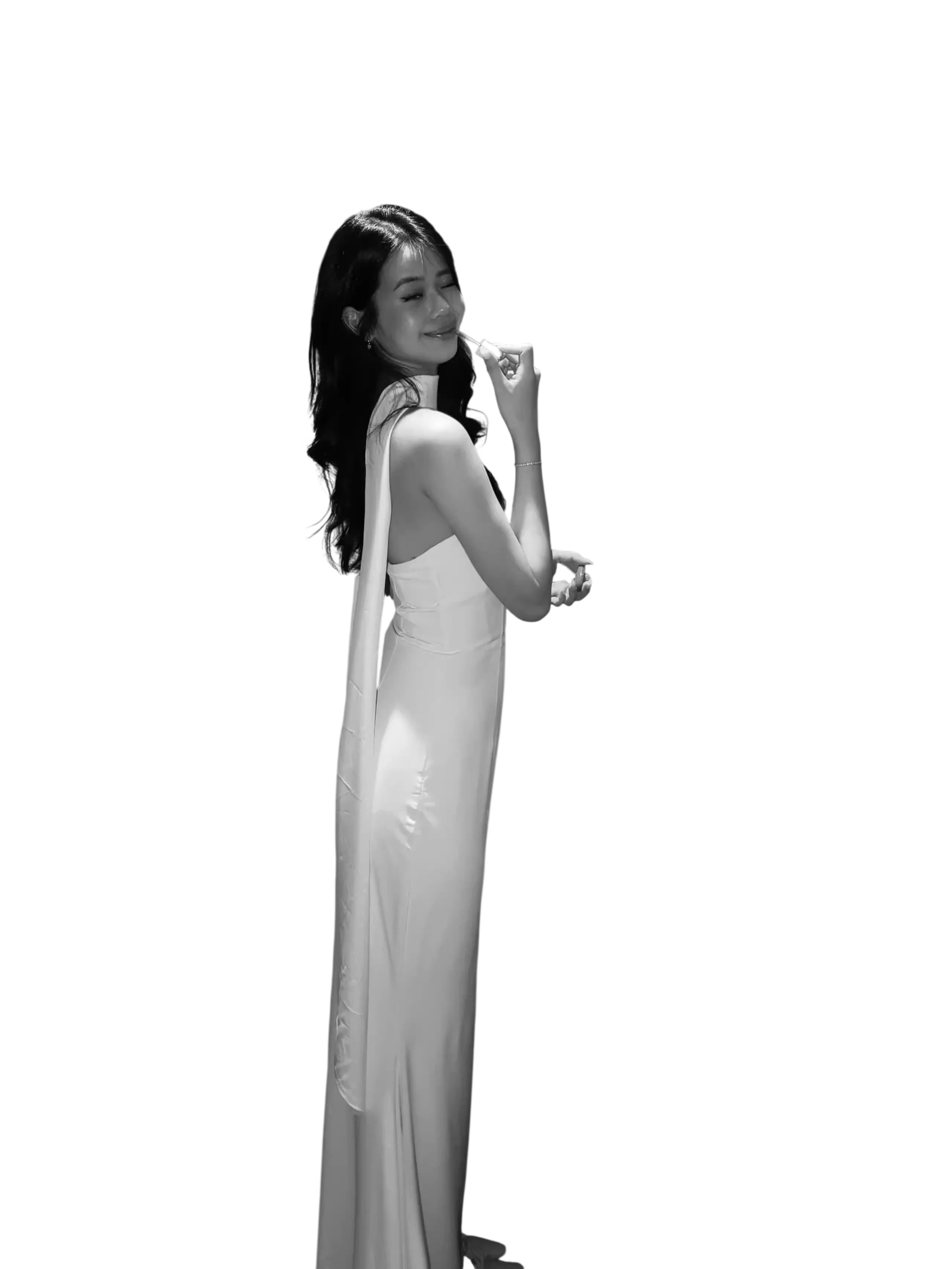 1S STUDIO Strapless Mermaid Gown with Neck Scarf - French Minimalist Style