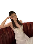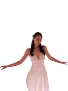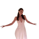 1S STUDIO White Beaded Sequin Deep V Evening Gown