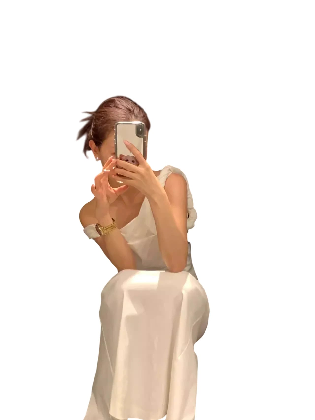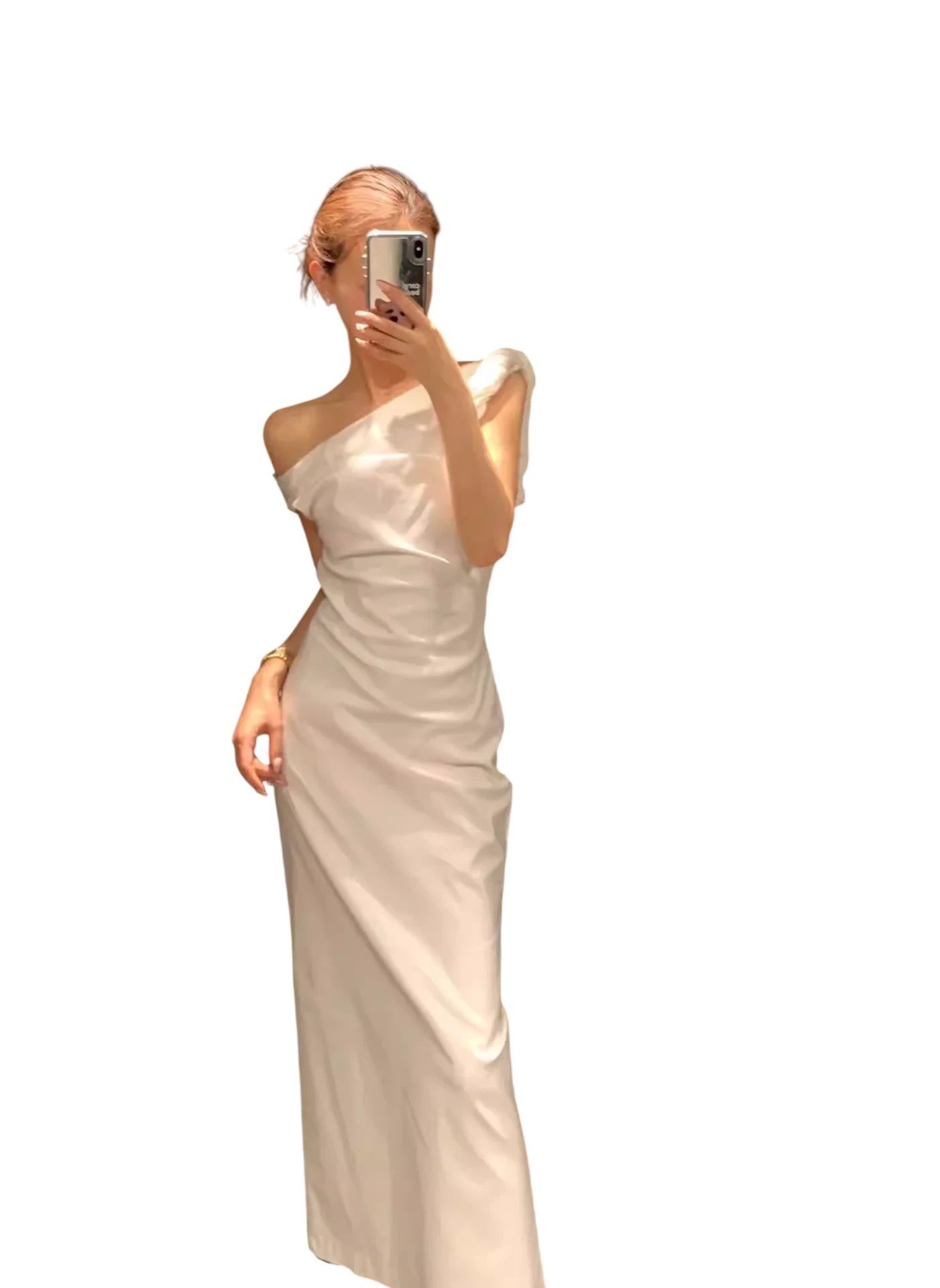 1S STUDIO White One-Shoulder Ruched Spaghetti Strap Maxi Dress