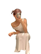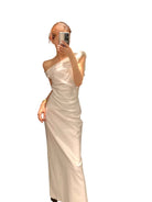 Elevate your formal or vacation wardrobe with this elegant white maxi dress designed for women. Featuring a chic one-shoulder silhouette with delicate spaghetti straps and a ruched bodice, this dress offers a flattering, form-fitting shape. The floor-length design and subtle draping add a touch of sophistication, making it ideal for evening events or upscale getaways.
