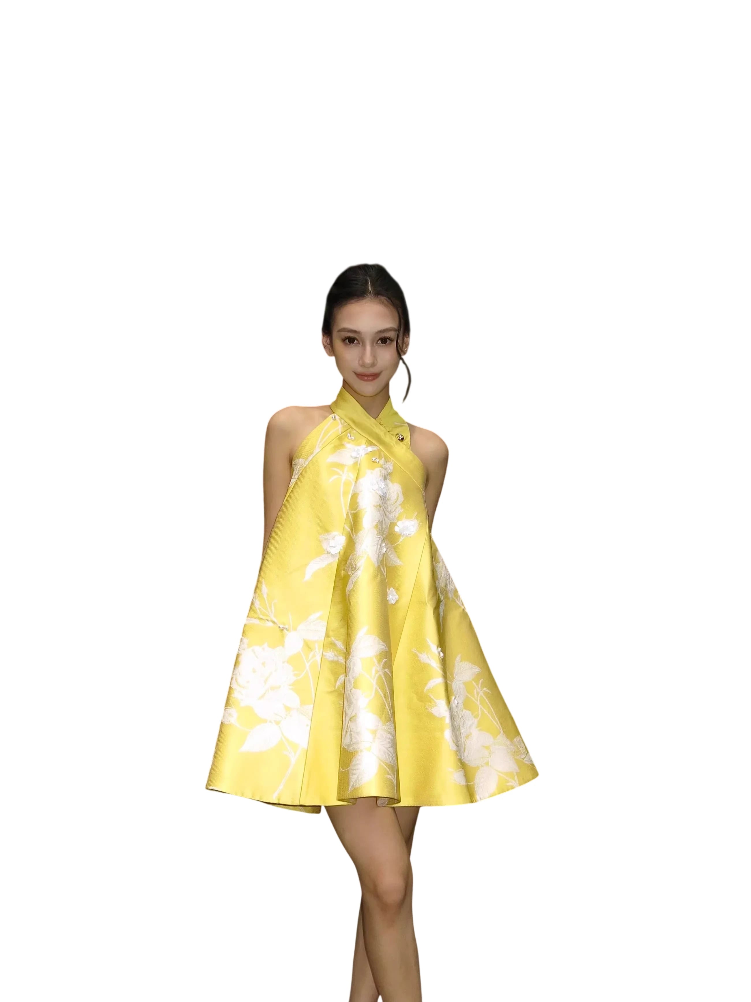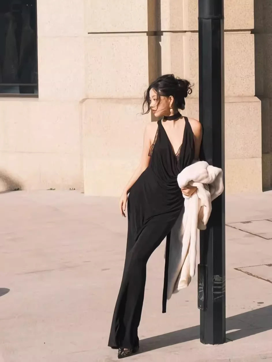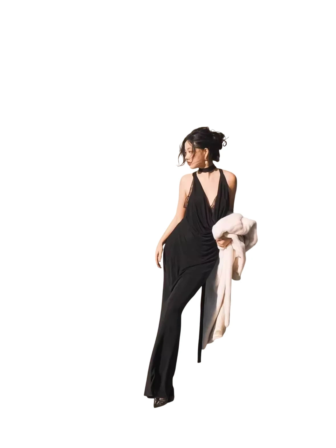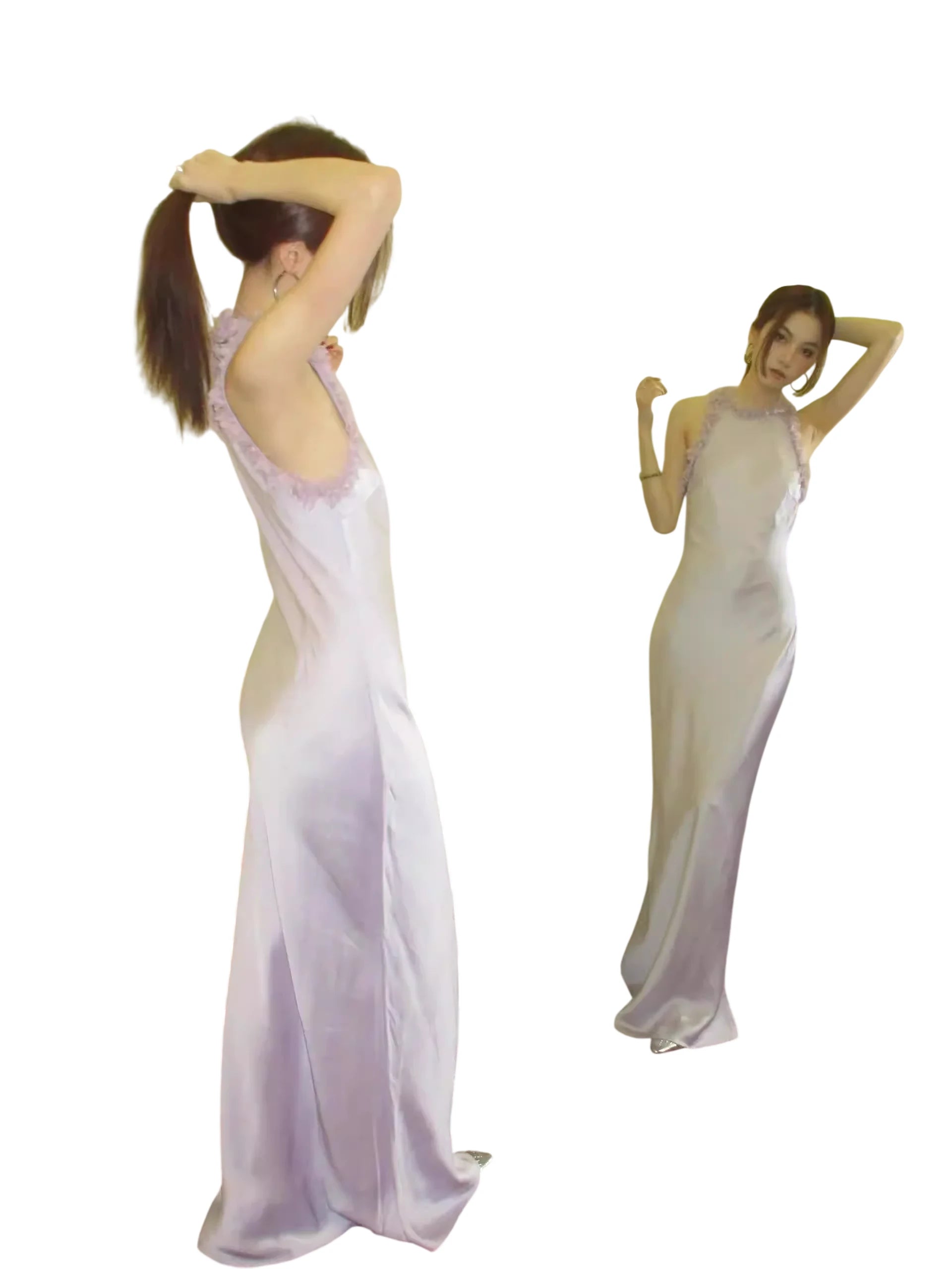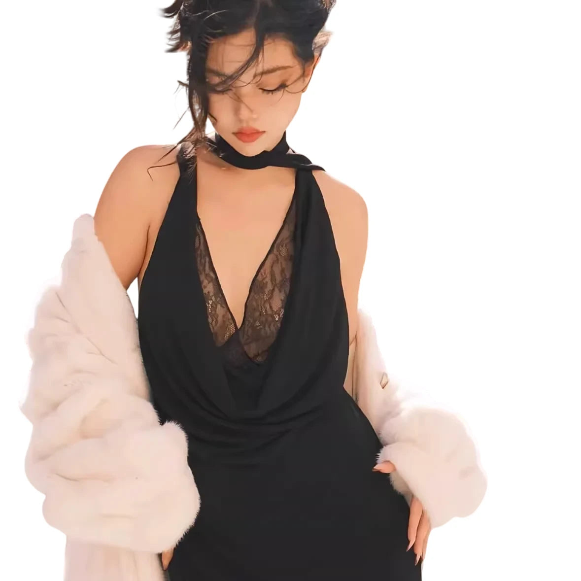 1S STUDIO Lace Spliced Backless Knotted Camisole Dress