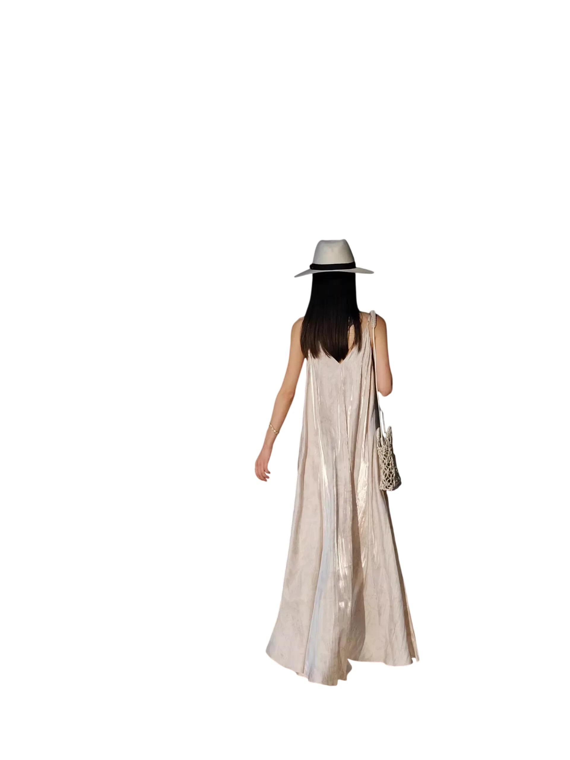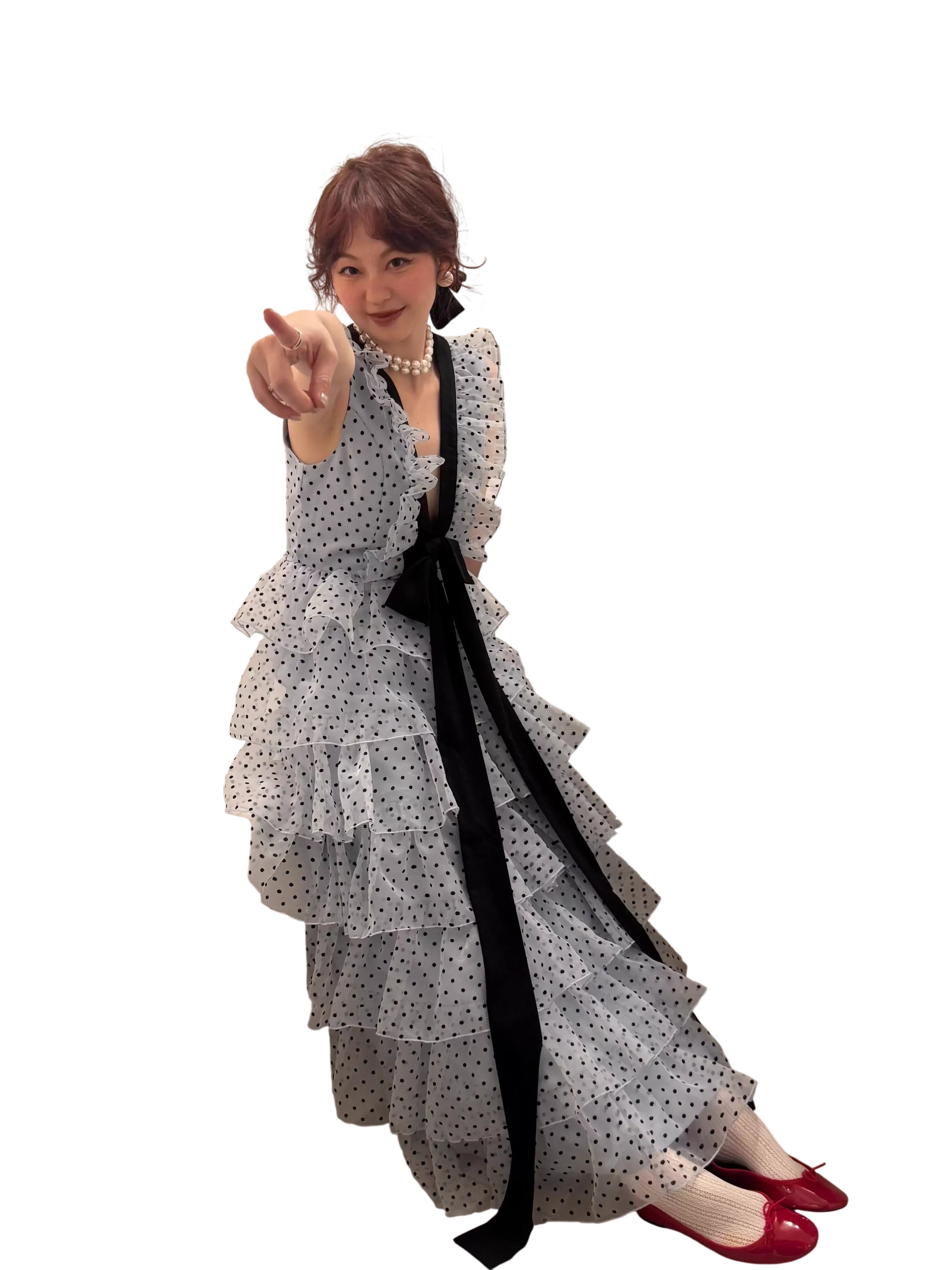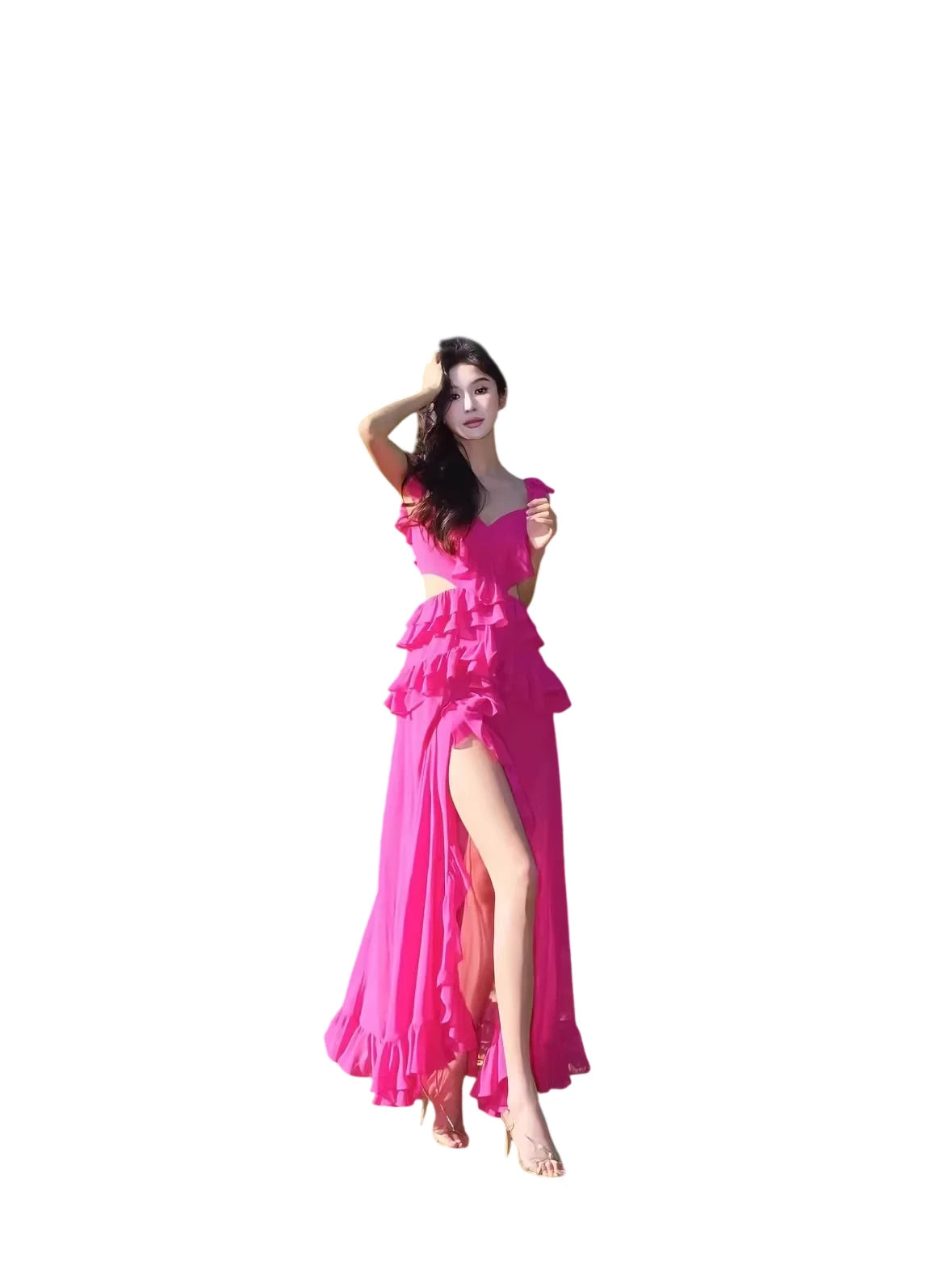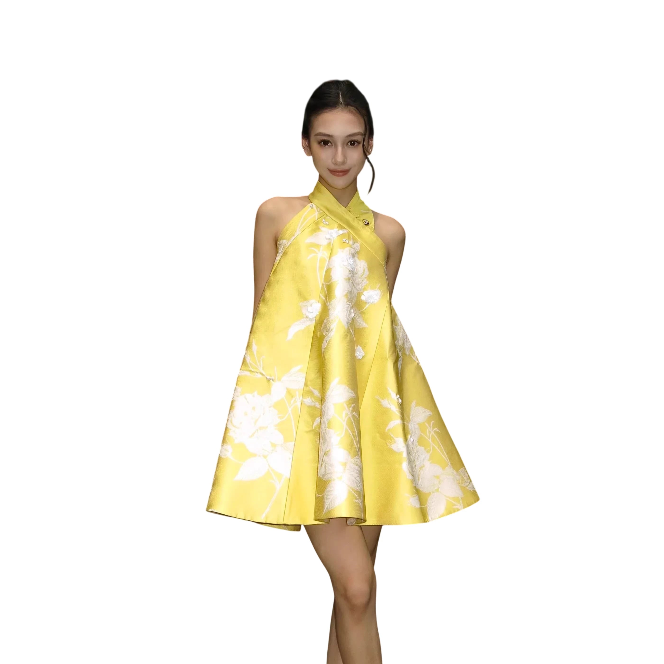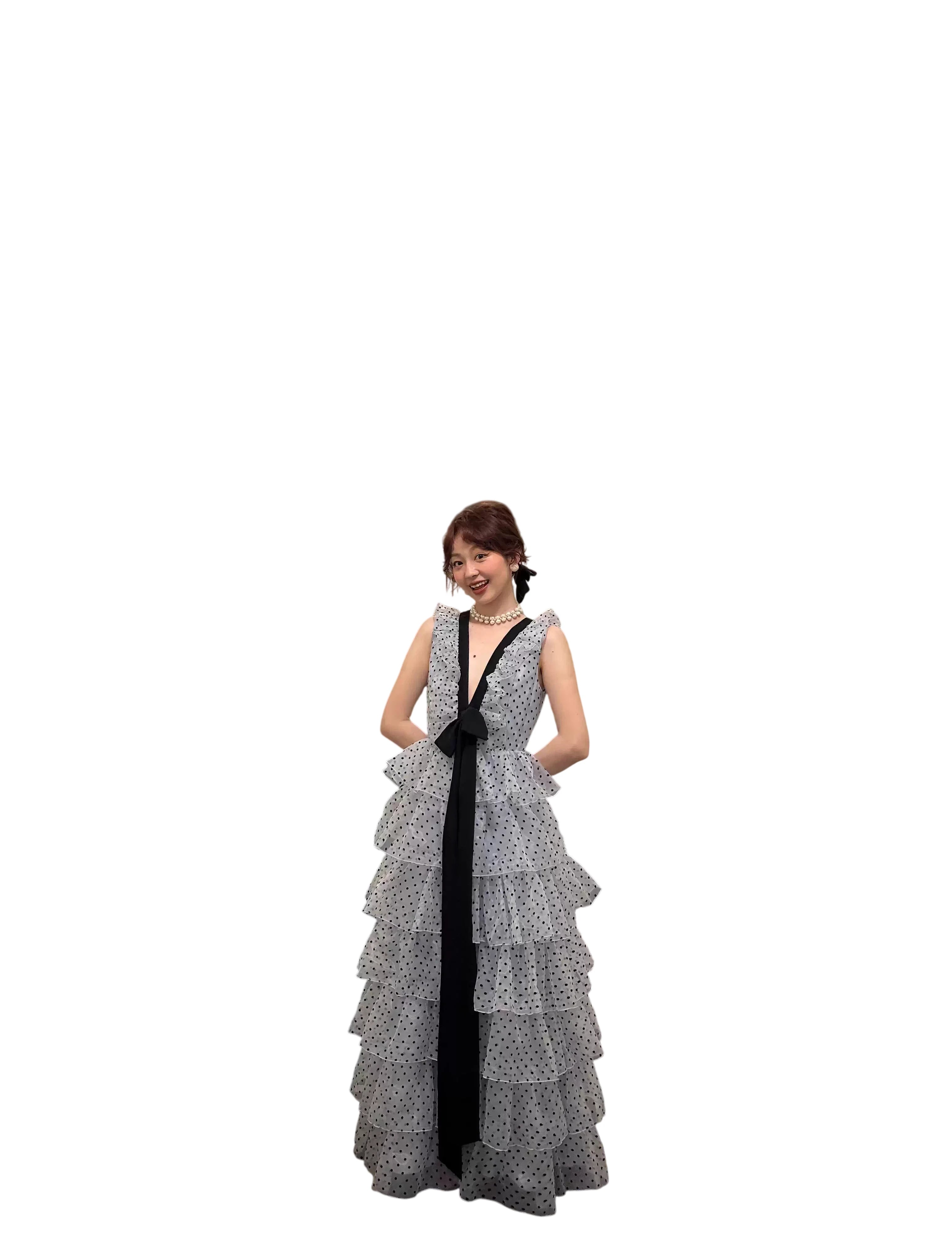 1S STUDIO Lace Spliced Backless Knotted Camisole Dress