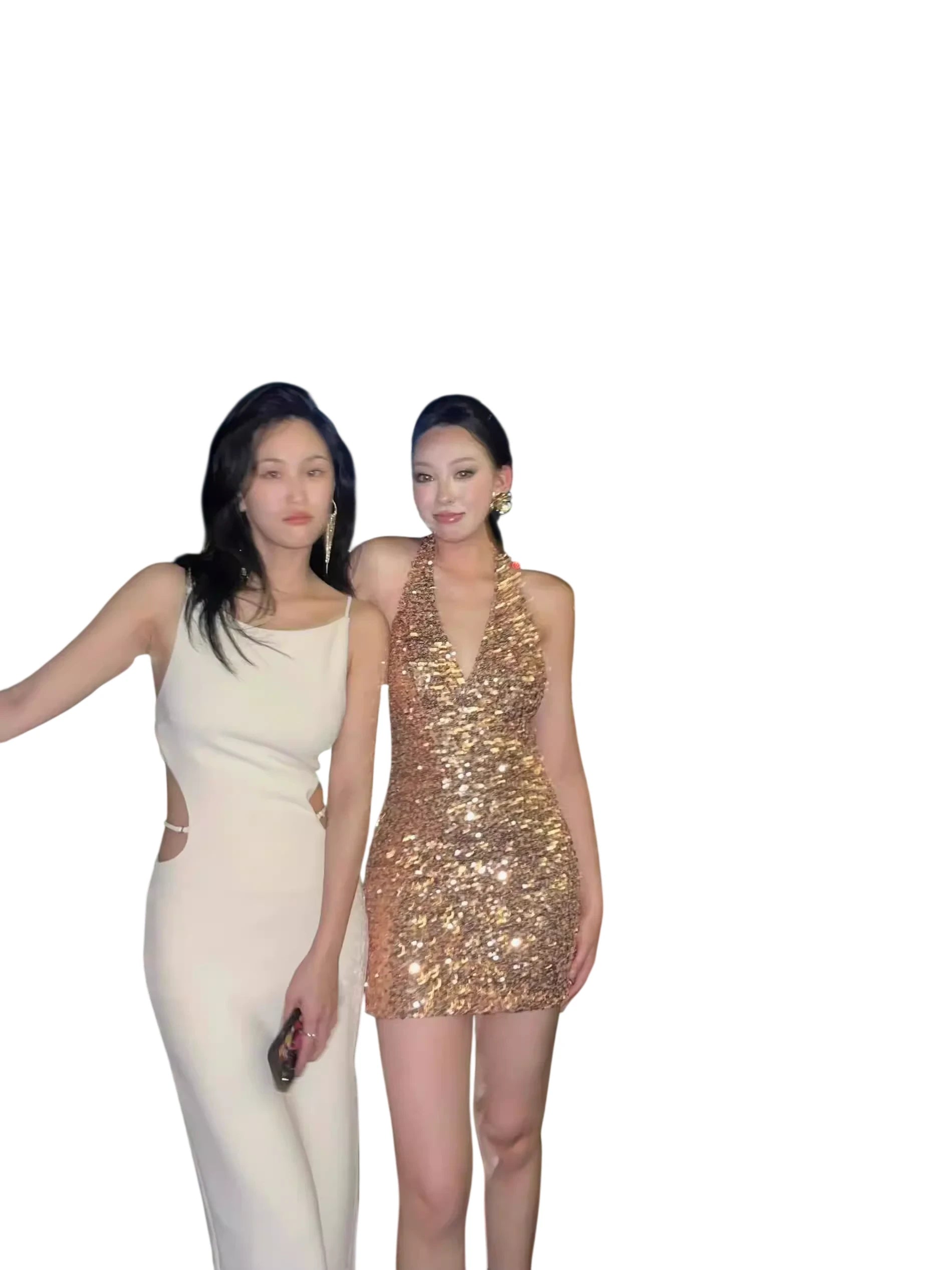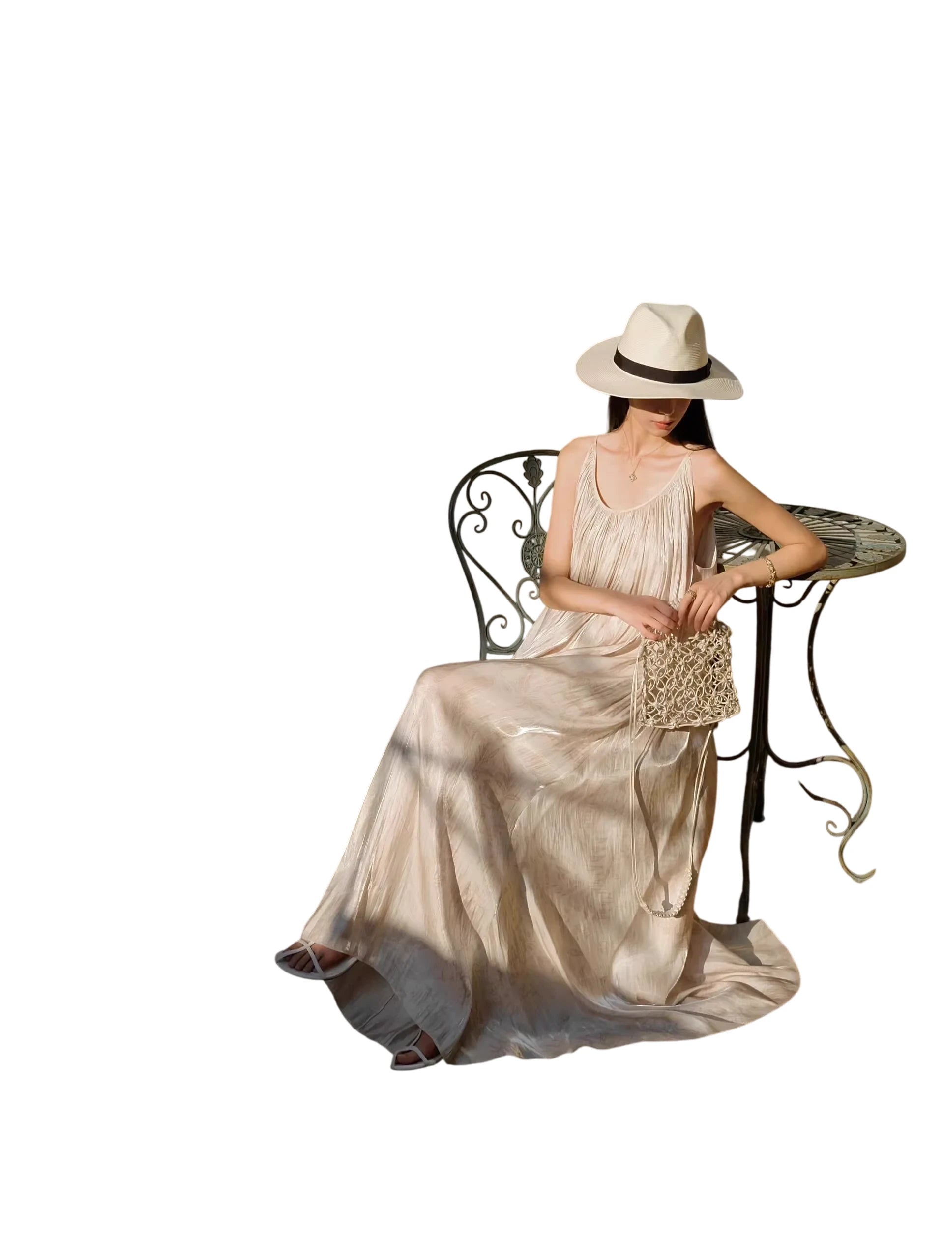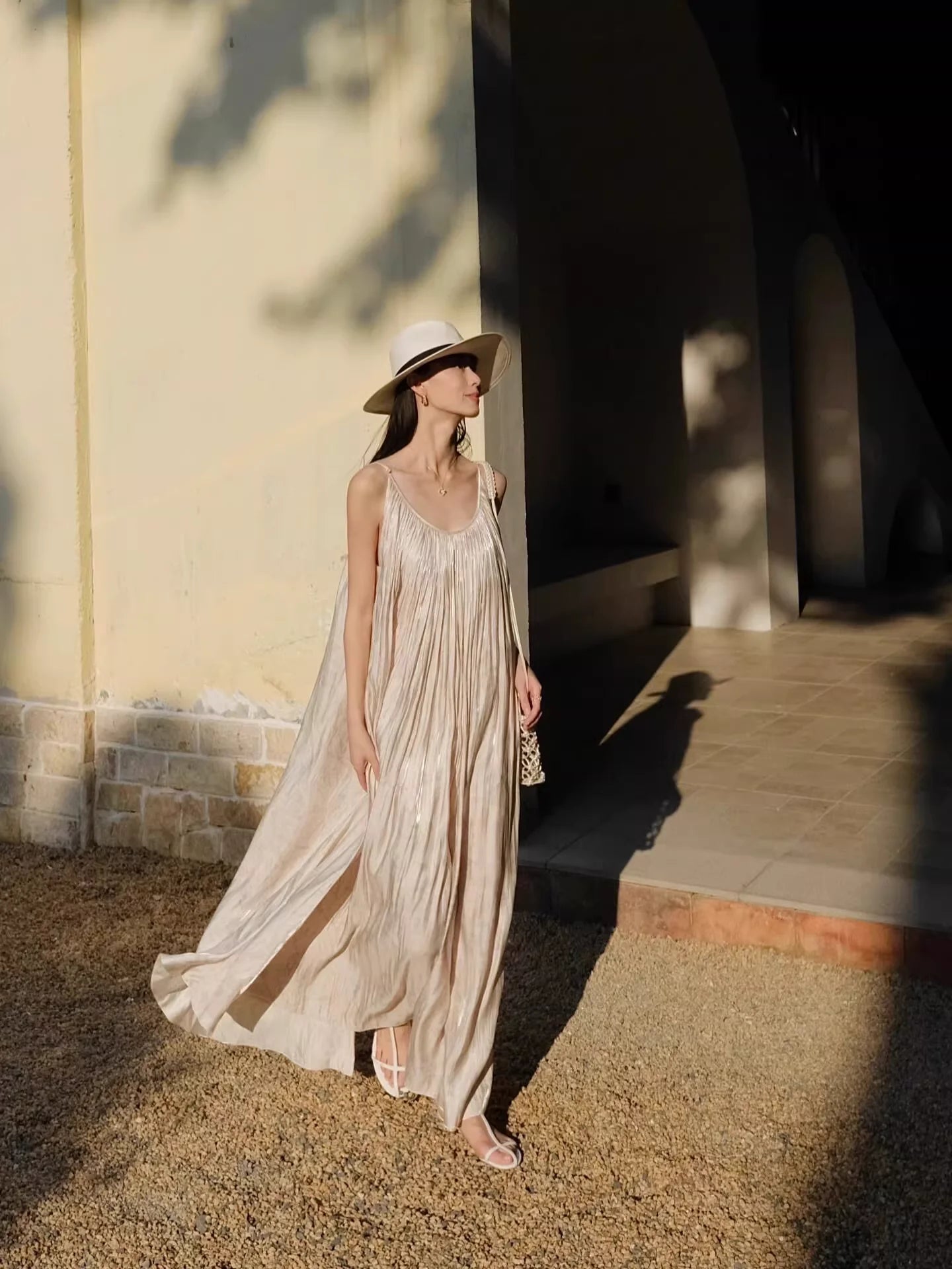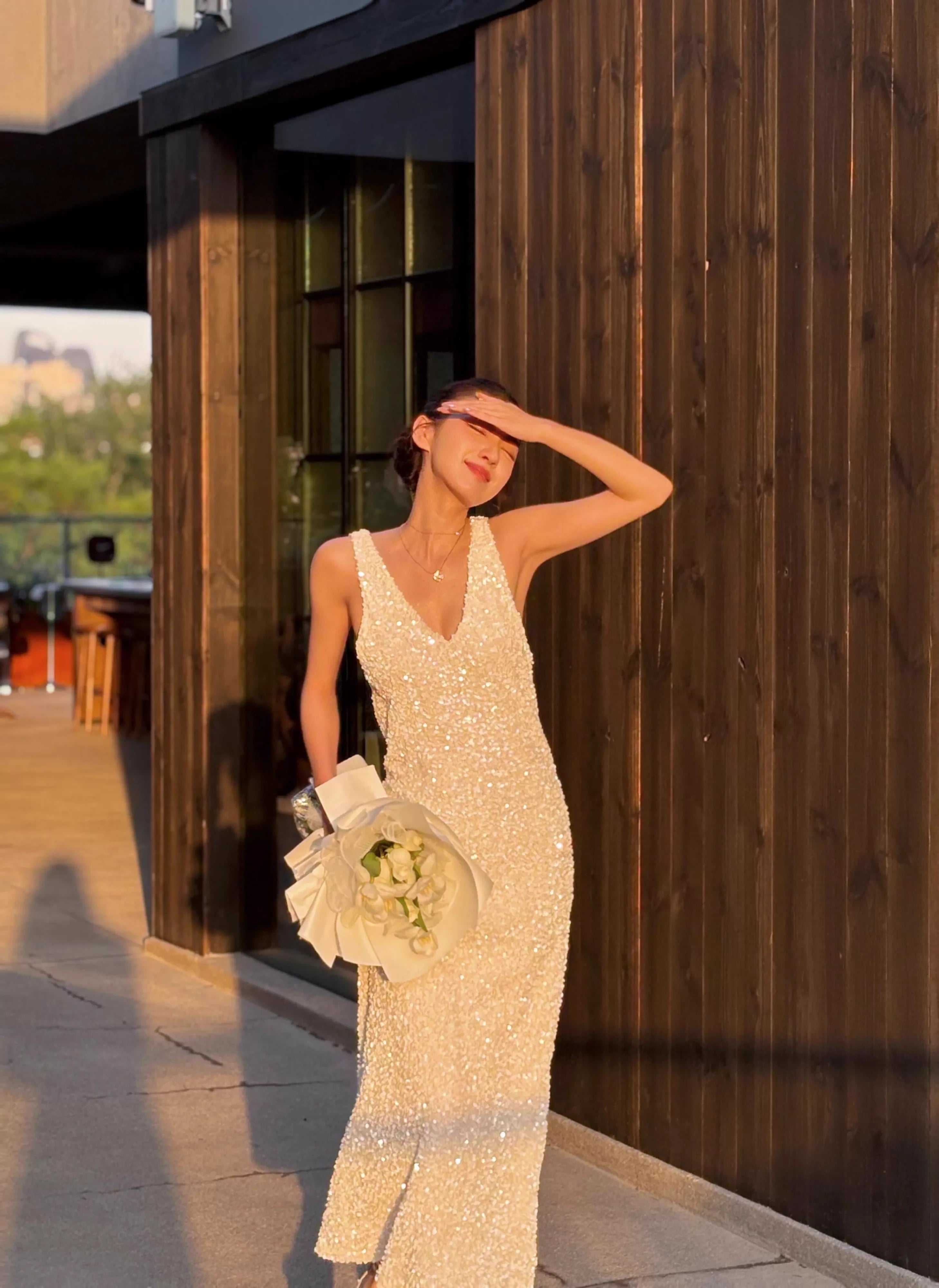 1S STUDIO Lace Spliced Backless Knotted Camisole Dress