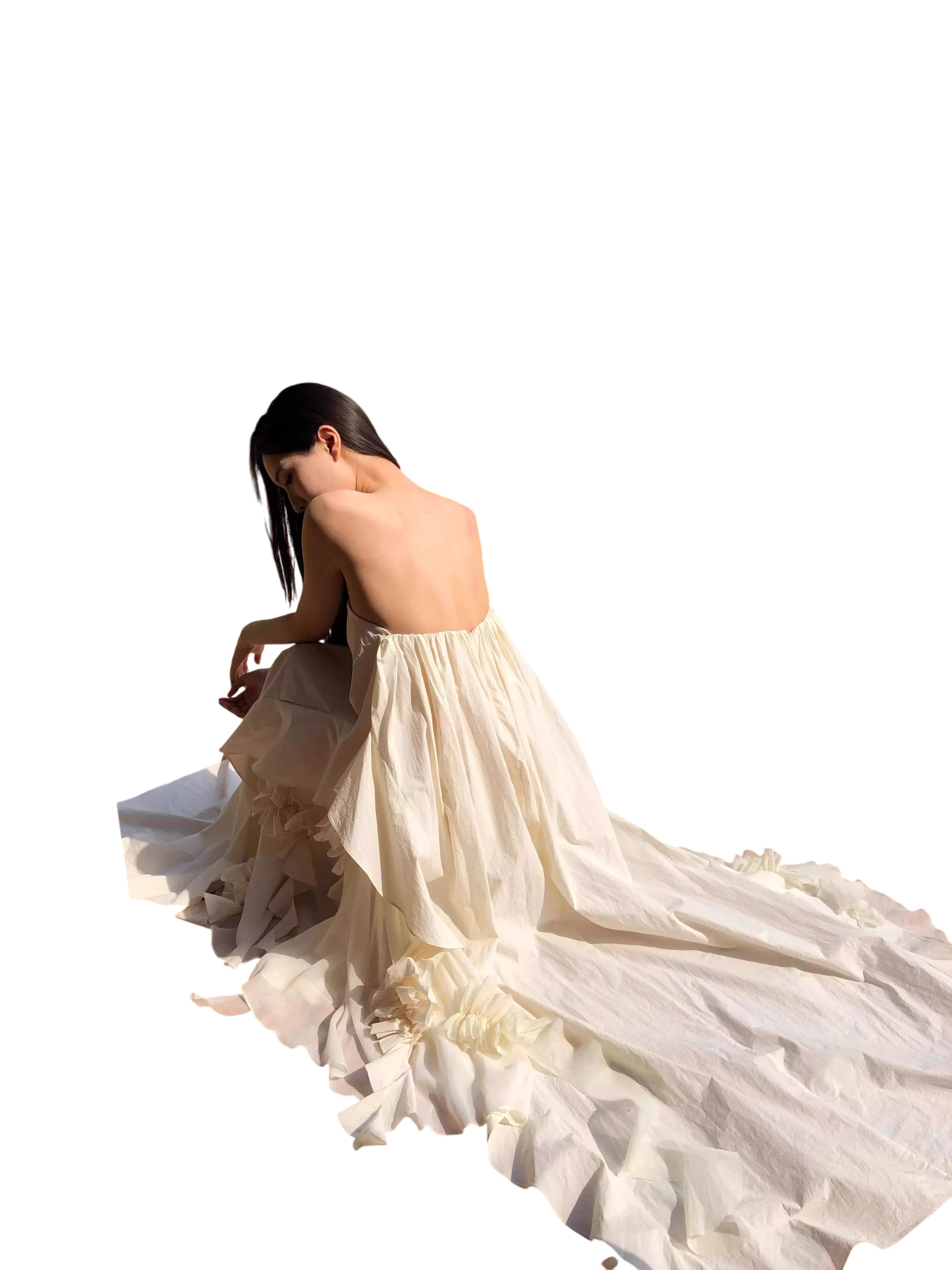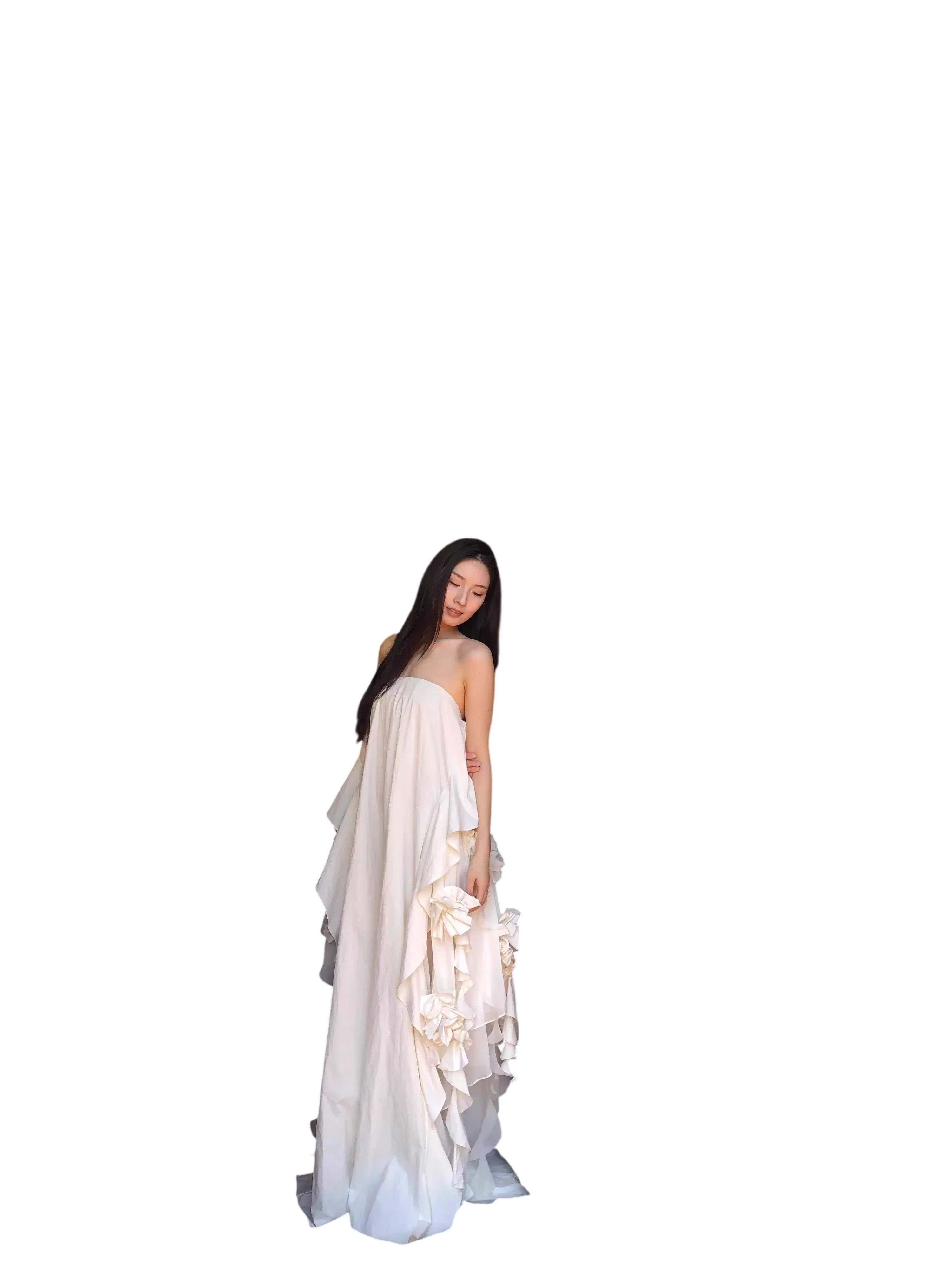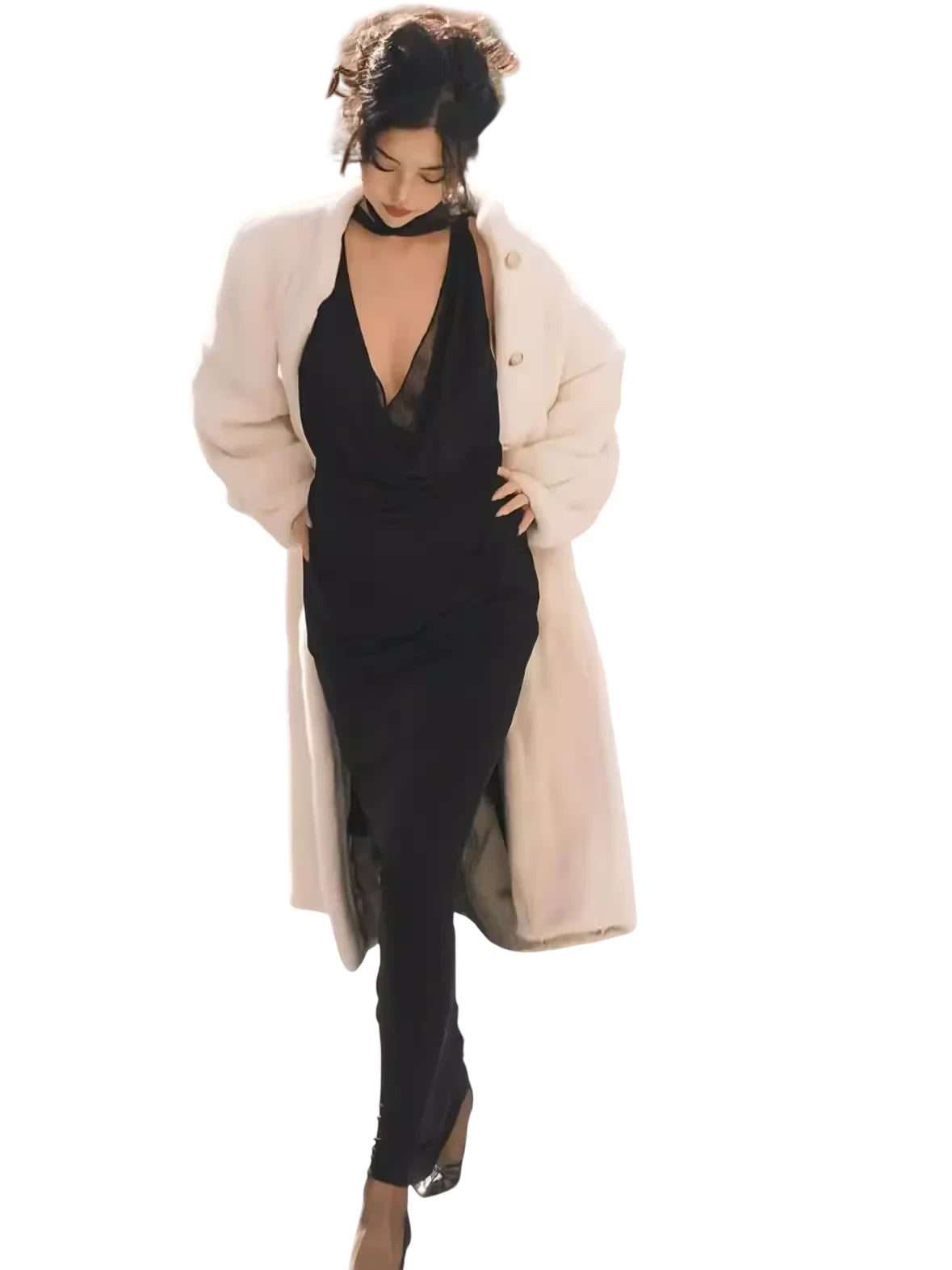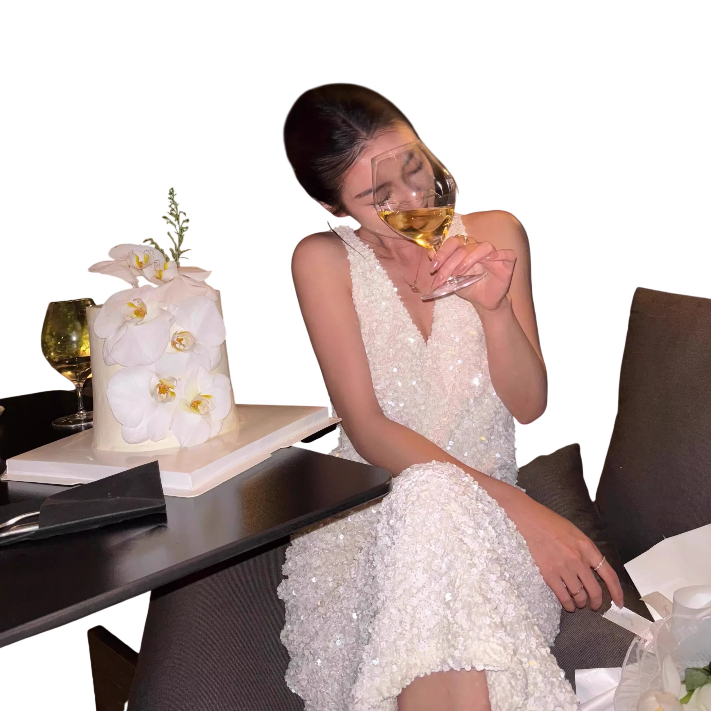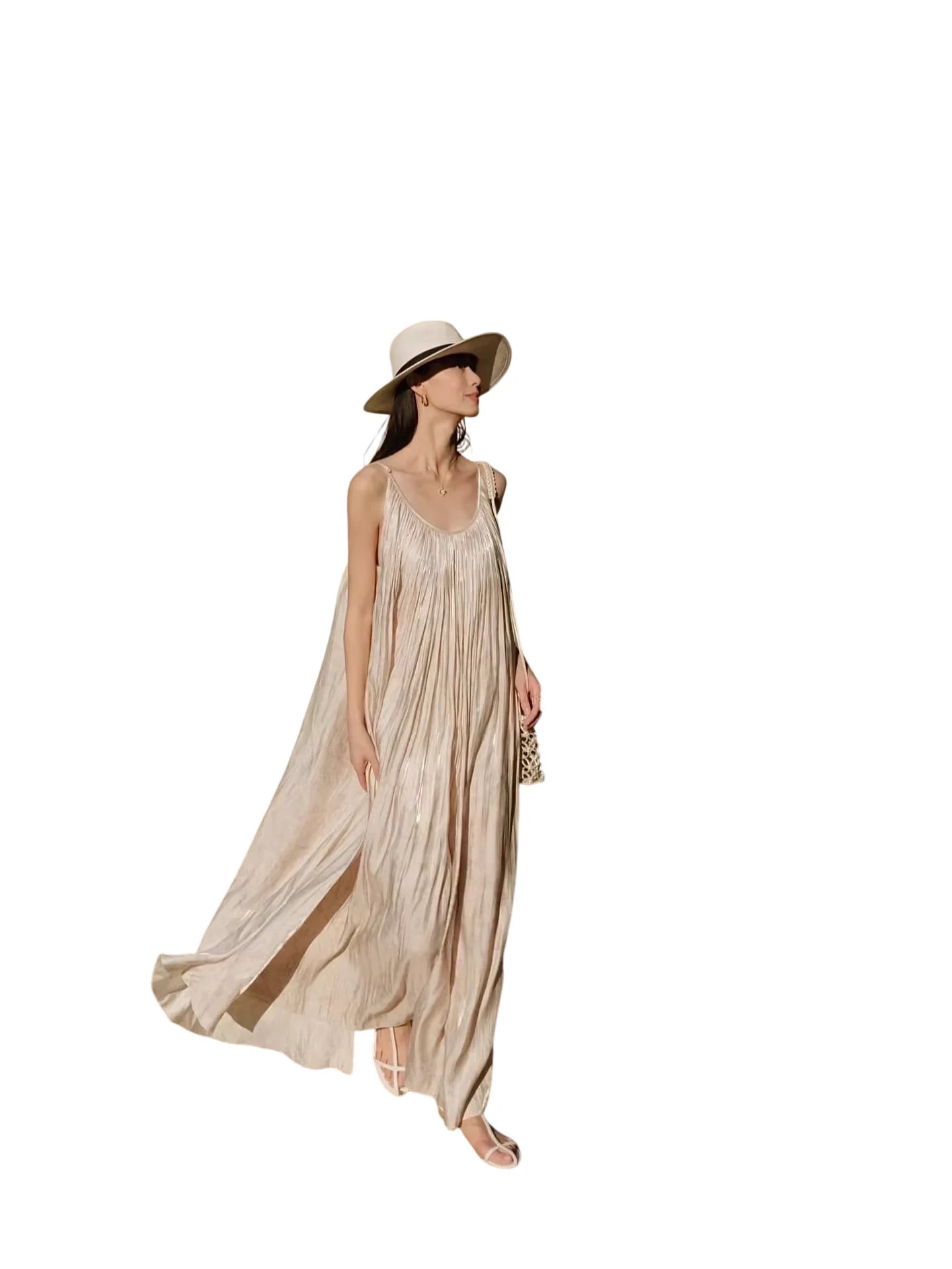 1S STUDIO Lace Spliced Backless Knotted Camisole Dress