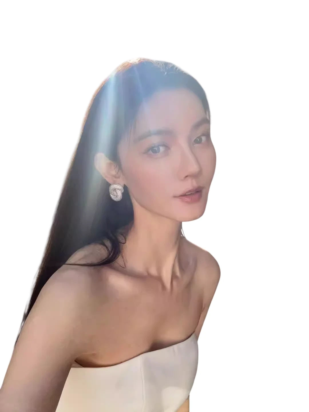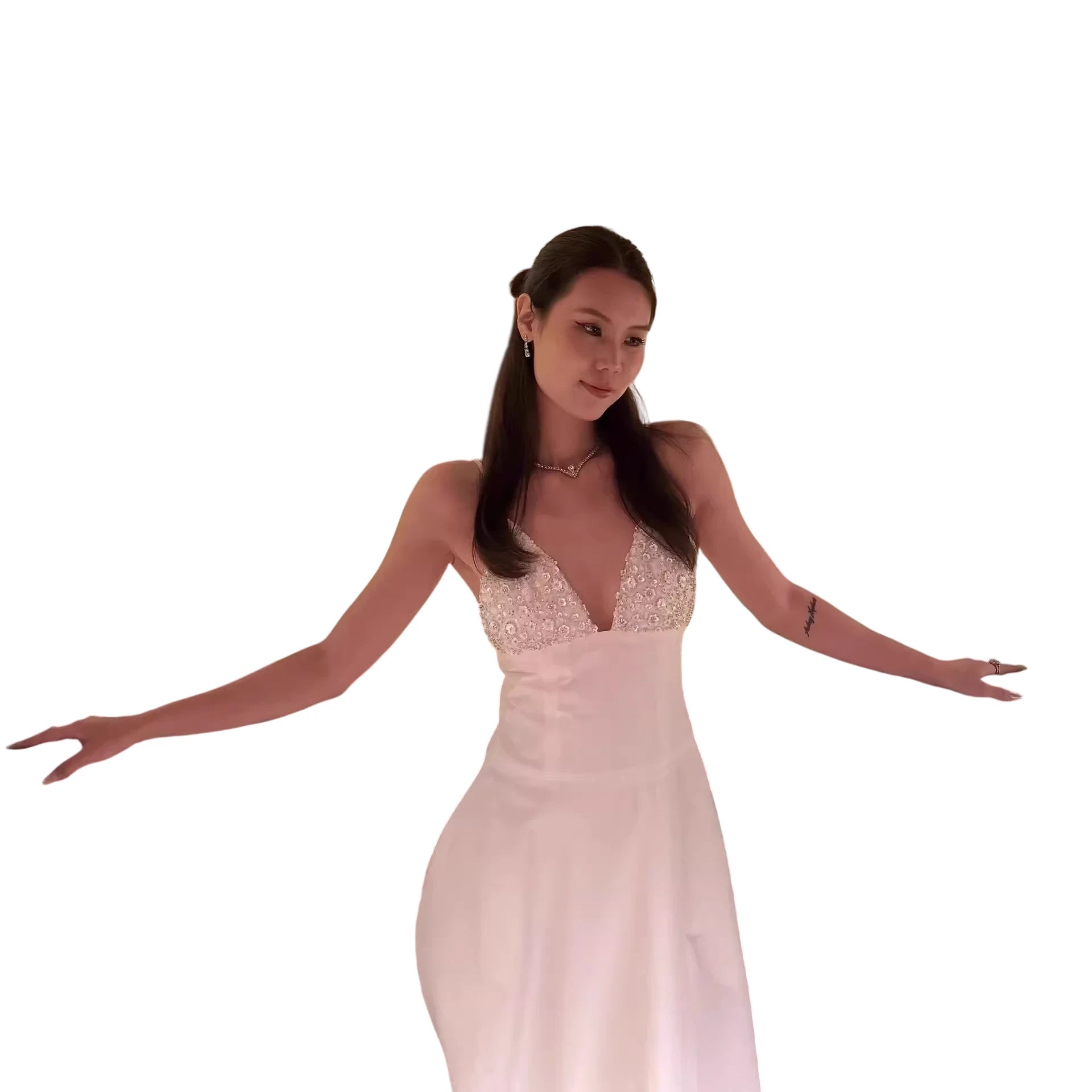 Champagne Halter Tube Top with Detachable Metal Flower Brooch