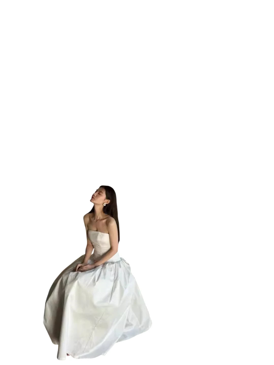 1S STUDIO Strapless Satin Evening Gown with Scarf Tie Detail