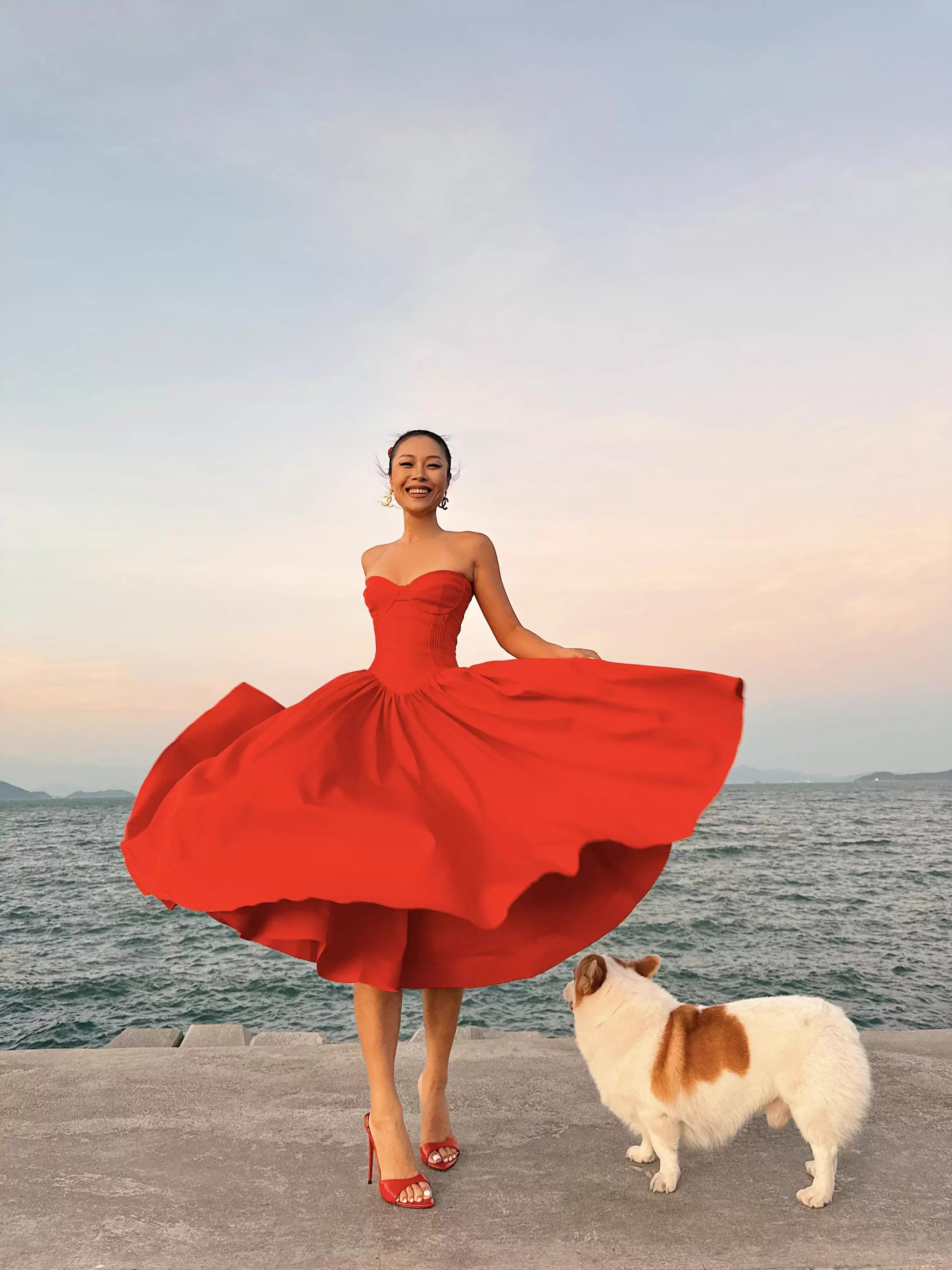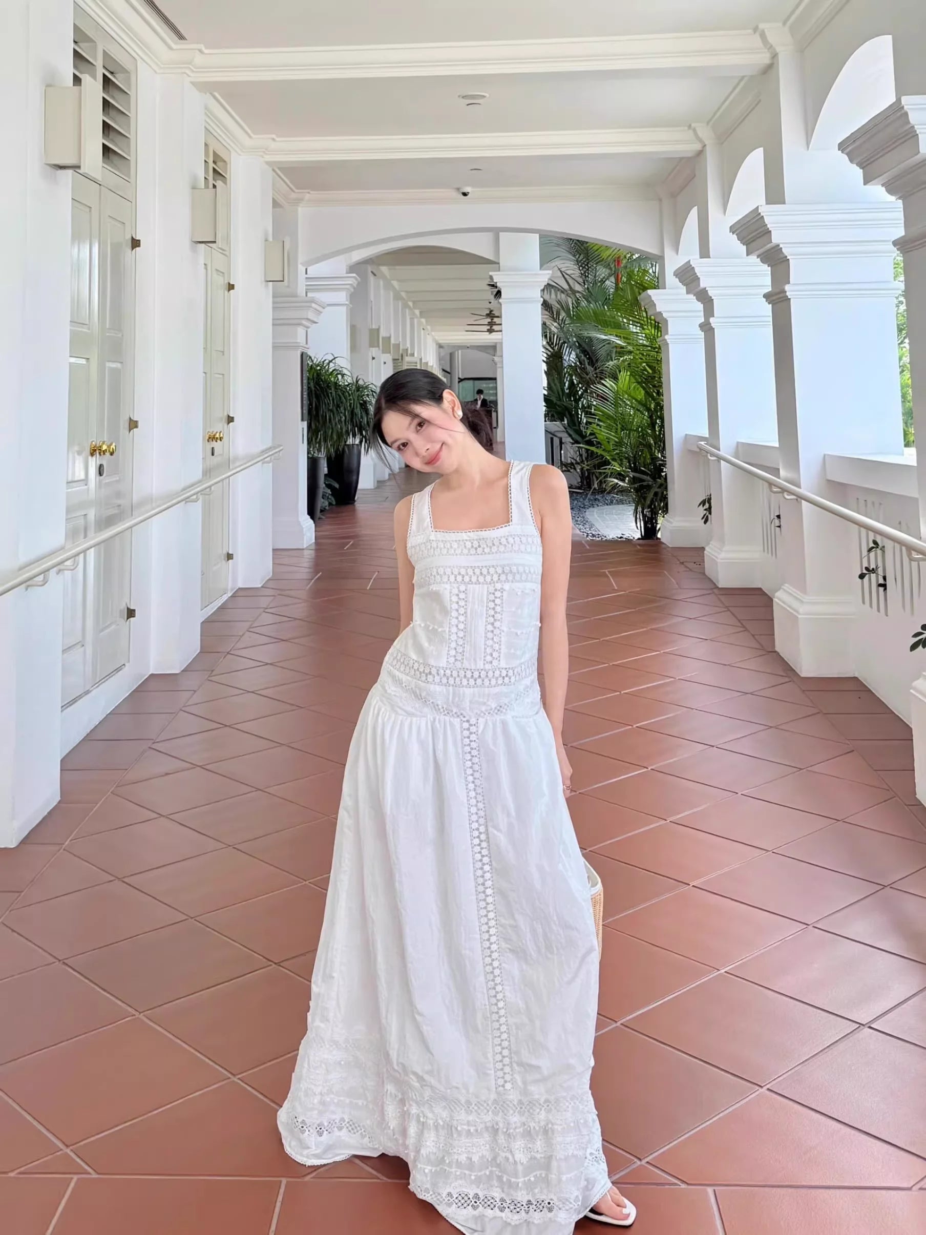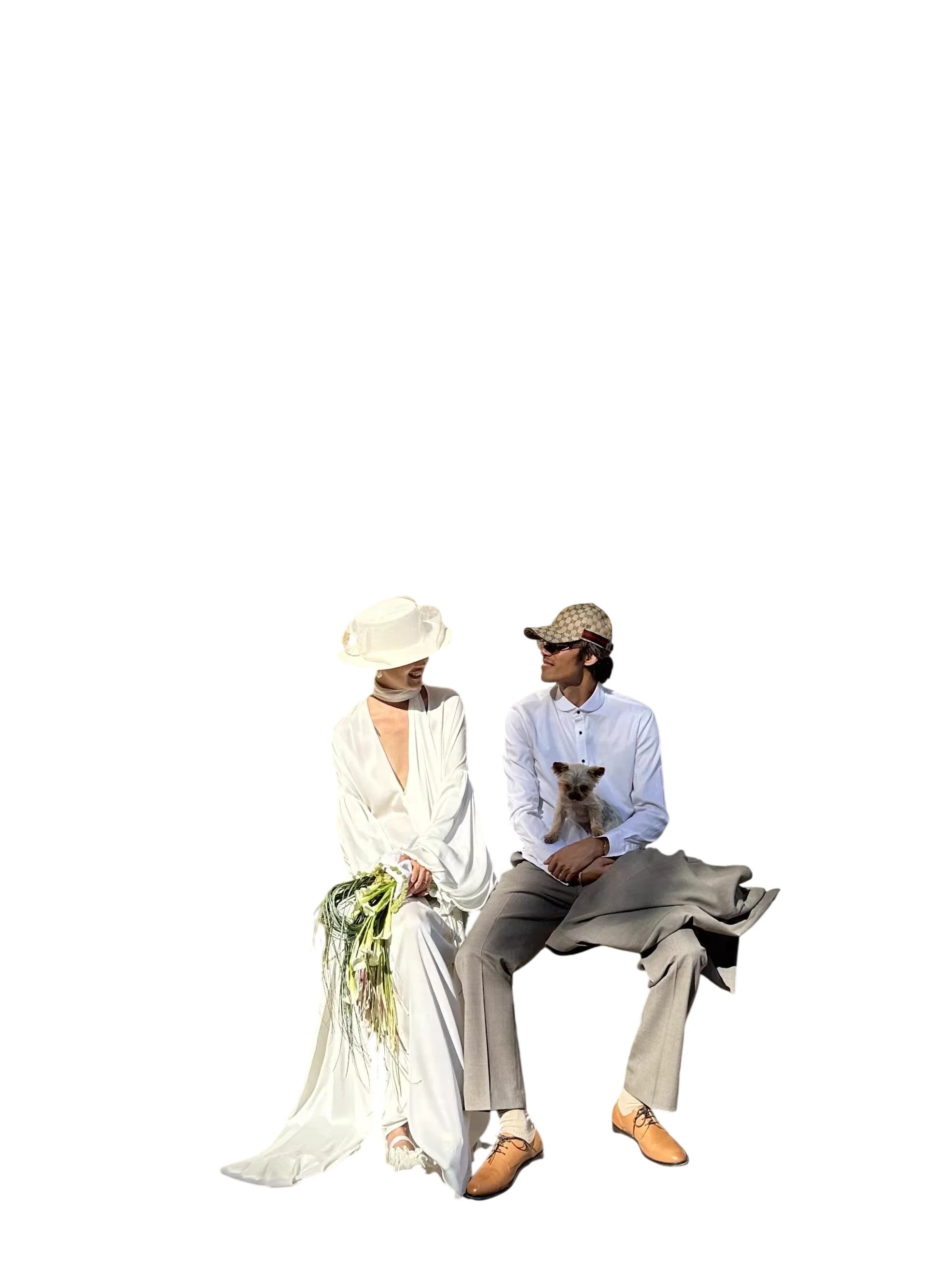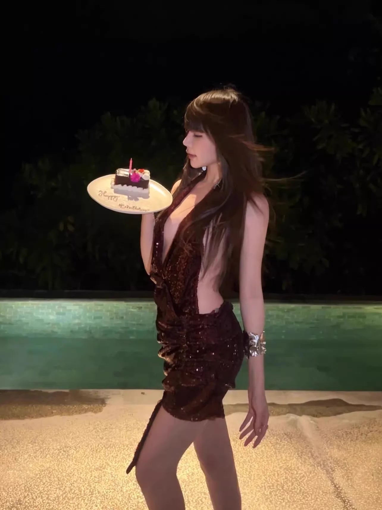 Champagne One-Shoulder Flowing Strap Top with Detachable Metal Flower Brooch