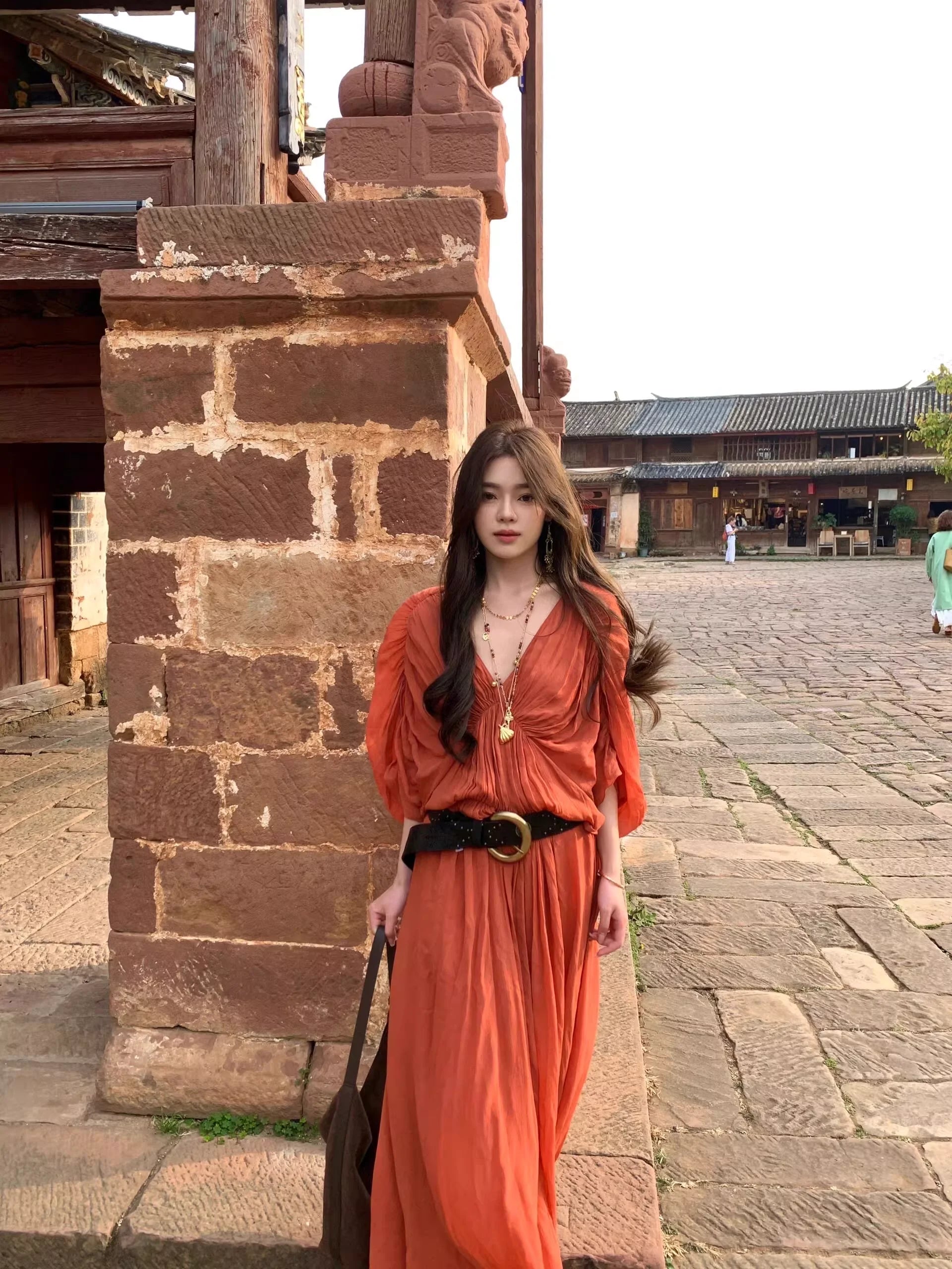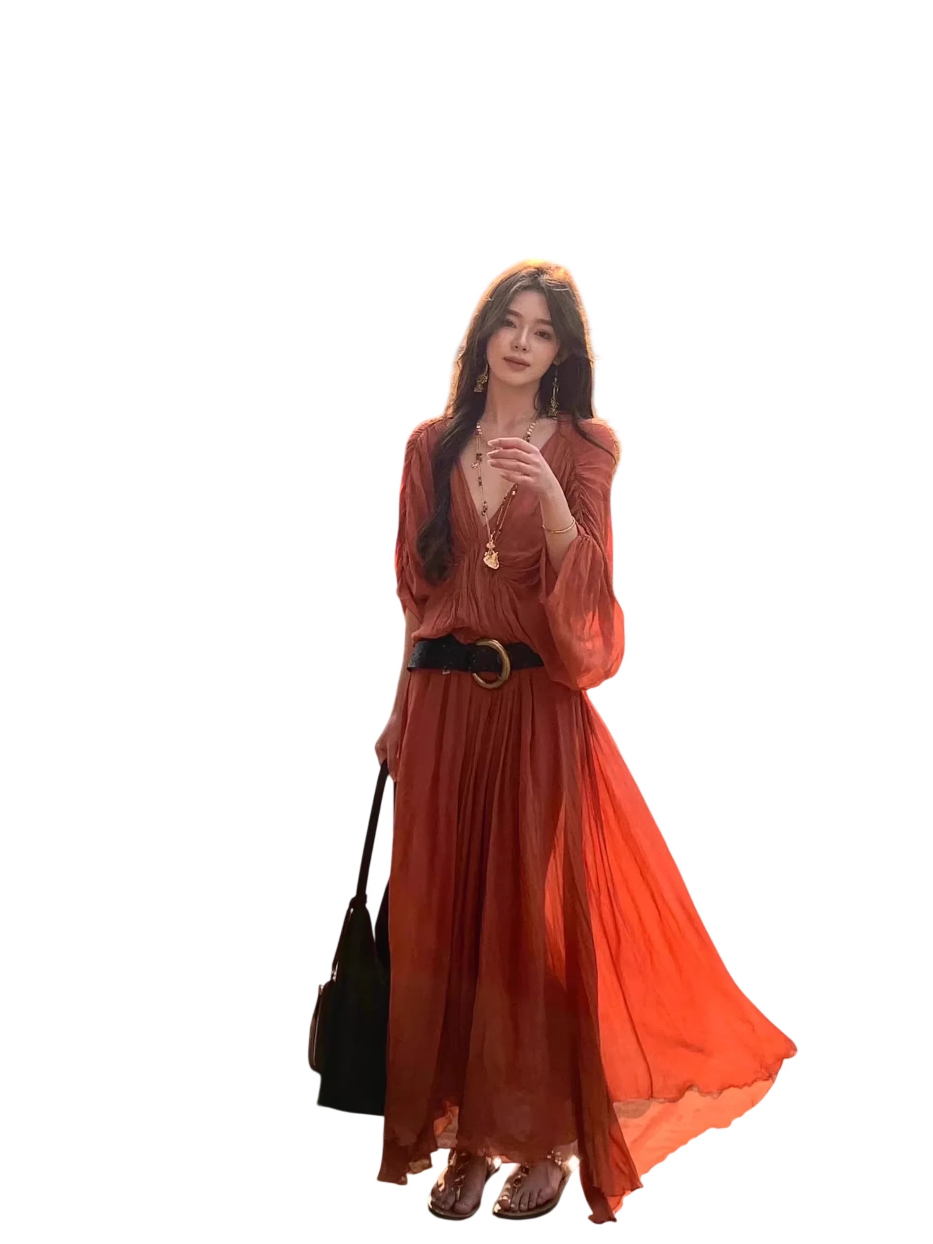 Caramel Color with Scarf Tie and Built-in Anti-slip Strip