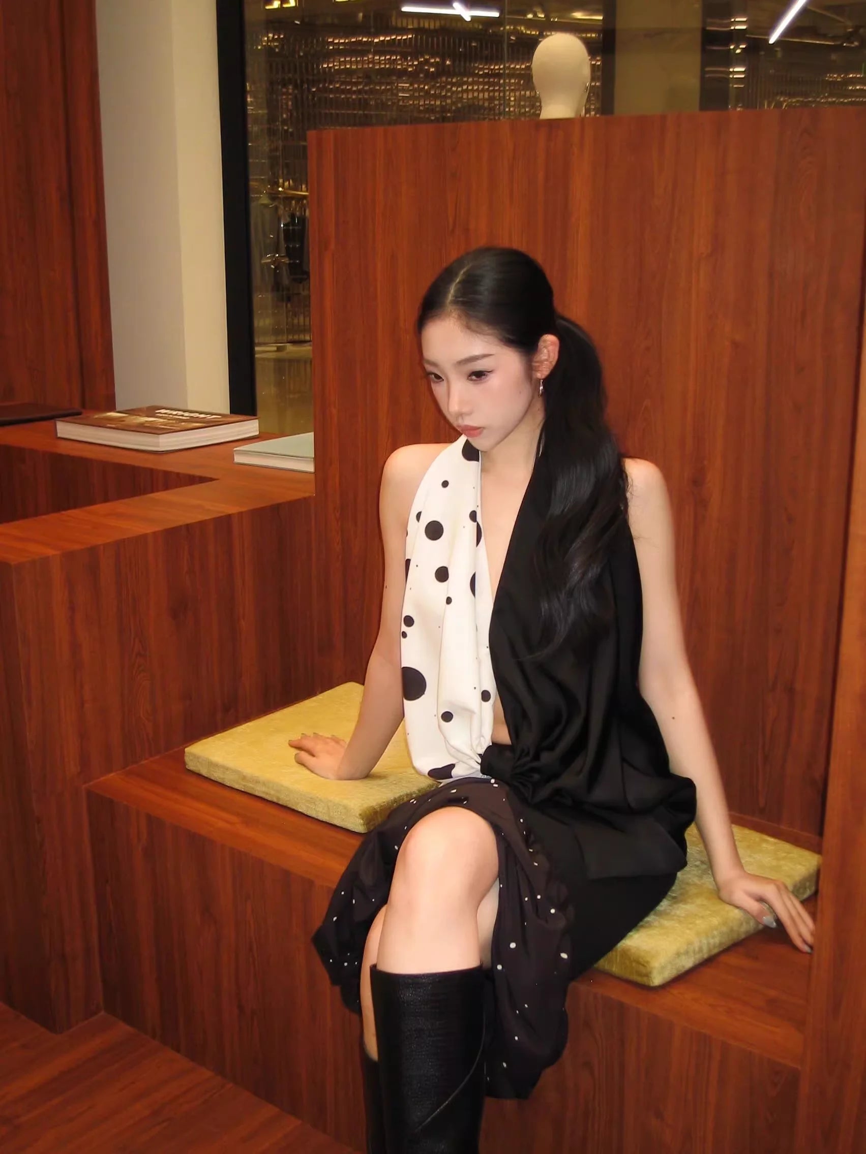 Black Halter Tube Top with Detachable Metal Flower Brooch