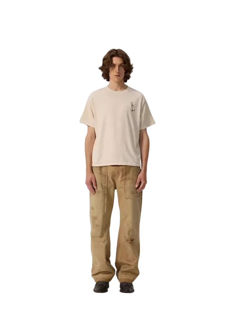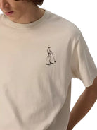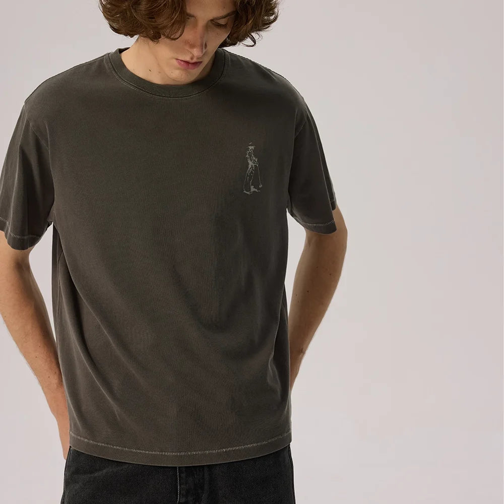 This men's short-sleeve T-shirt features a soft garment-dyed finish for a vintage, worn-in look. Crafted with single-stitch construction, it delivers a timeless silhouette and comfortable fit. A small graphic print on the left chest adds subtle detail, making it a versatile piece for casual and streetwear-inspired outfits.