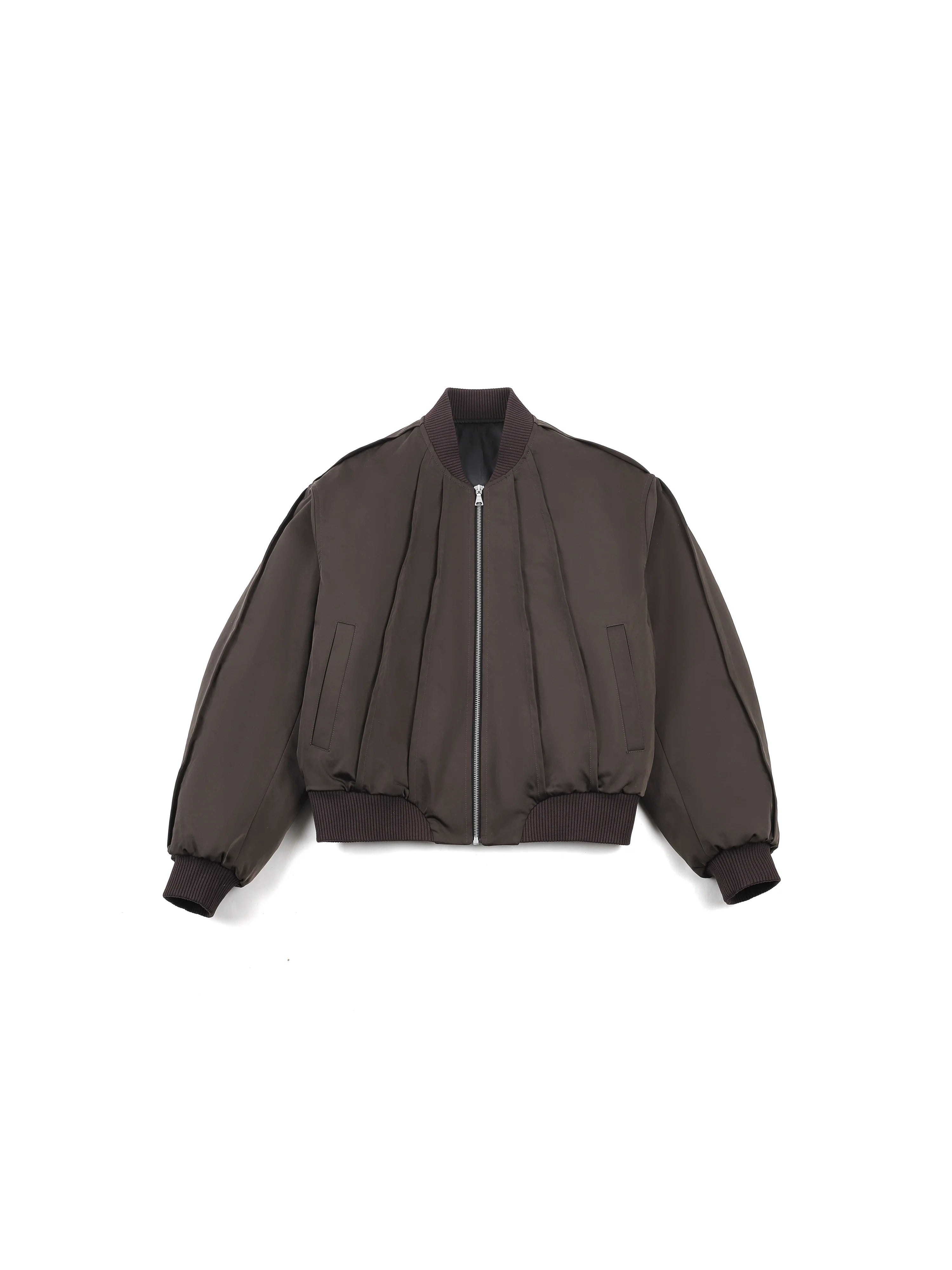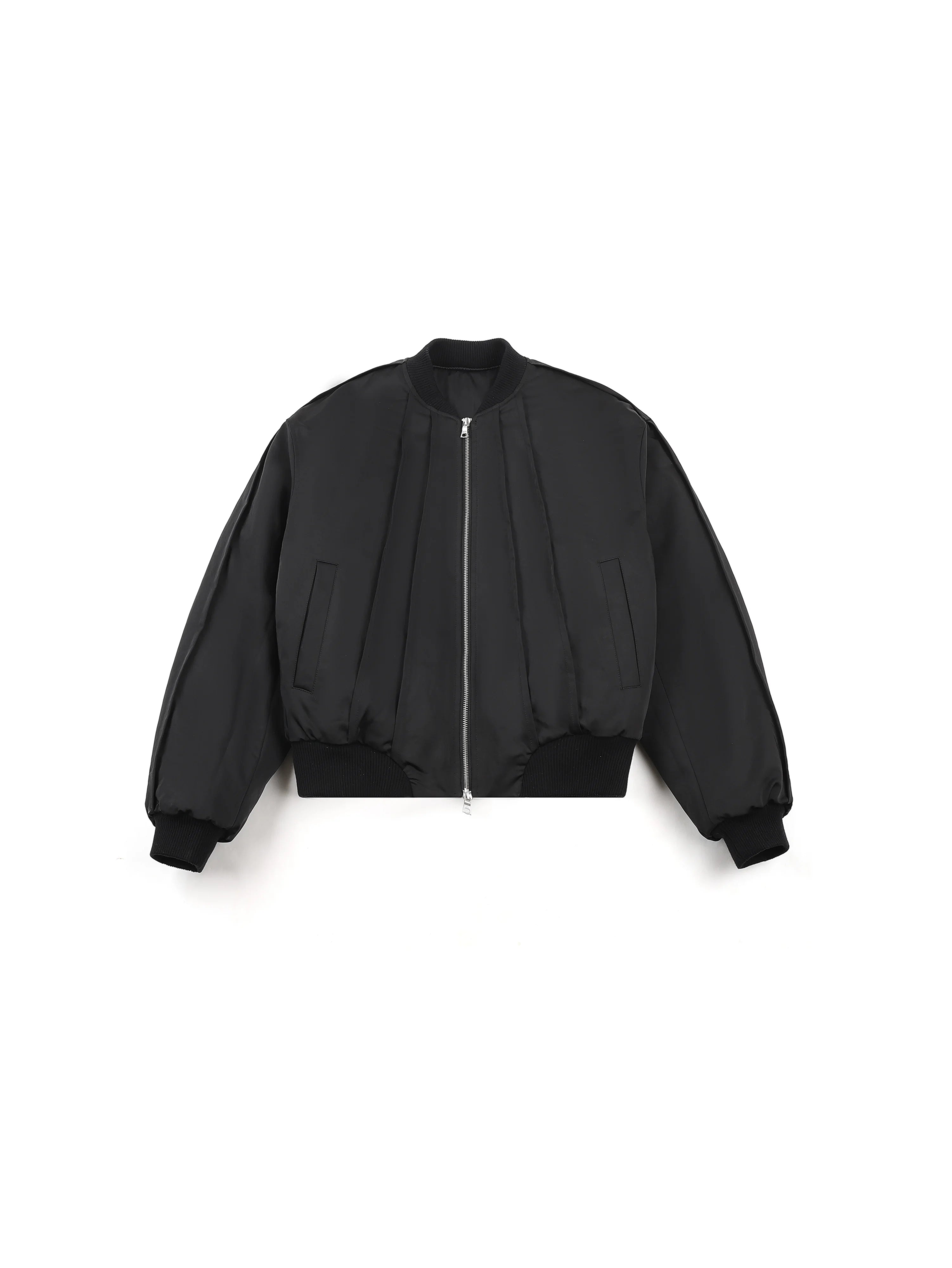 Elevate your outerwear with this unisex two-tone bomber jacket, crafted from high-density nylon for durability and comfort. Designed with a padded, slightly oversized silhouette, it features a full front metallic zipper closure, rounded collar, ribbed cuffs, and ribbed hemline for a snug fit. Two vertical slit pockets offer functionality while maintaining a clean, streamlined aesthetic. Ideal for versatile styling and cold-weather layering.