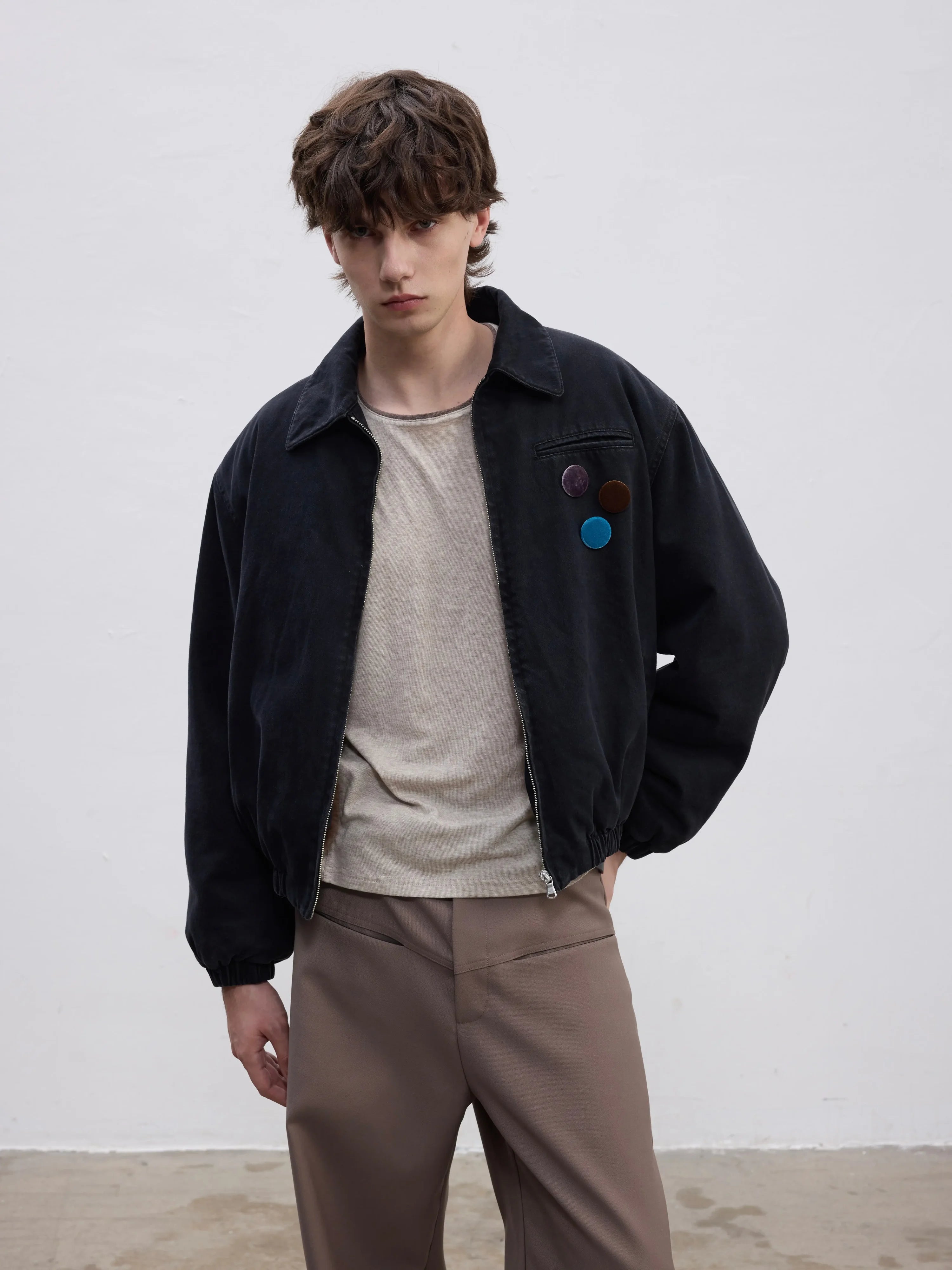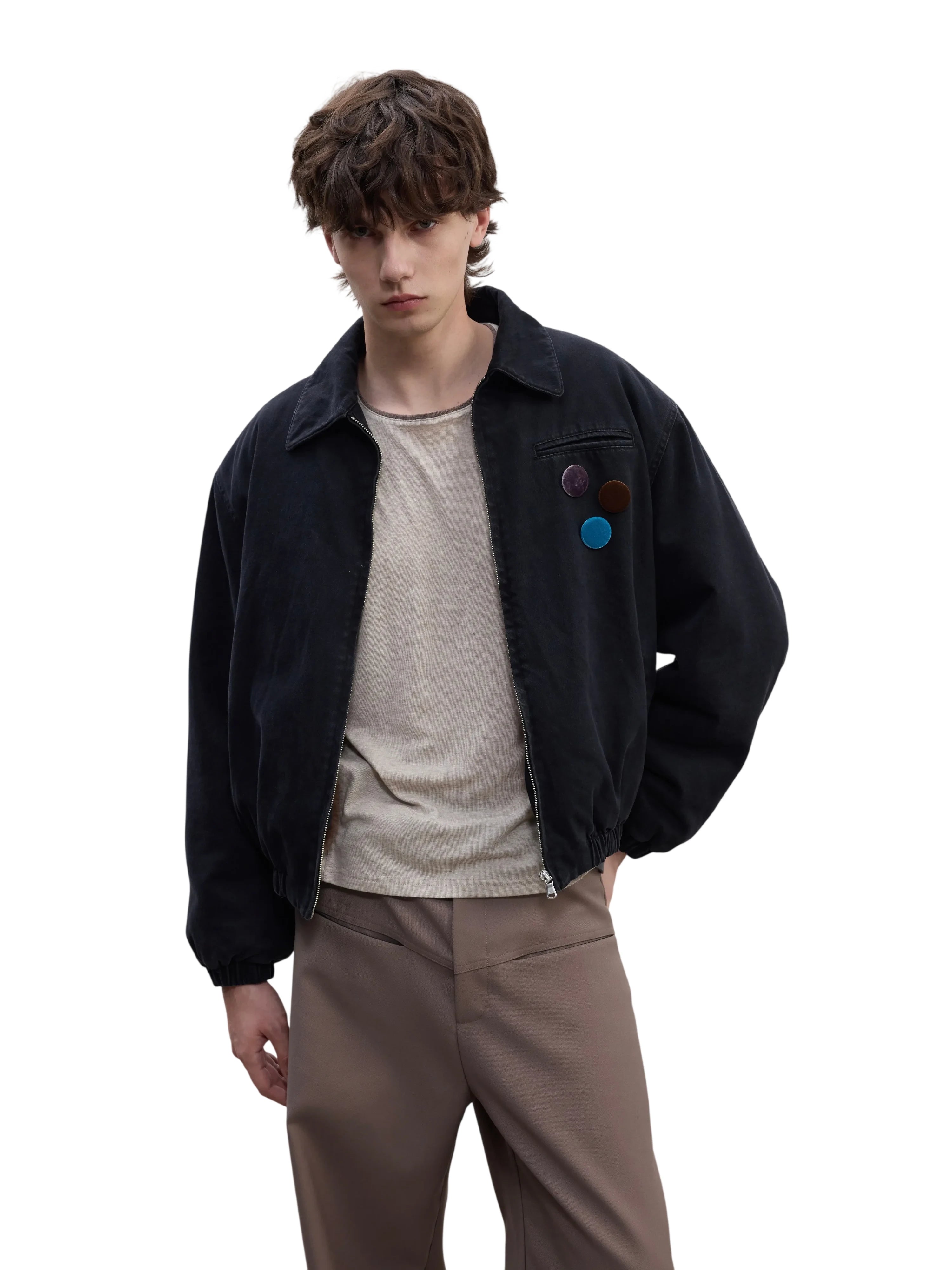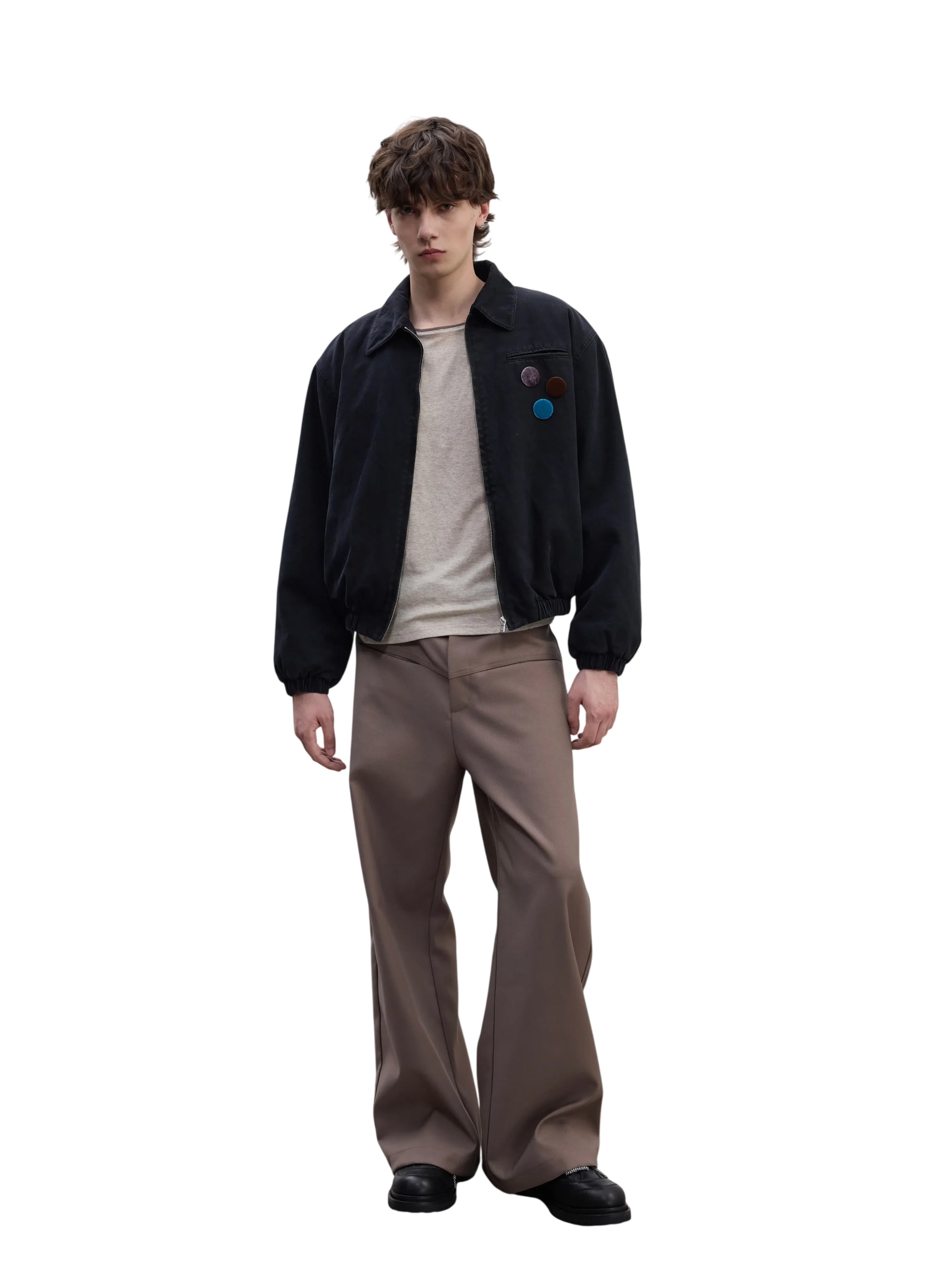 Stay warm in style with this men's cotton bomber jacket, designed for colder weather. Featuring a classic turn-down collar and a full front zip closure, this jacket combines functionality with a sleek, utilitarian look.