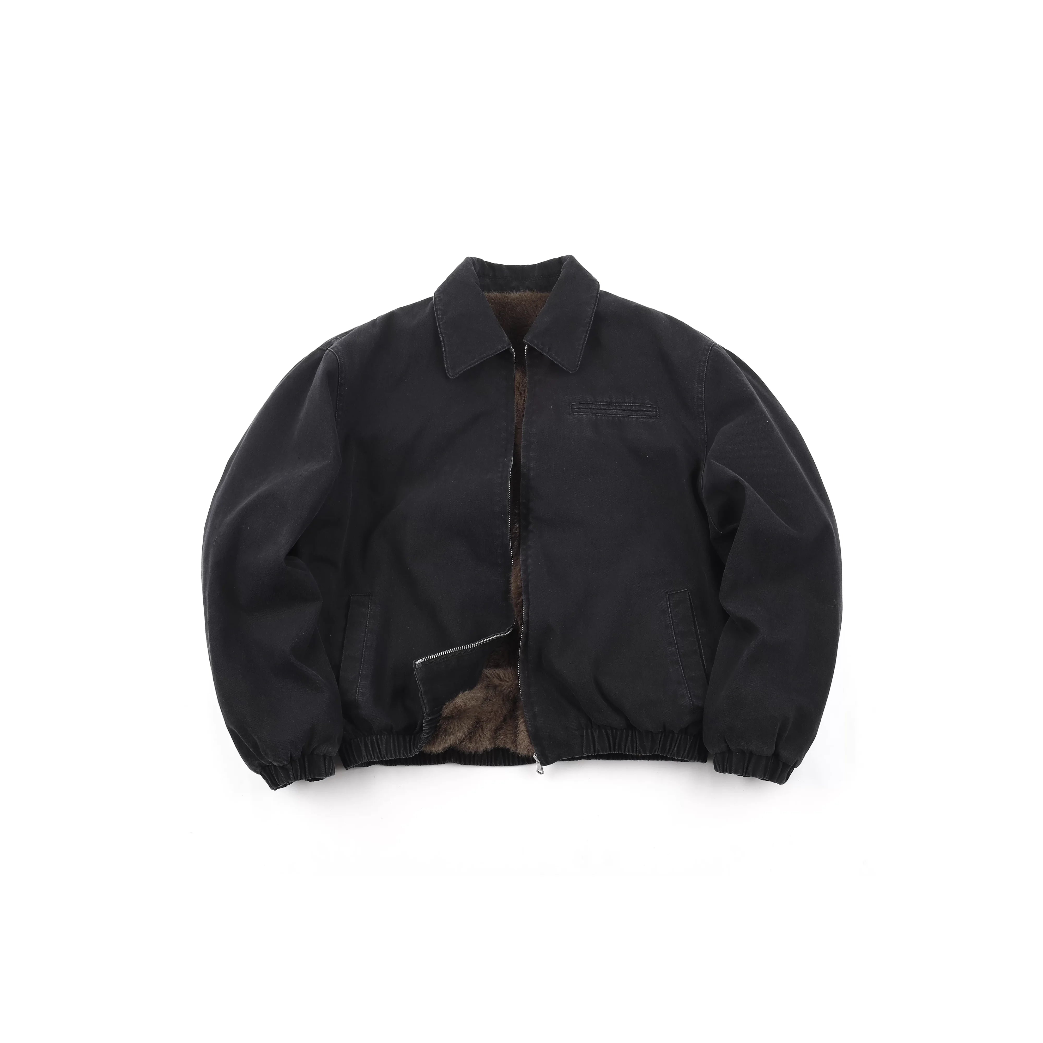 AFterTaste Washed Faux Mink Lined Cotton Bomber Jacket
