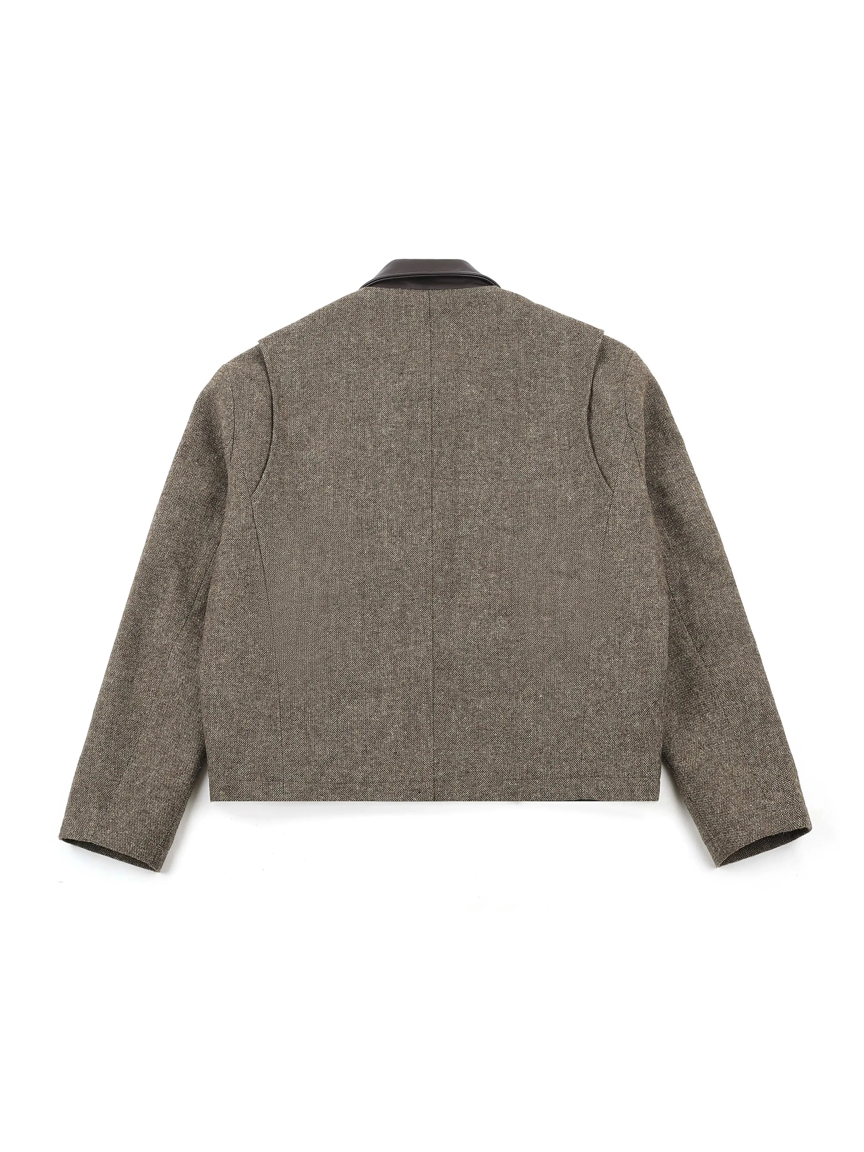 AFterTaste Wool Tweed Short Jacket with Leather Collar