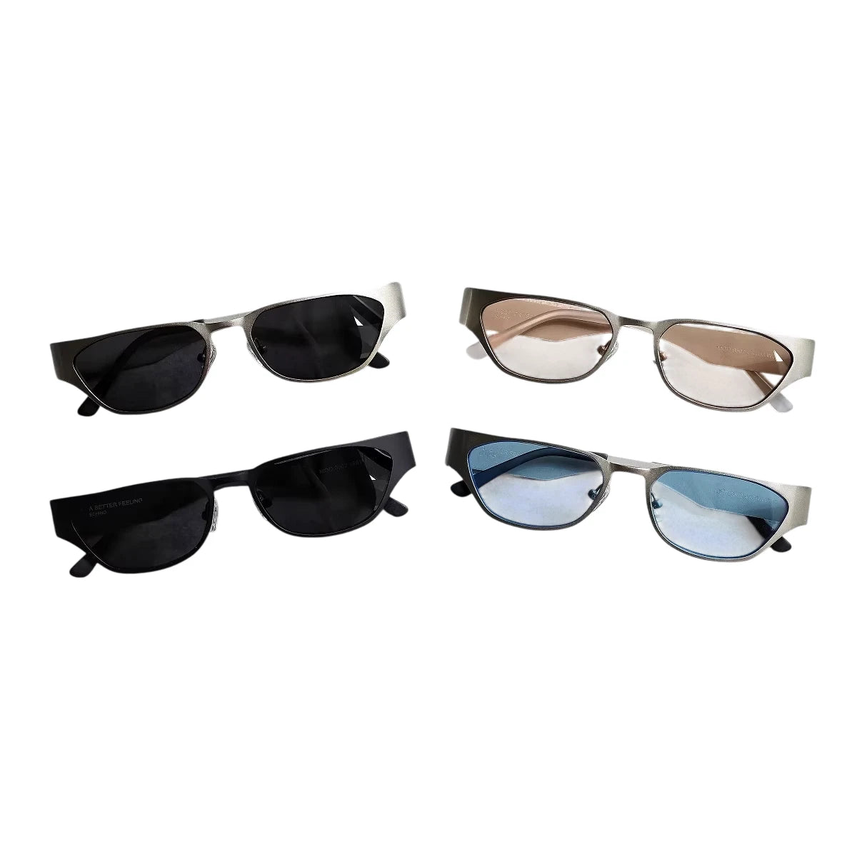 Showcasing a bold fusion of Y2K and cyberpunk aesthetics, these unisex sunglasses frames feature a sleek stainless steel build designed for a futuristic look. The modern shapes range from wrap-around to rectangular, with lens tints in blue, brown, and black offering both style and functionality. Ideal for anyone seeking an avant-garde touch in their eyewear collection, these frames balance trend-forward design with everyday wearability.