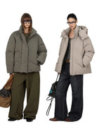 This women's white duck down jacket offers superior warmth and contemporary style for the colder months. Designed with a stand collar and a detachable hood, it provides versatile wear options to suit changing weather conditions. The soft, cloud-like texture ensures a comfortable skin-feel, while the puffer silhouette adds an effortlessly modern edge. Ideal for casual winter outings, this down jacket pairs beautifully with jeans, wide-leg pants, or outdoor essentials.