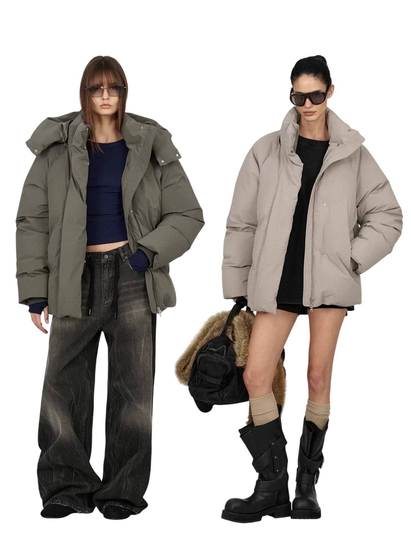 ACSENSE STUDIO Detachable Hood Down Jacket with Stand Collar