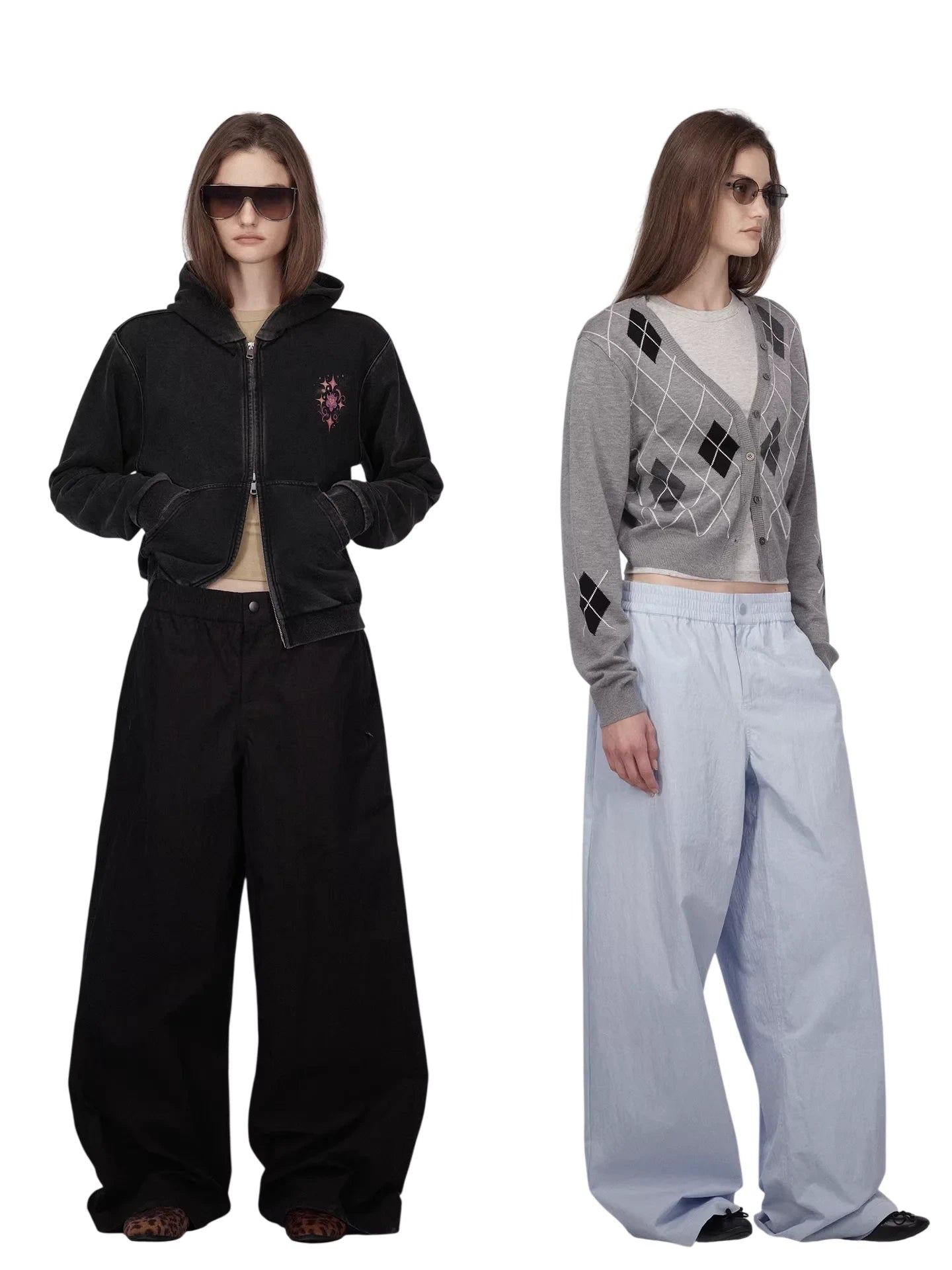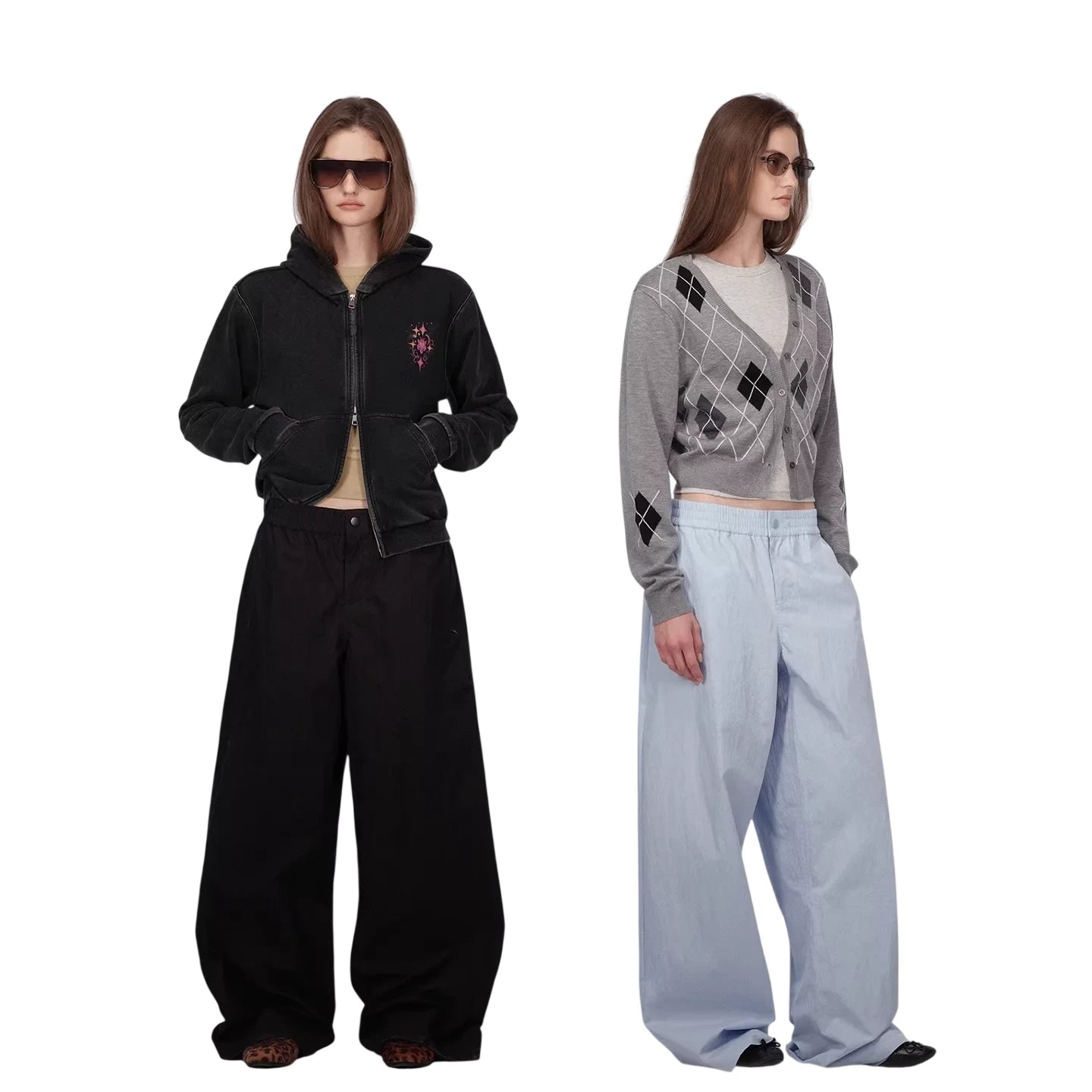 These women's casual pants feature a comfortable elastic waistband and a straight-leg silhouette, ideal for relaxed, urban-inspired outfits. Crafted for effortless style and ease of movement, they pair well with hoodies, cardigans, or tees. Their loose fit and versatile design make them a staple piece for any streetwear wardrobe.