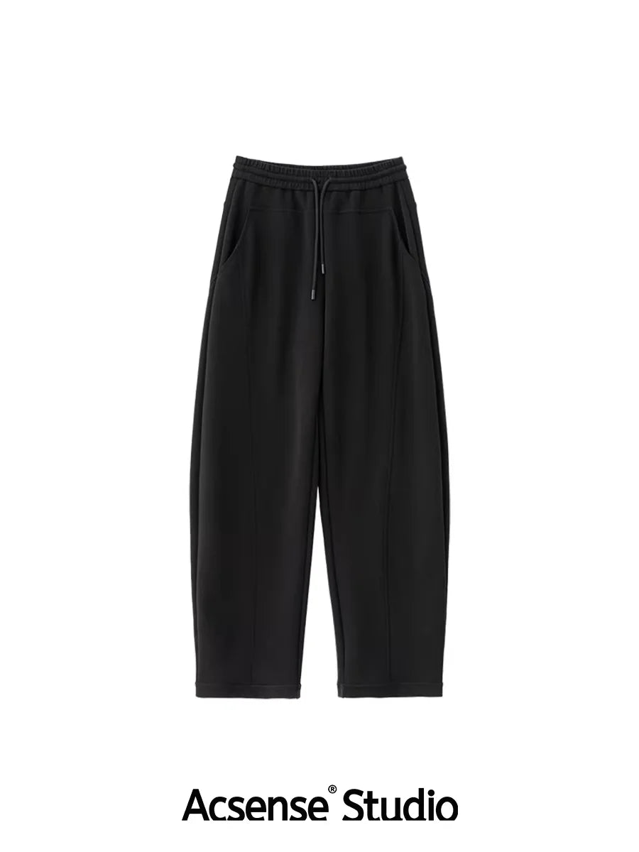 ACSENSE STUDIO Elastic Waist Wide-Leg Jogger Pants with Sculpted Panels