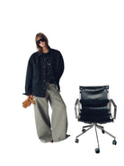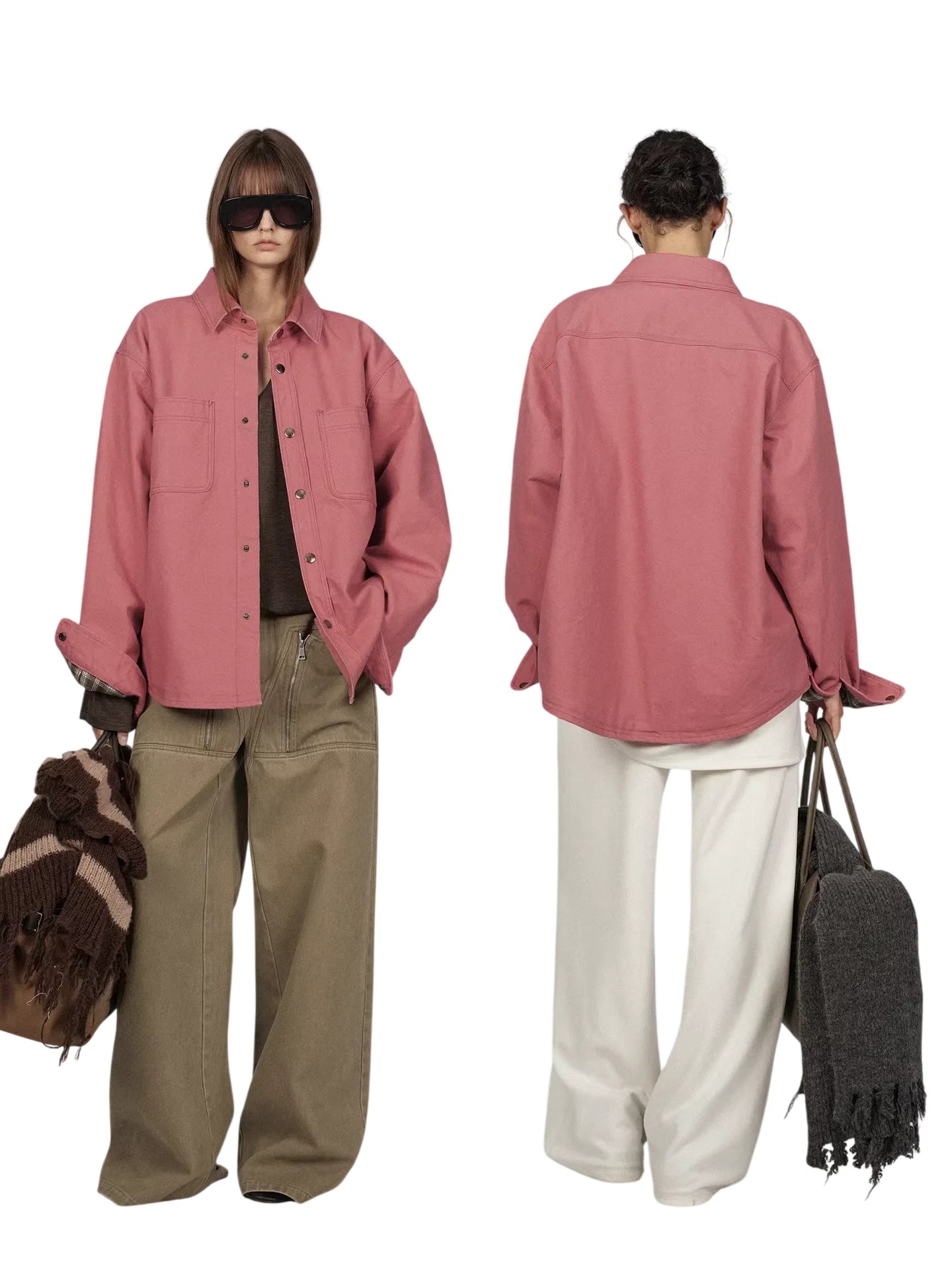 This heavy enzyme-washed cotton shirt jacket features a loose, oversized design ideal for casual layering. Crafted for women, it includes a soft quilted lining that adds warmth and comfort. Button-up styling and utility-inspired details make it perfect for achieving a relaxed, street-ready look. A versatile choice for transitioning between seasons.