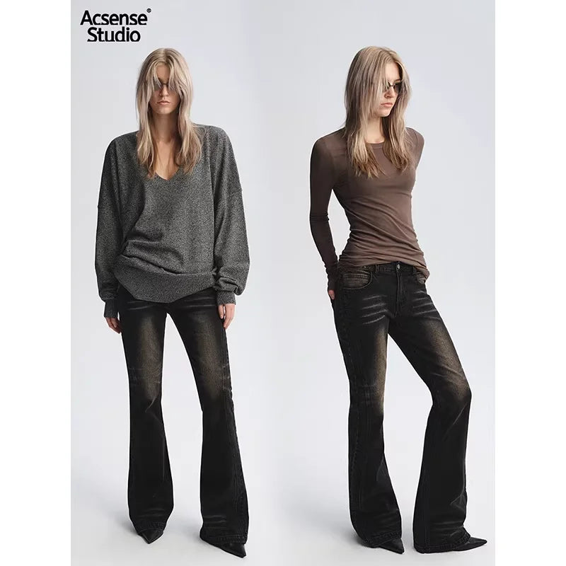 ACSENSE STUDIO High-Rise Flared Stretch Jeans with Washed Finish