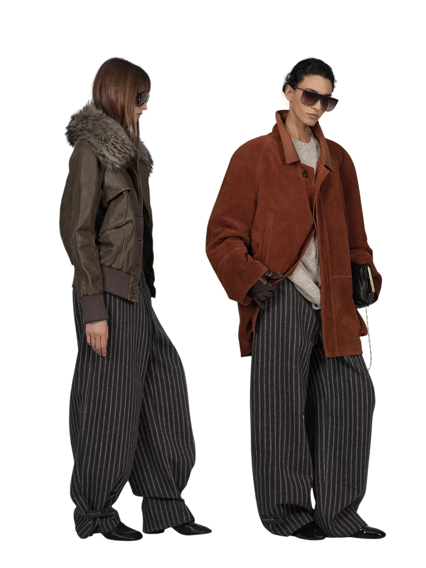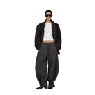 Styled here on a female model with an oversized black jacket and cropped white tank top, these pants transition seamlessly from laid-back brunch looks to chic streetwear ensembles. A must-have piece for achieving today's relaxed 'Old Money' aesthetic with ease.