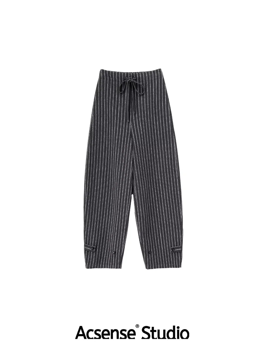 ACSENSE STUDIO Relaxed Pinstripe Wide-Leg Drawstring Pants