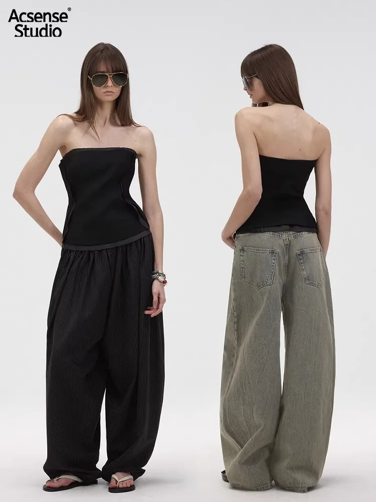 ACSENSE STUDIO Satin Patchwork Corset Tube Top