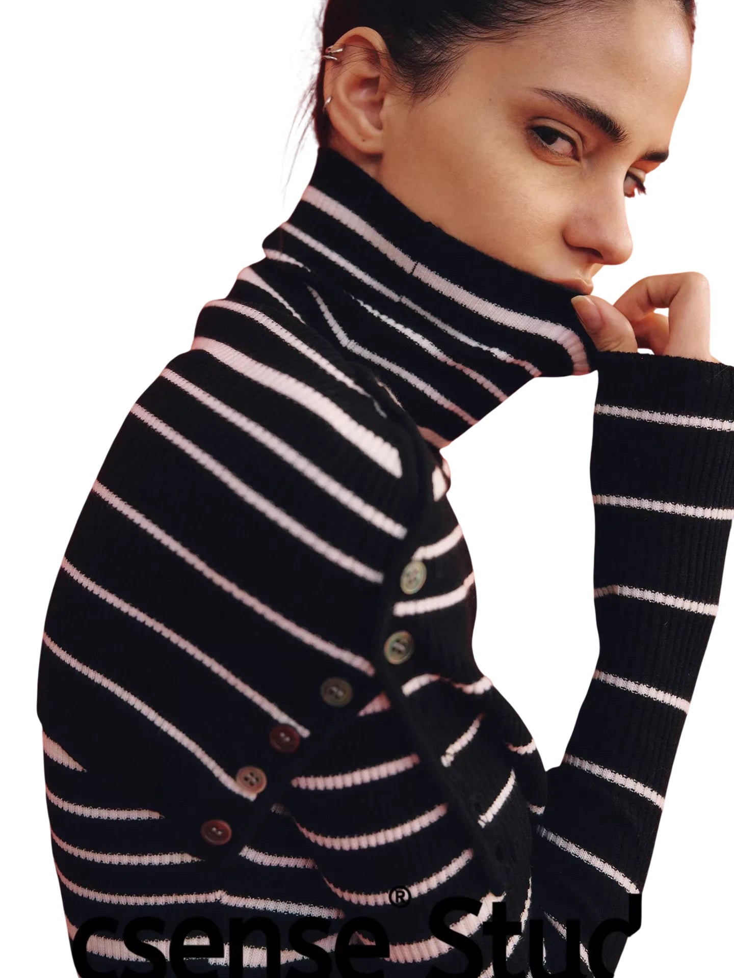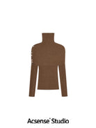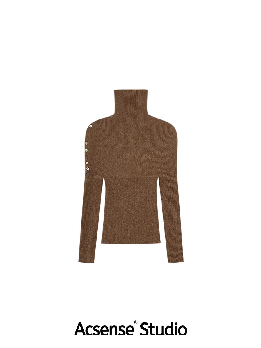 ACSENSE STUDIO Slim Fit Stretch Wool Two-Piece Knit Set with Half Turtleneck Cape