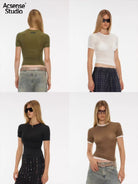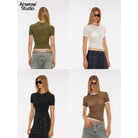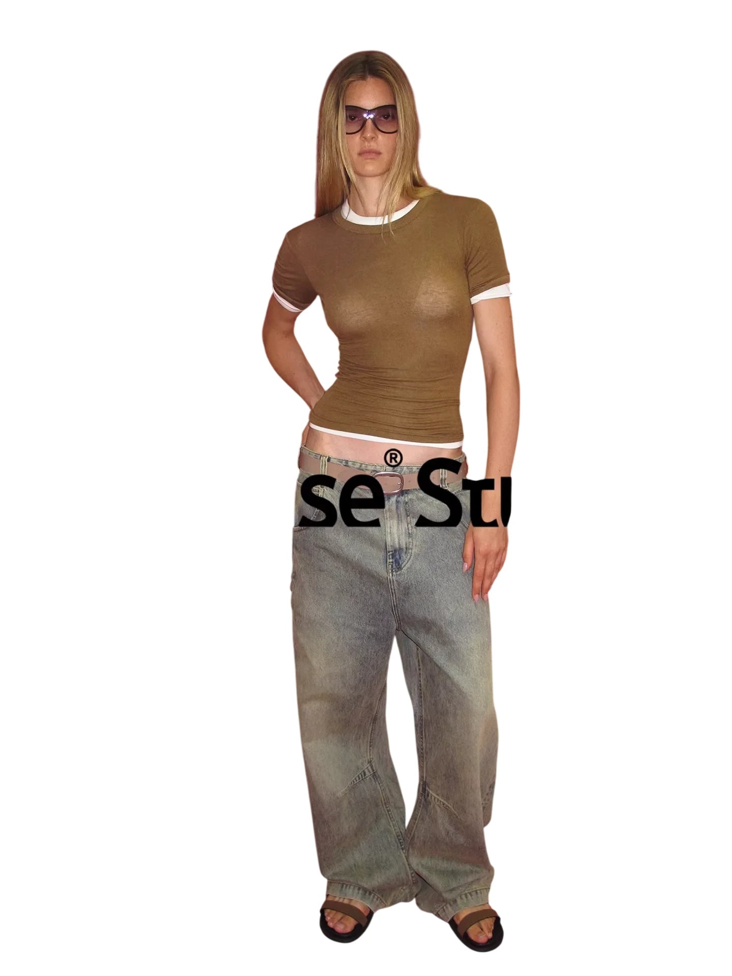 Elevate your casual wardrobe with this women's slim-fit short sleeve t-shirt crafted from a soft and breathable blend of Lenzing Tencel and wool. Designed for high elasticity and reduced restraint, the fabric offers a comfortable yet form-fitting silhouette. The slightly sheer finish adds a modern, minimalist touch, while the clean lines and fitted shape make it perfect for layering or standout solo wear. Available in versatile shades including olive green, white, black, and brown with contrast trim, it's an ideal staple for effortless everyday style.
