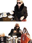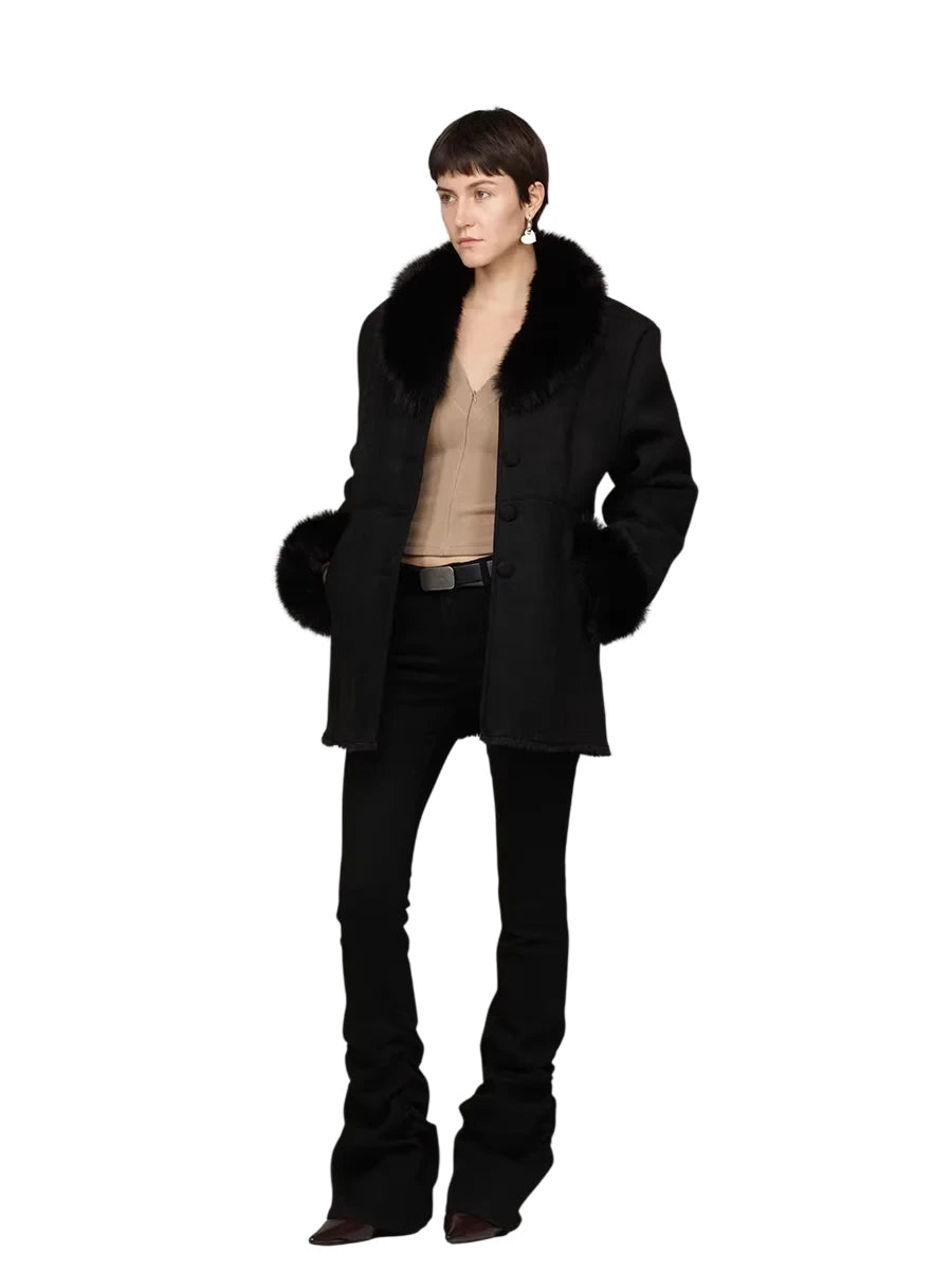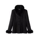 ACSENSE STUDIO Vintage Black Suede Jacket with Faux Fur Trim and Detachable Collar