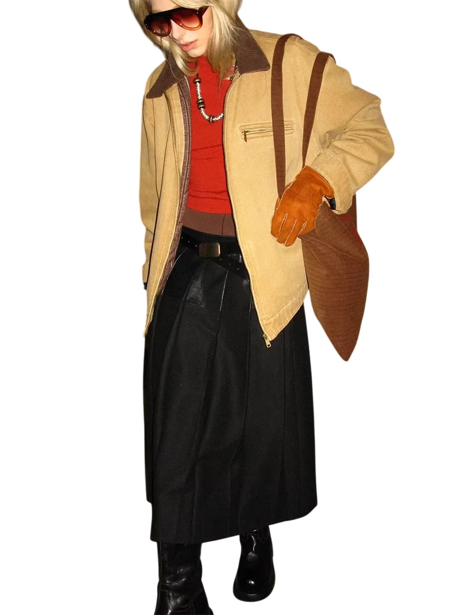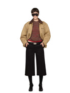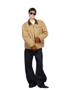This women's quilted cotton jacket features a timeless barn-style design with a vintage washed finish. The light brown outer shell is accented by bold vertical stripes and a contrasting dark brown collar, offering a rugged yet stylish look. Ideal for casual streetwear, it combines function and fashion, making it a versatile layering piece for everyday wear.