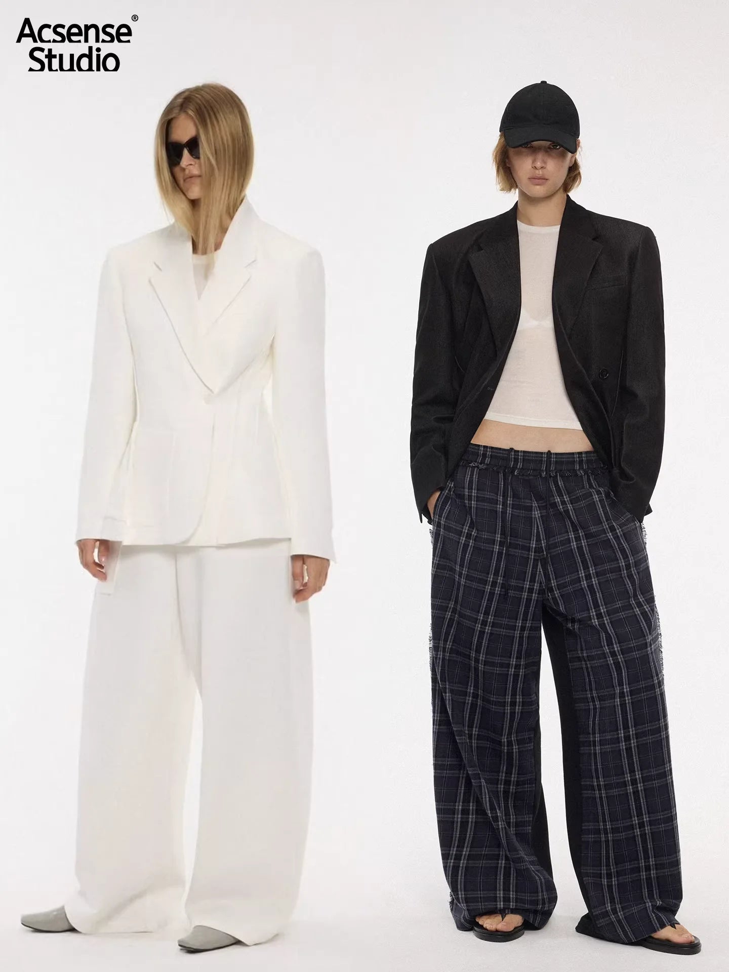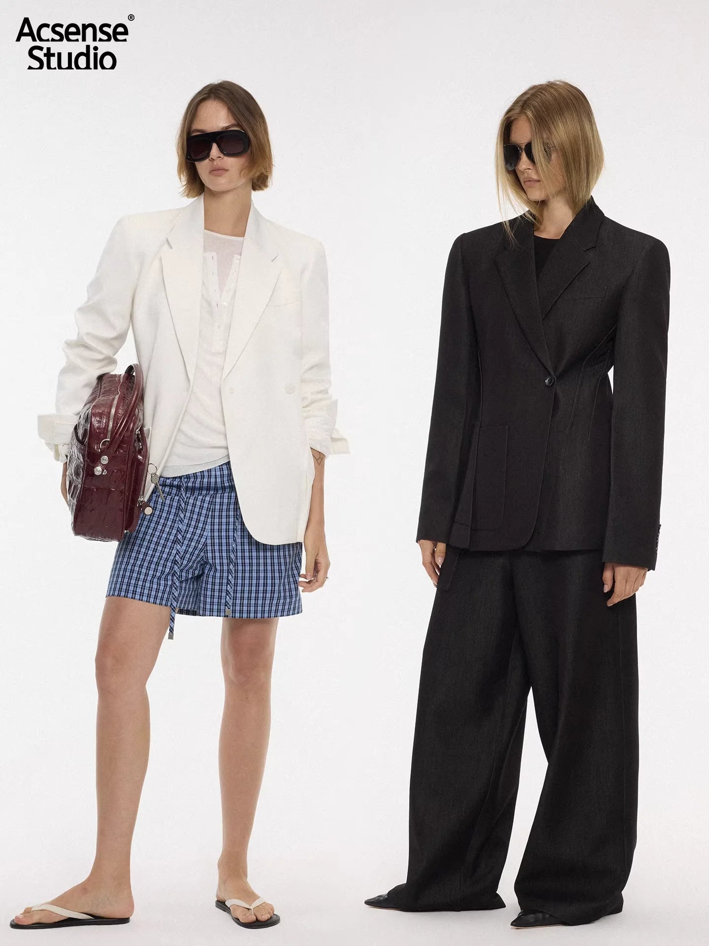 ACSENSE STUDIO Waist-Cinching Oversized Blazer Suit Jacket