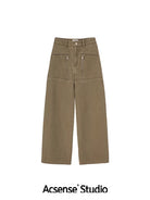 ACSENSE STUDIO Washed Denim Wide-Leg Pants with Zipper Flap and Stitch Detailing