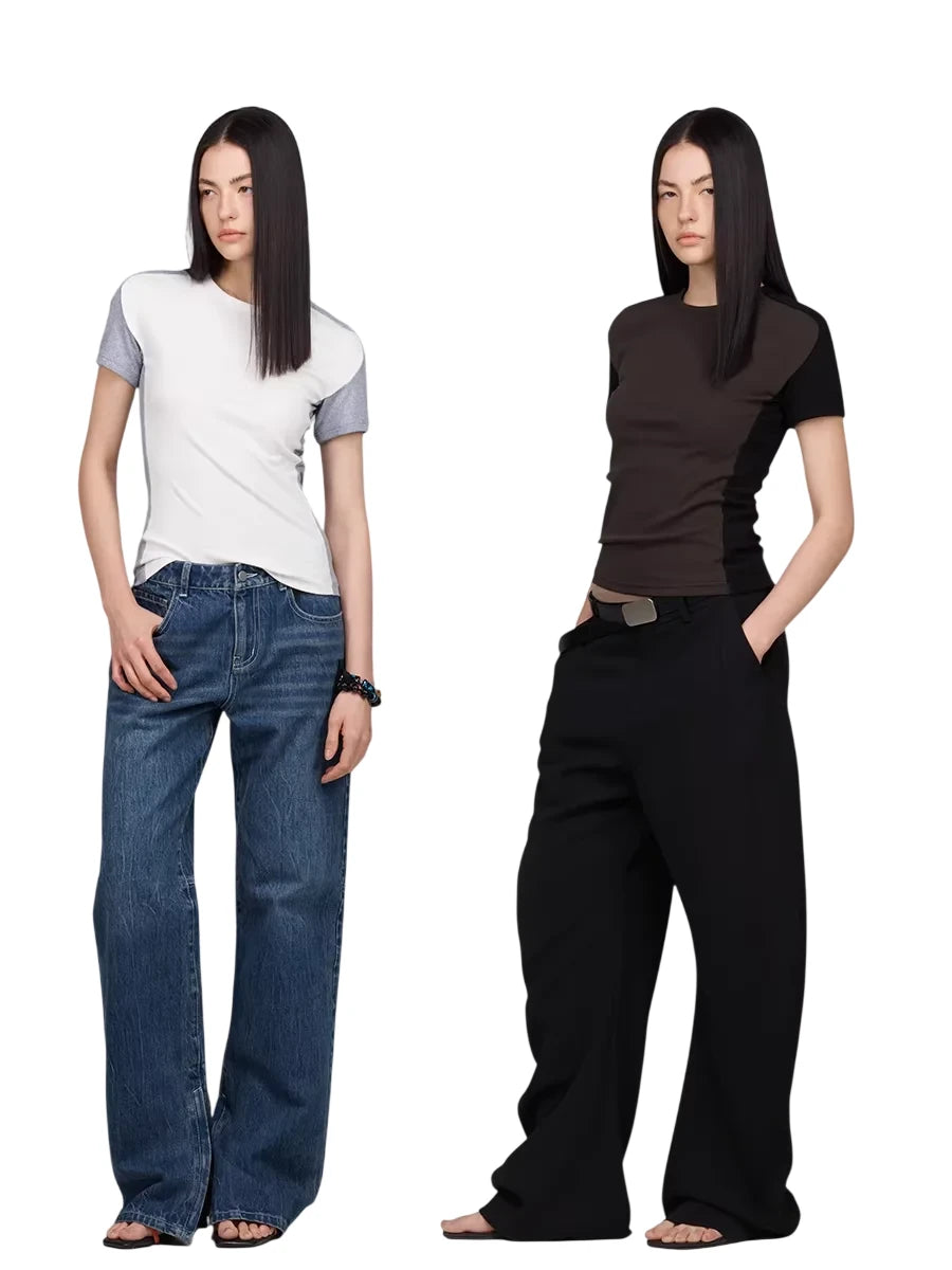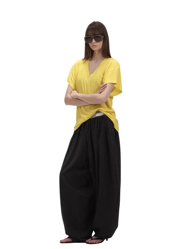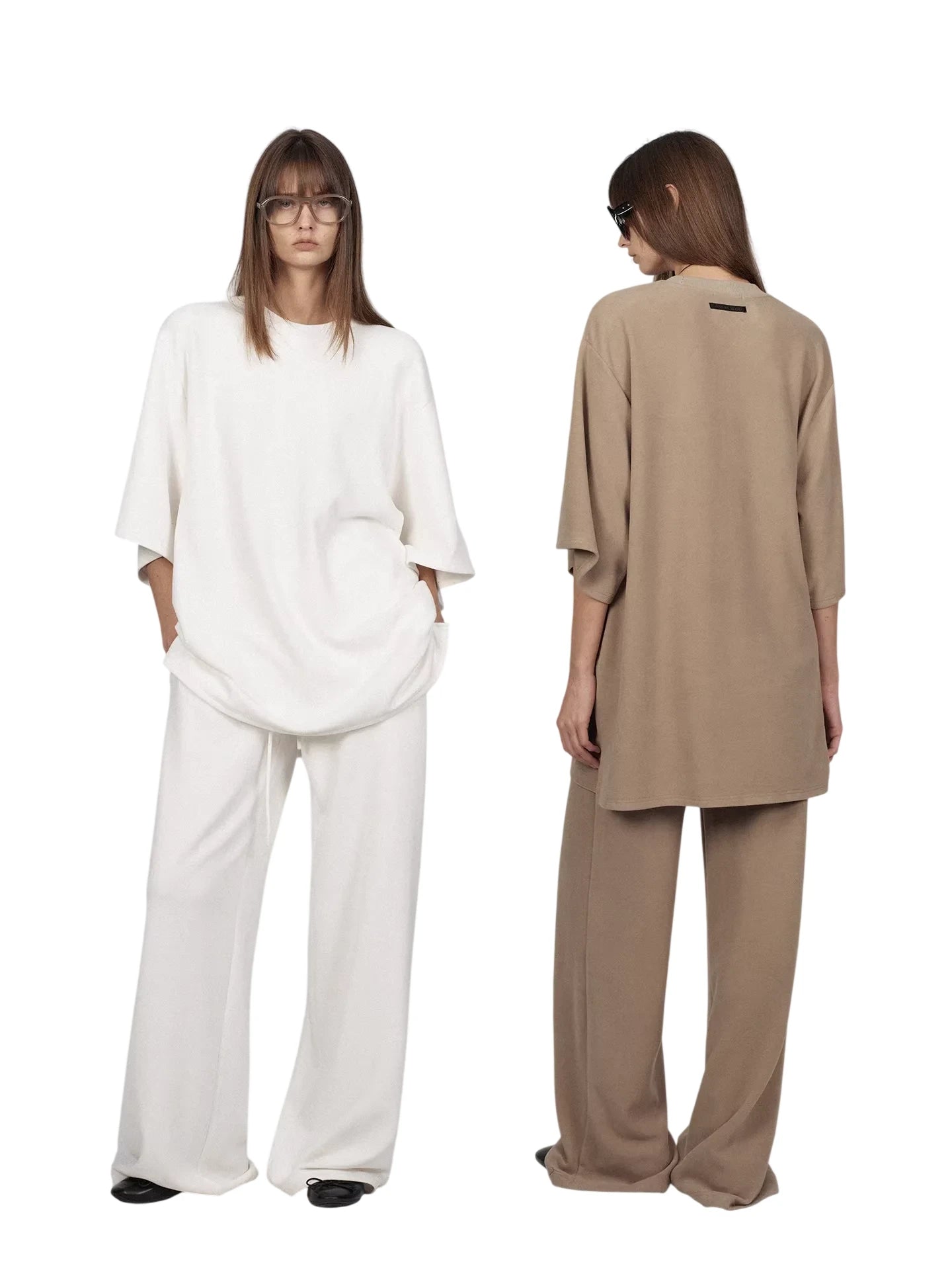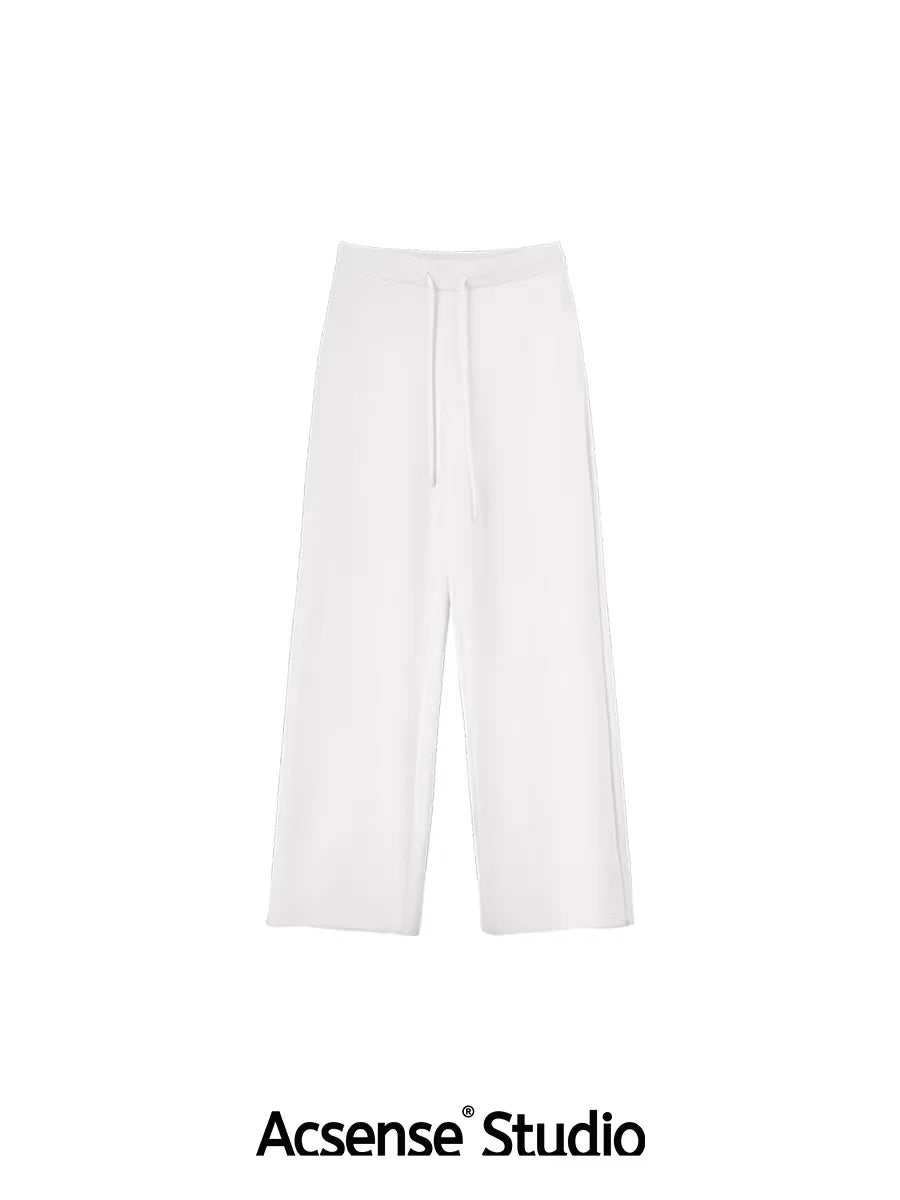 ACSENSE STUDIO Minimalist Fleece Loungewear Set with T-Shirt and Wide-Leg Pants
