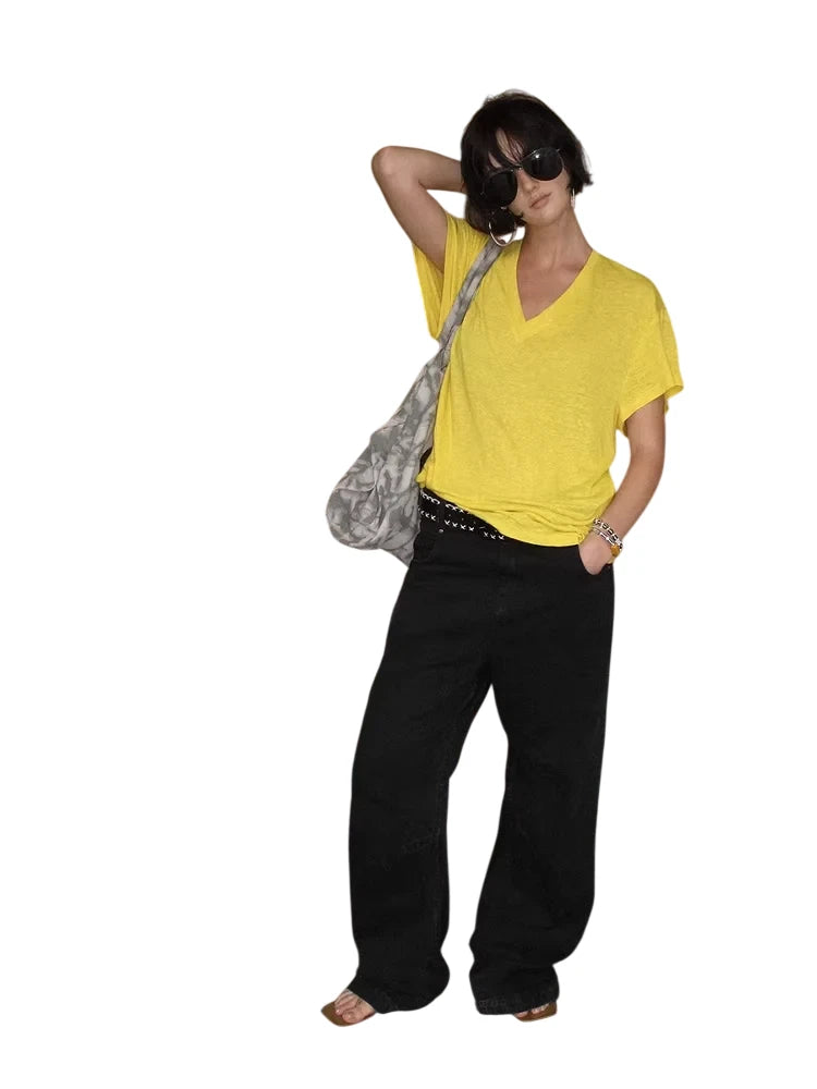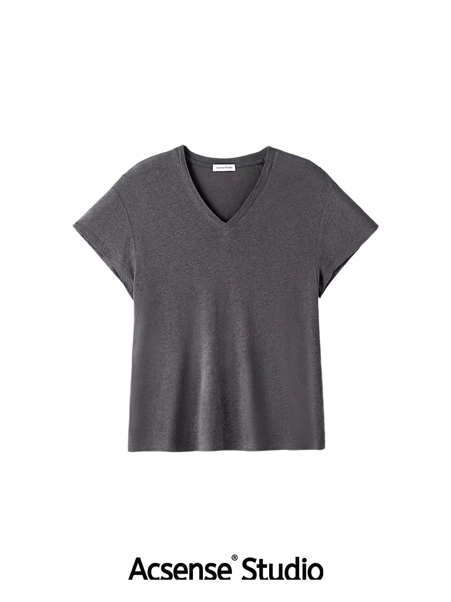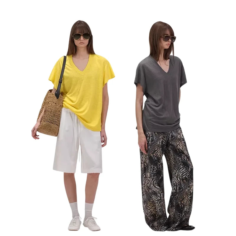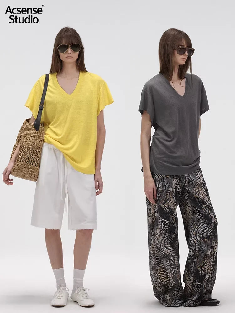 ACSENSE STUDIO Minimalist Fleece Loungewear Set with T-Shirt and Wide-Leg Pants