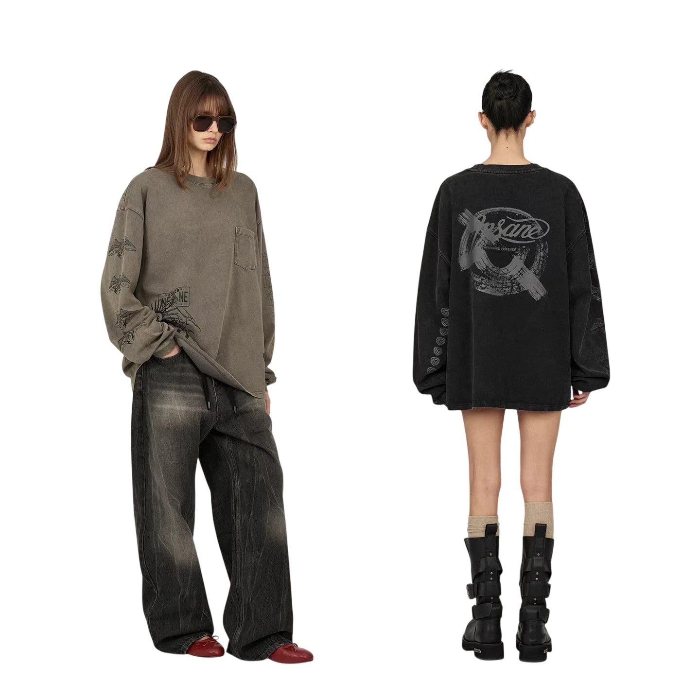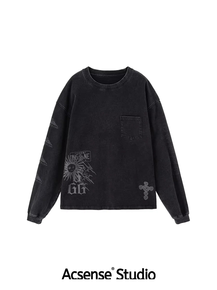 ACSENSE STUDIO Vintage-Style West Coast Graphic Long Sleeve Tee