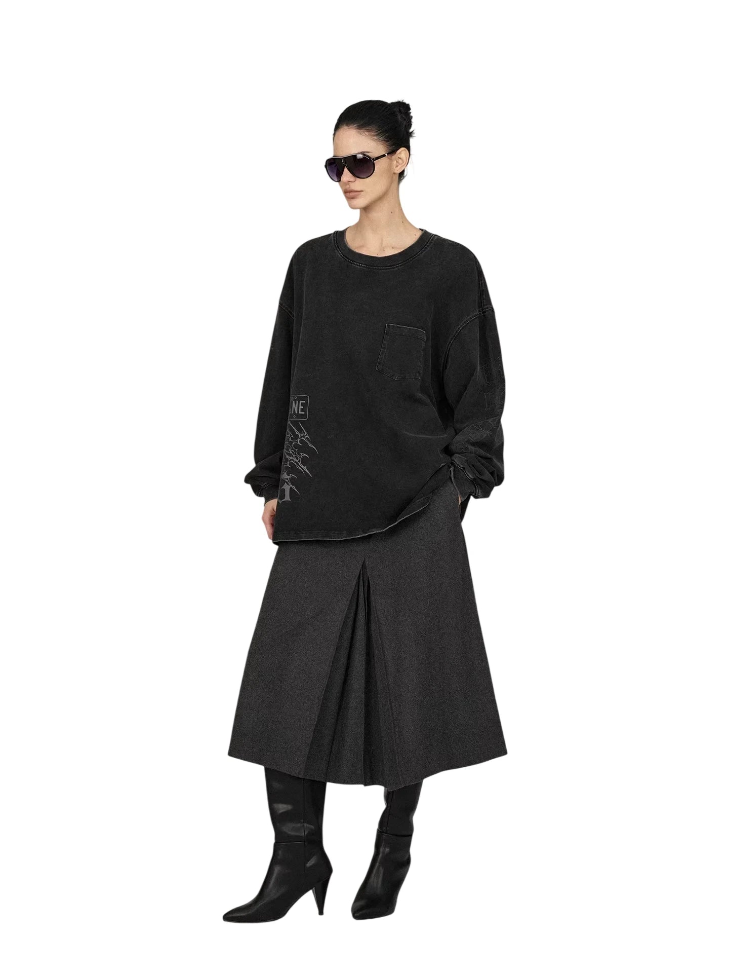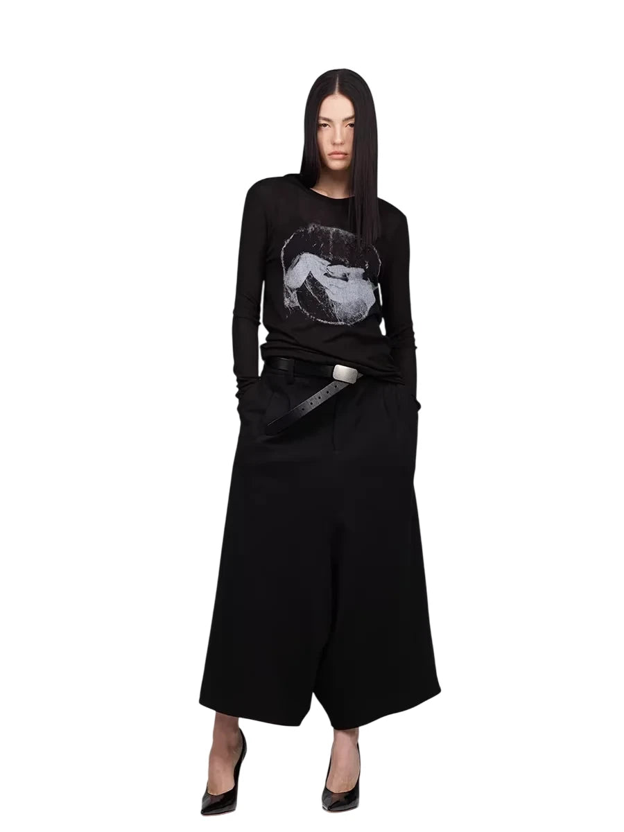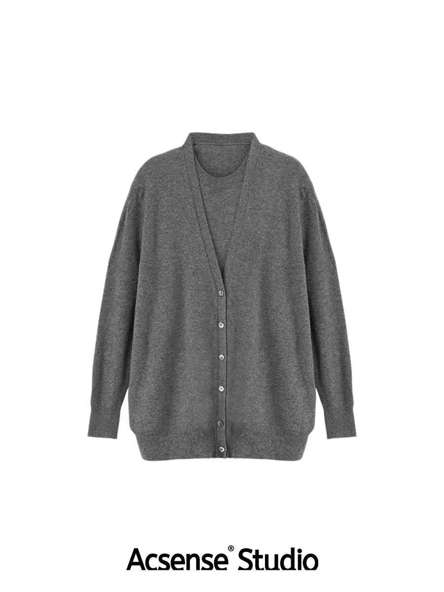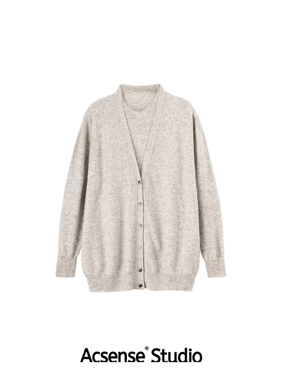 ACSENSE STUDIO Oversized Wool Knit Top with Faux Two-Piece Design