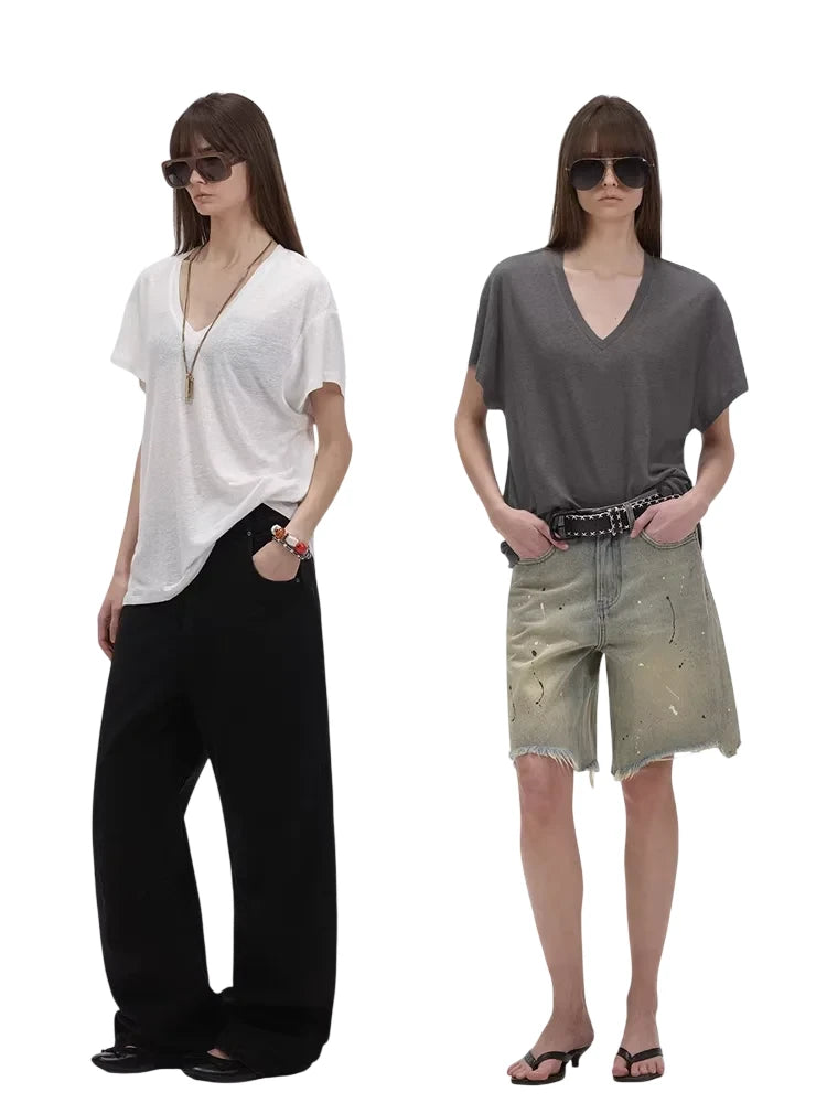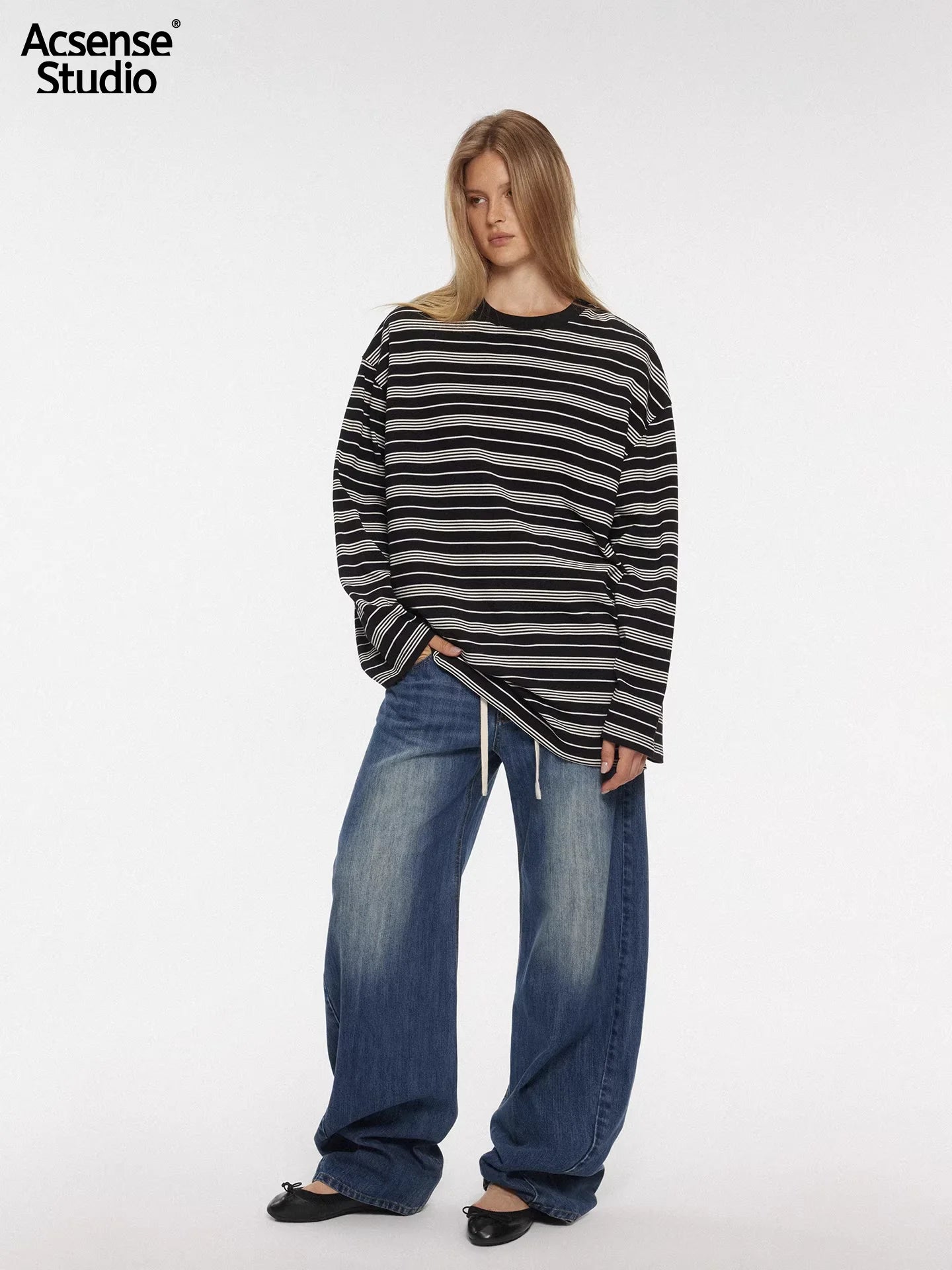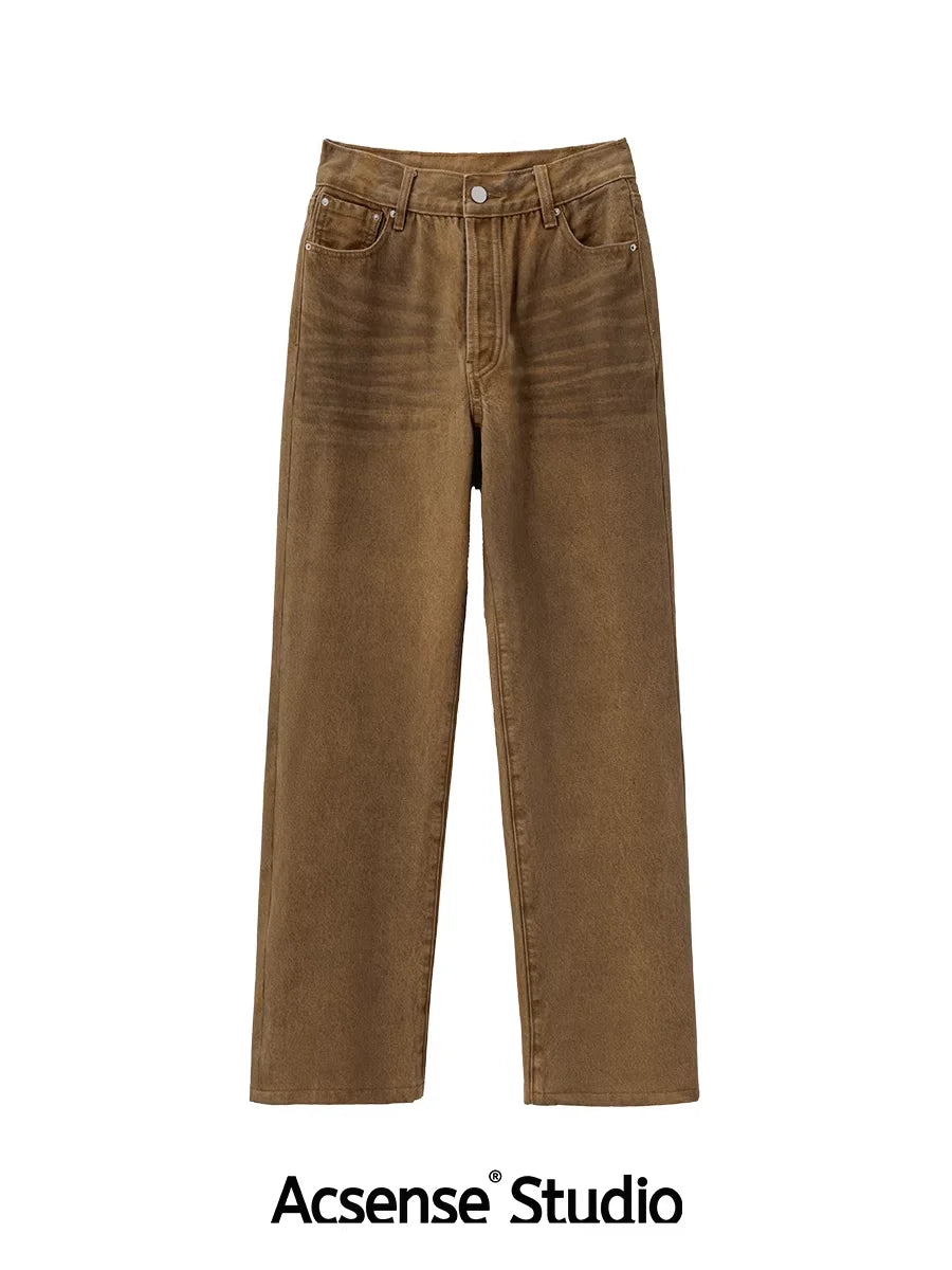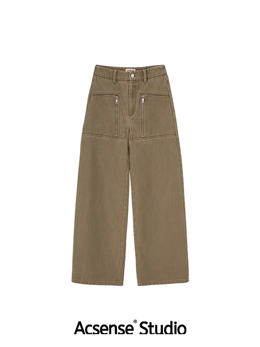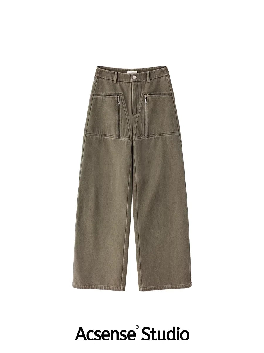 ACSENSE STUDIO Washed Denim Wide-Leg Pants with Zipper Flap and Stitch Detailing