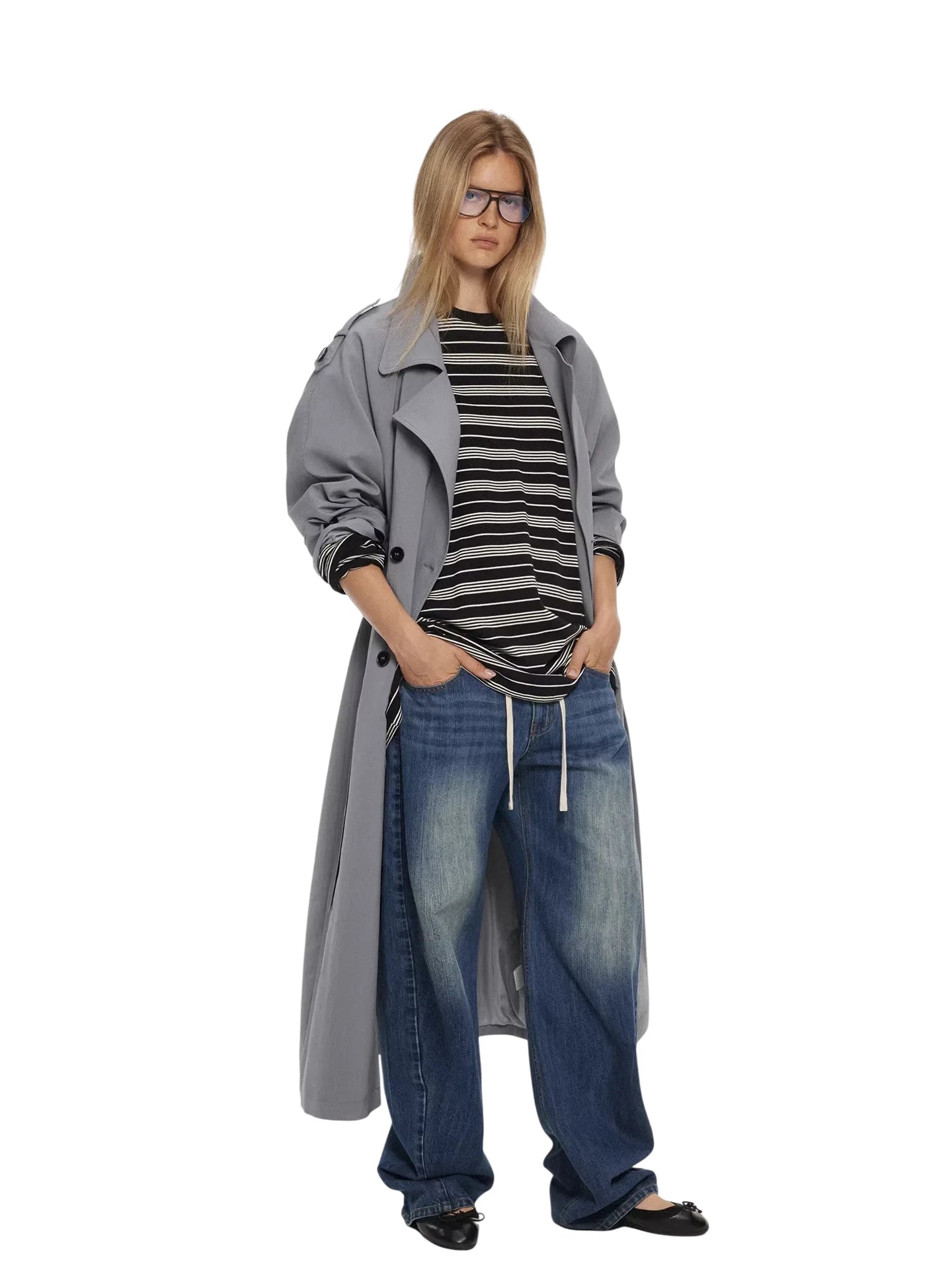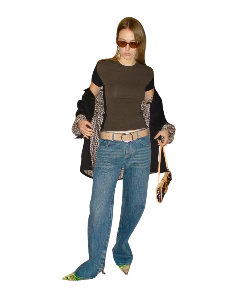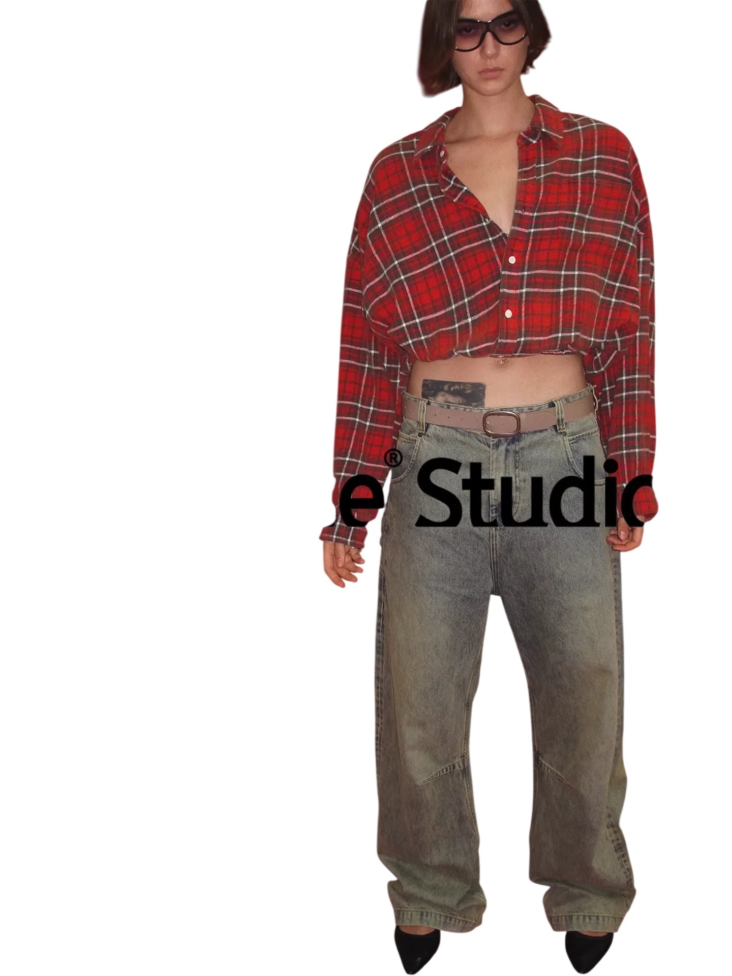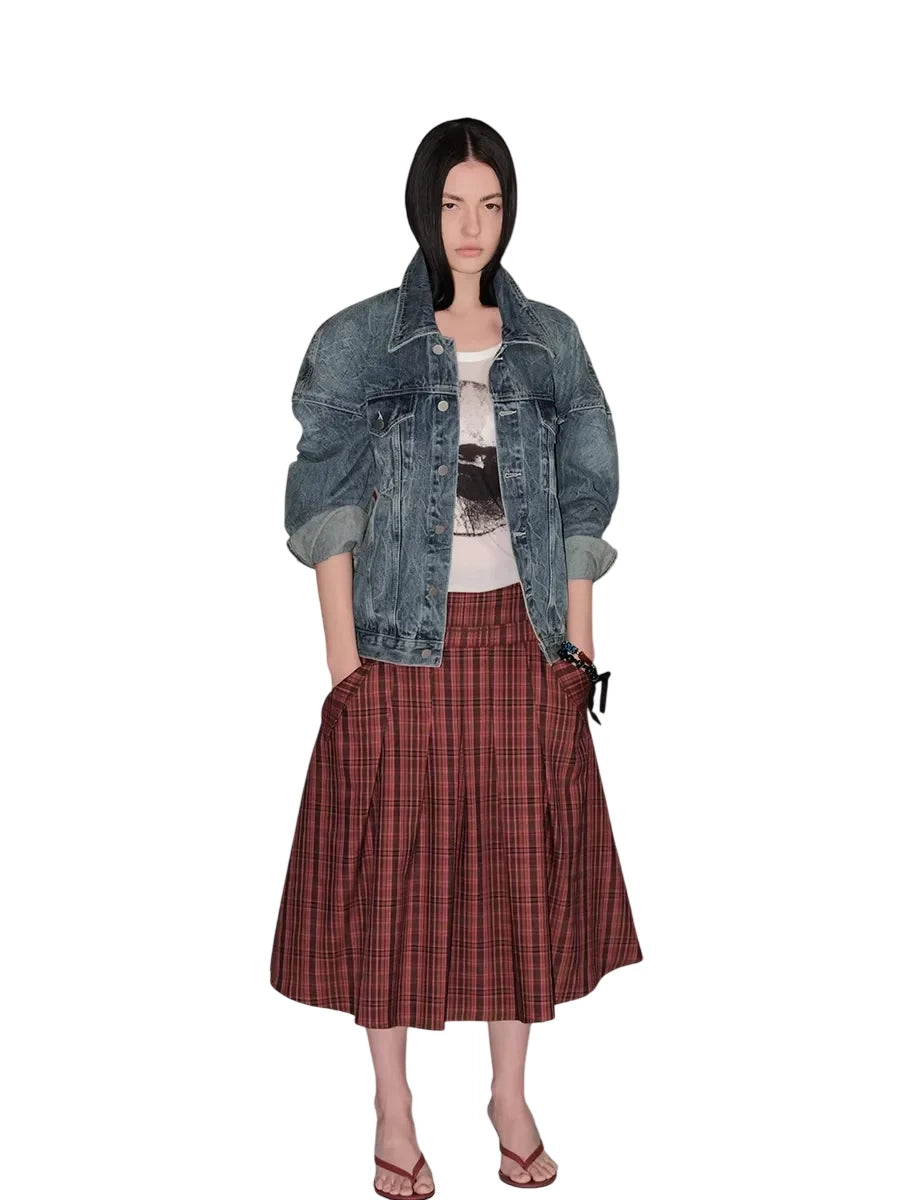 ACSENSE STUDIO Washed Denim Wide-Leg Pants with Zipper Flap and Stitch Detailing