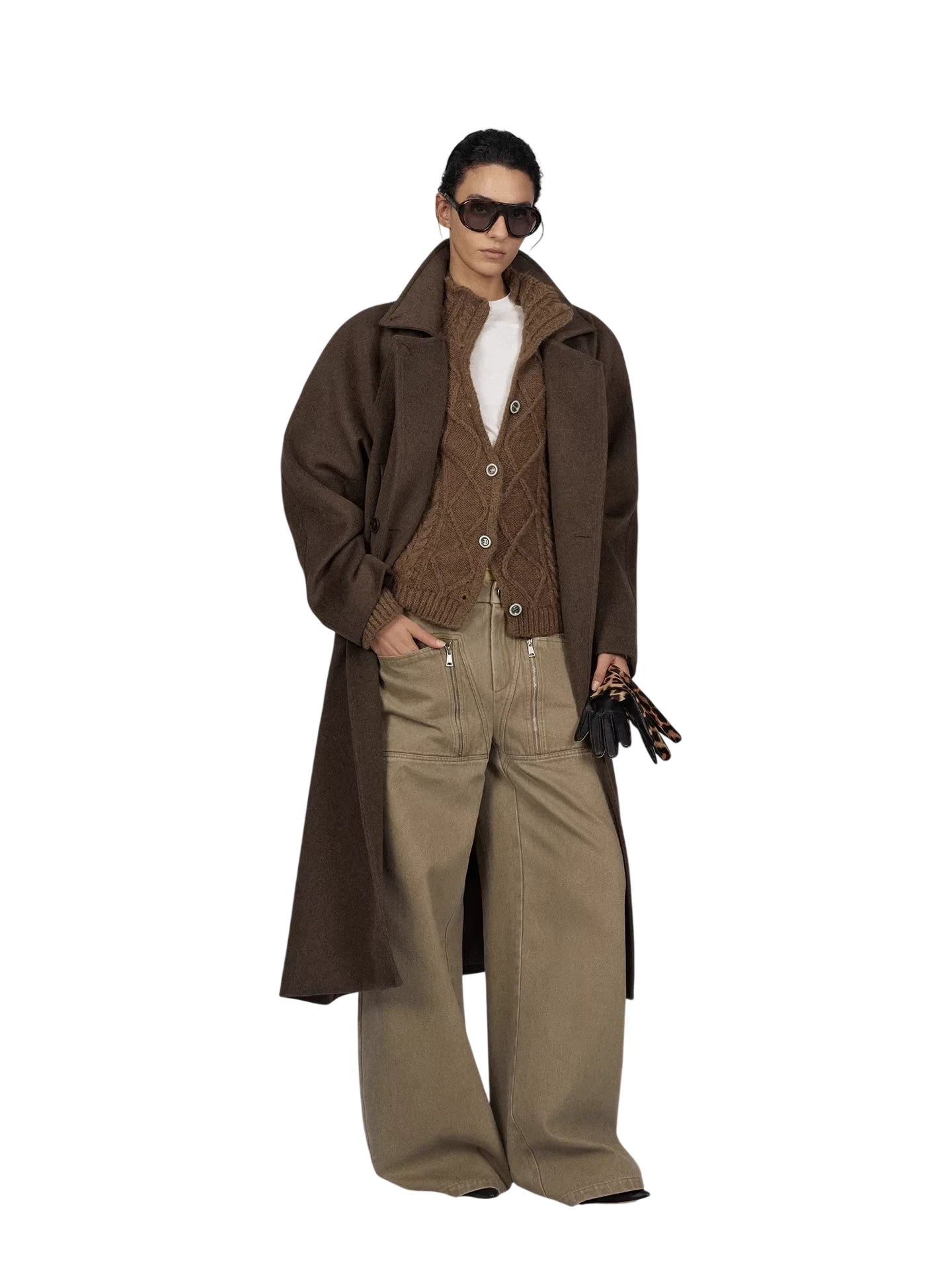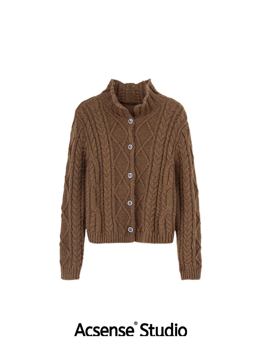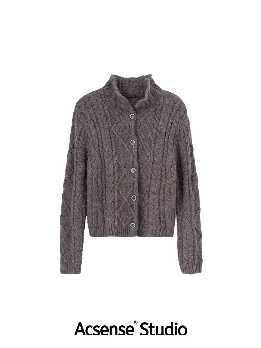 ACSENSE STUDIO Chunky Cable Knit Wool Cardigan - Oversized Fit