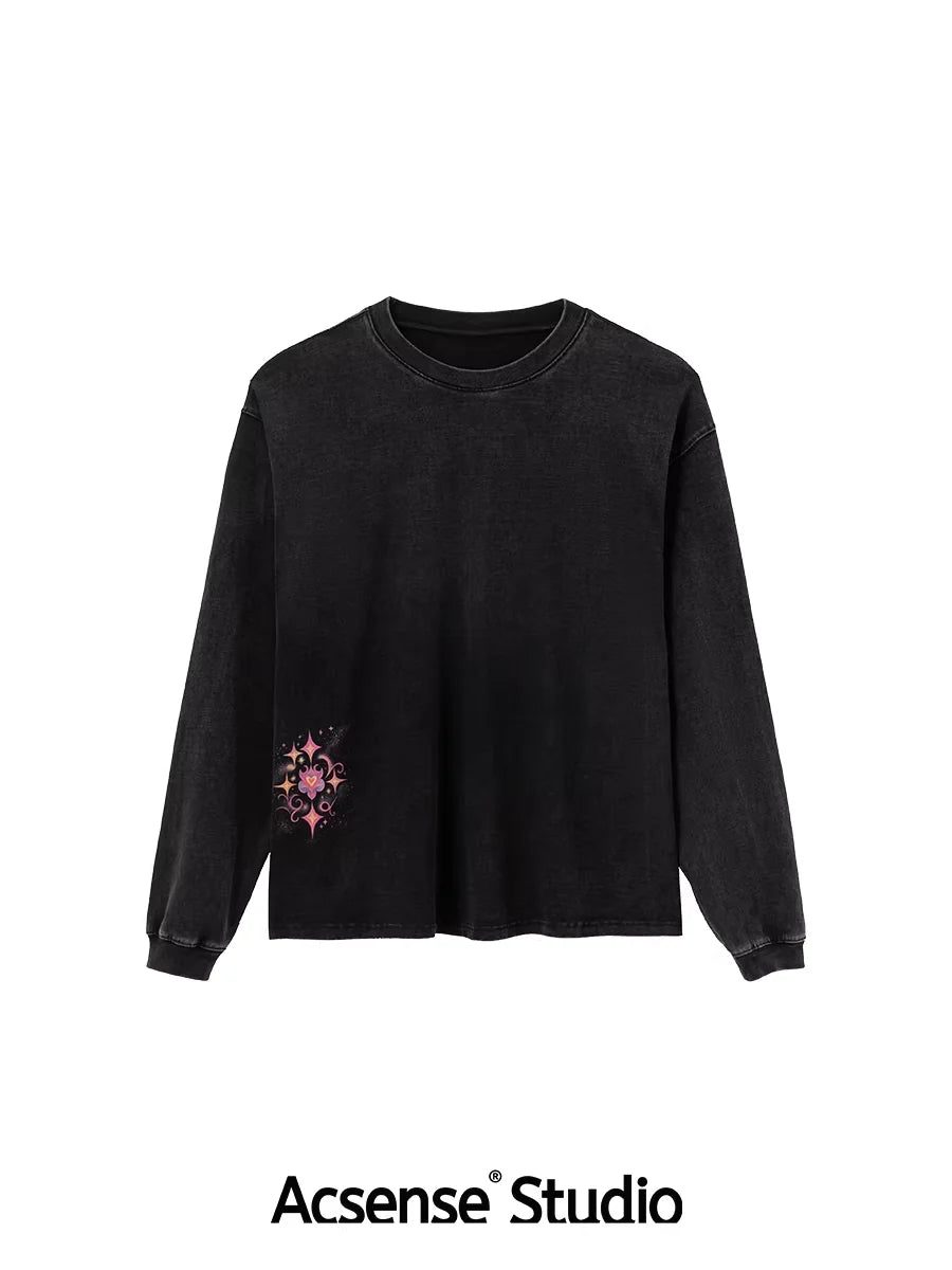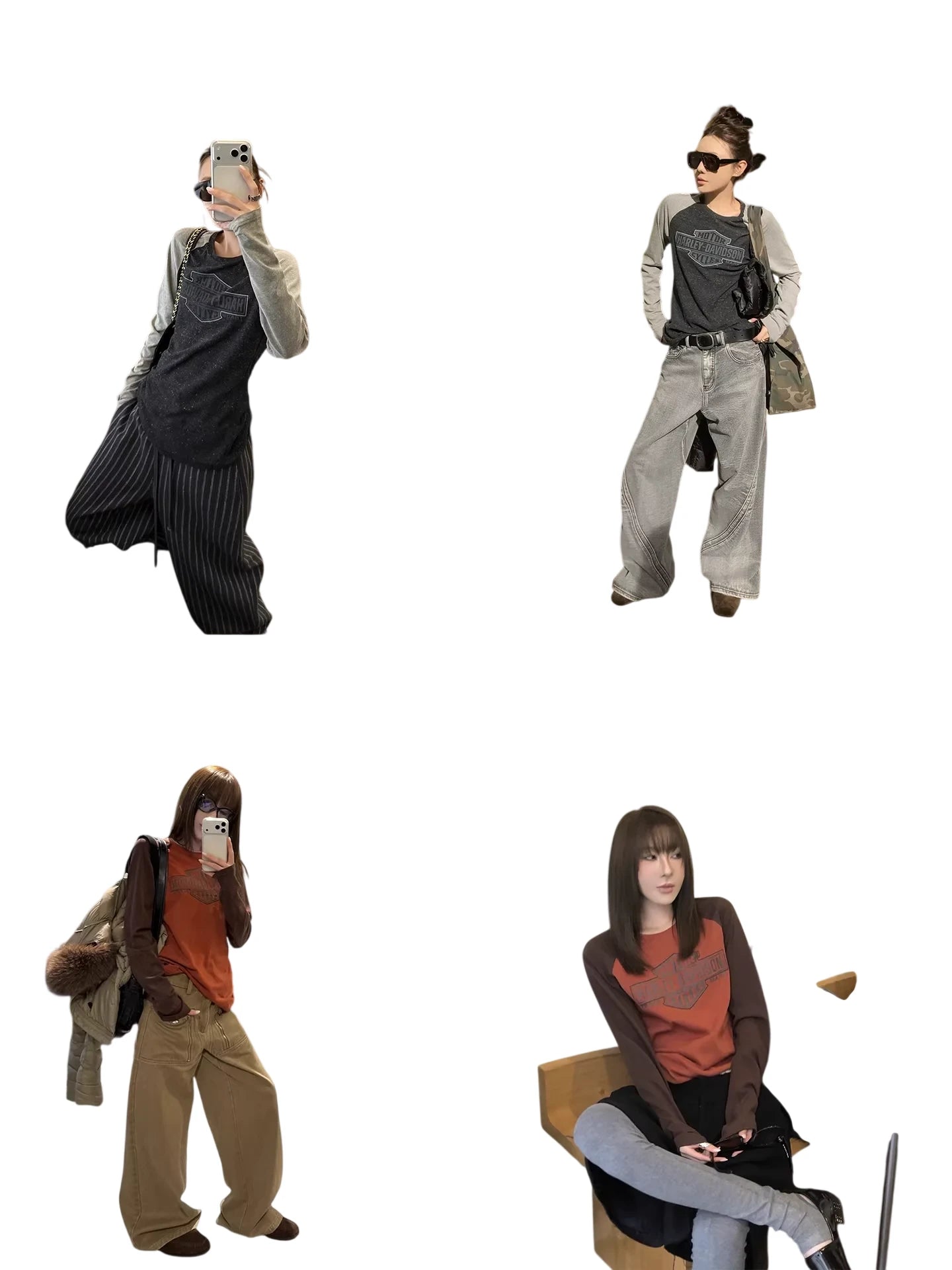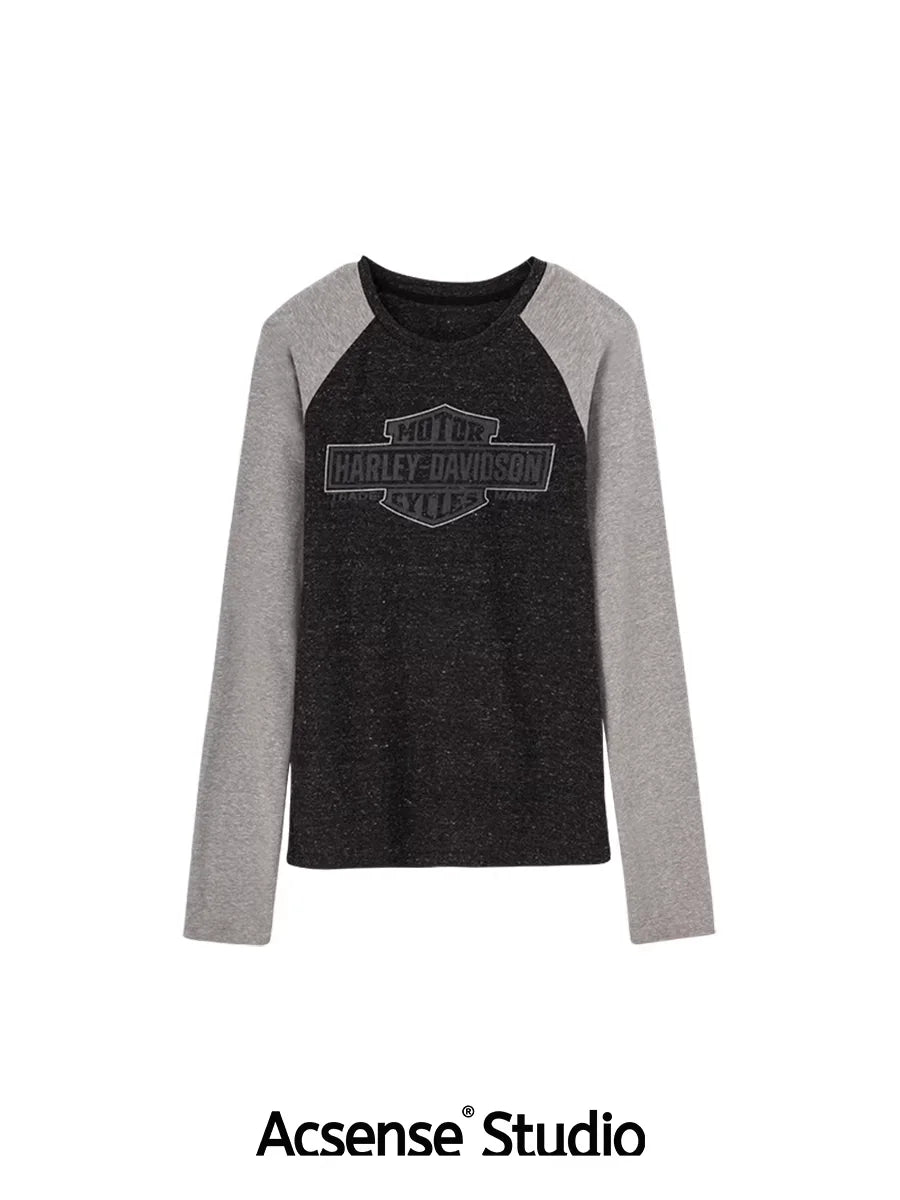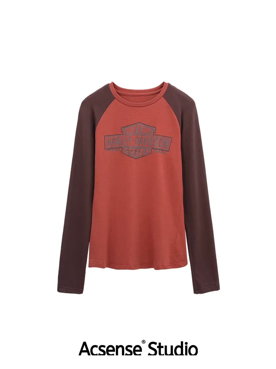 ACSENSE STUDIO Vintage Raglan Sleeve Slim Fit Letter Print Long Sleeve T-Shirt