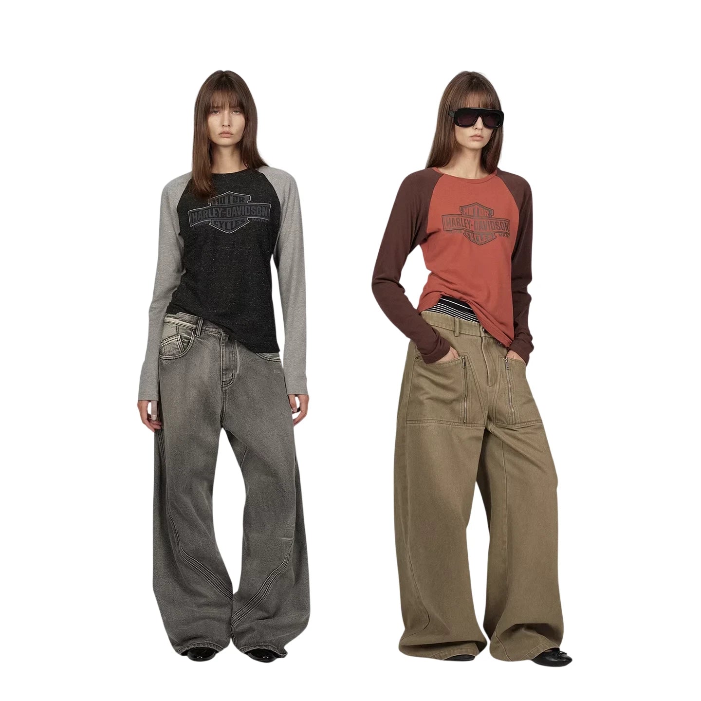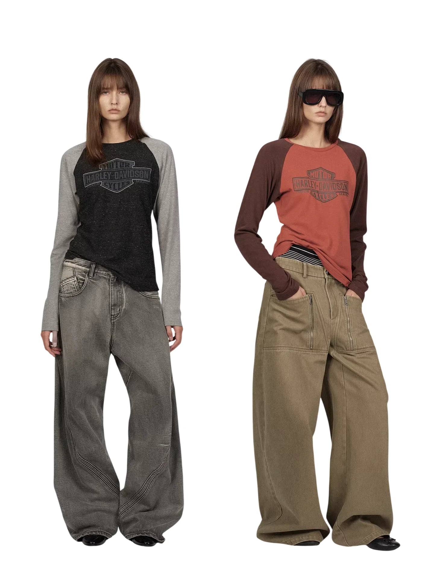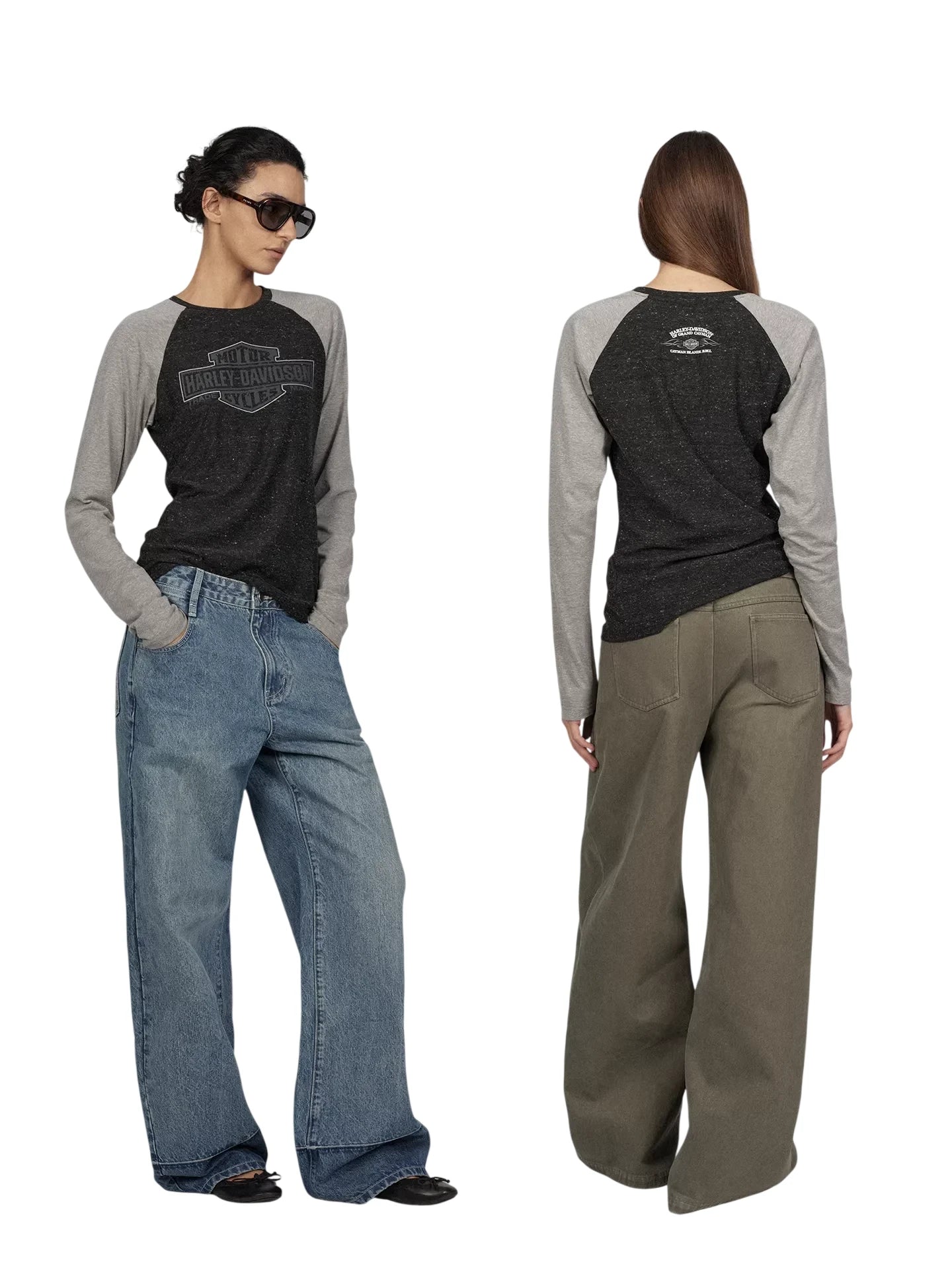 ACSENSE STUDIO Vintage Raglan Sleeve Slim Fit Letter Print Long Sleeve T-Shirt
