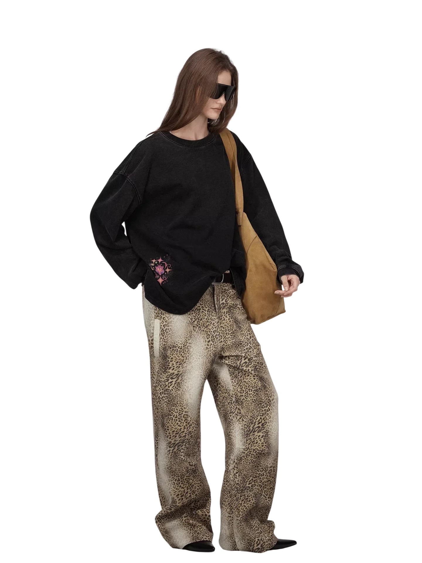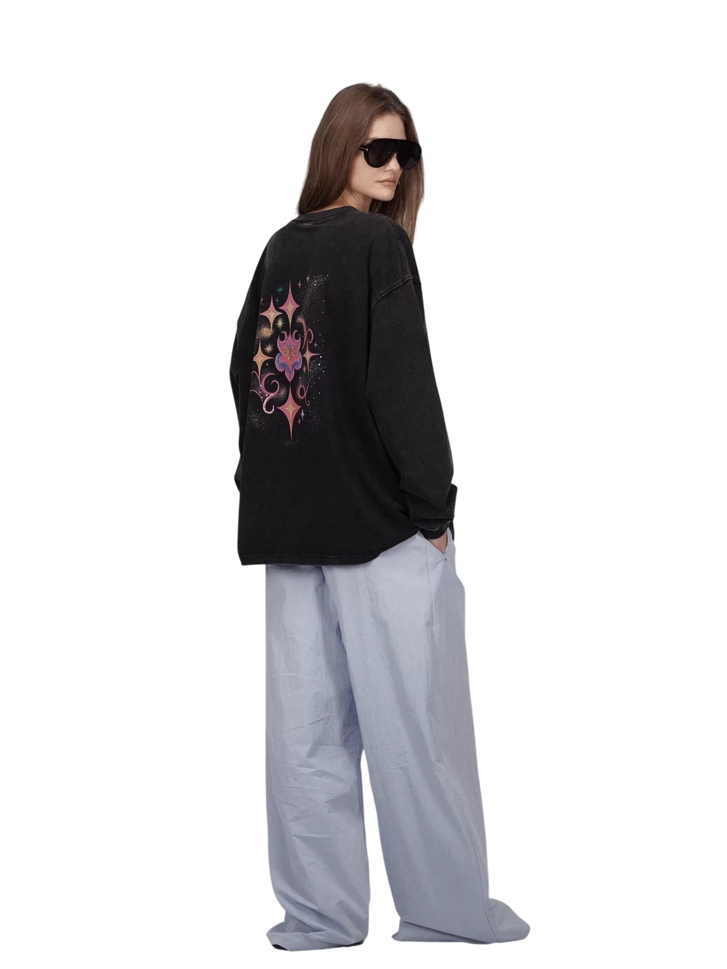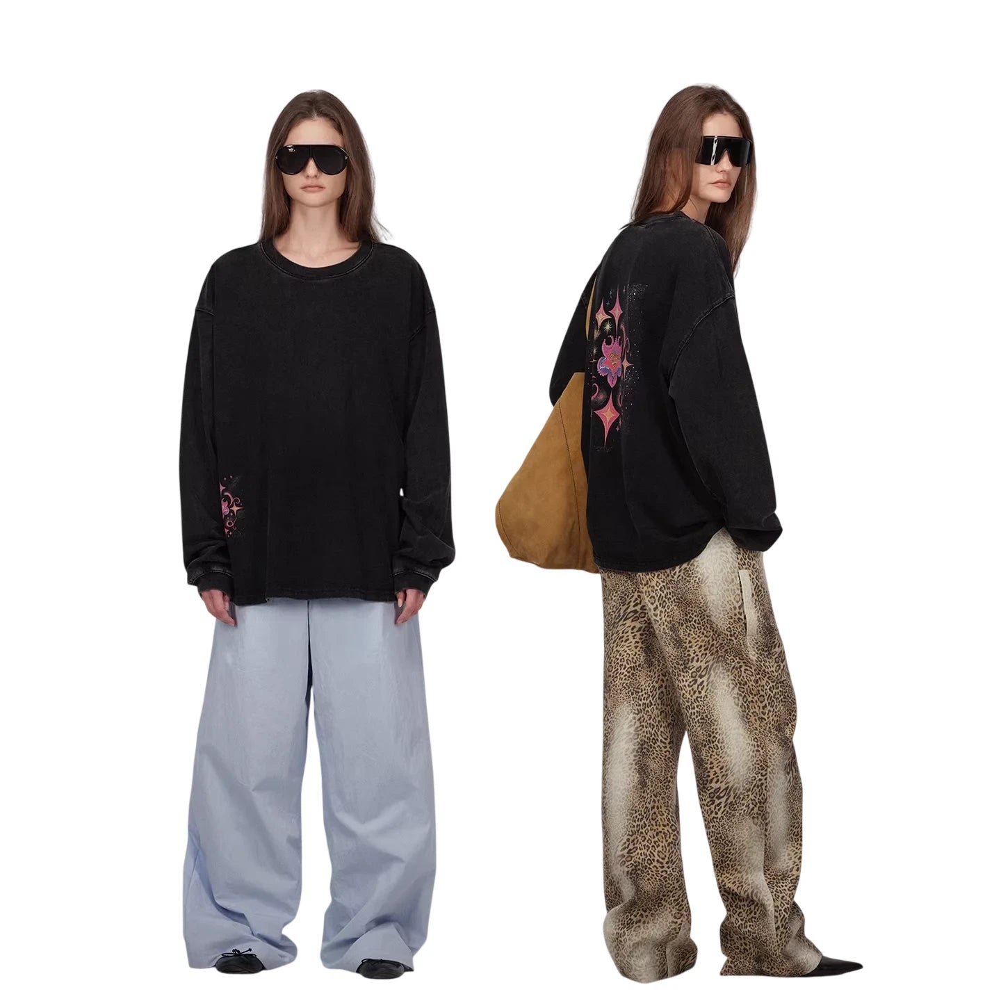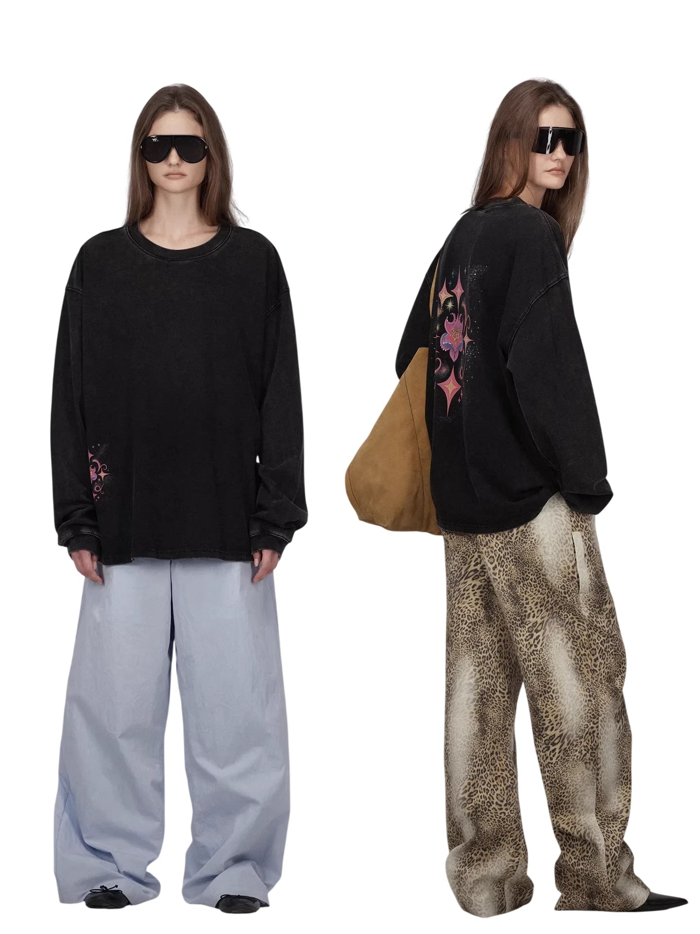ACSENSE STUDIO Vintage Raglan Sleeve Slim Fit Letter Print Long Sleeve T-Shirt