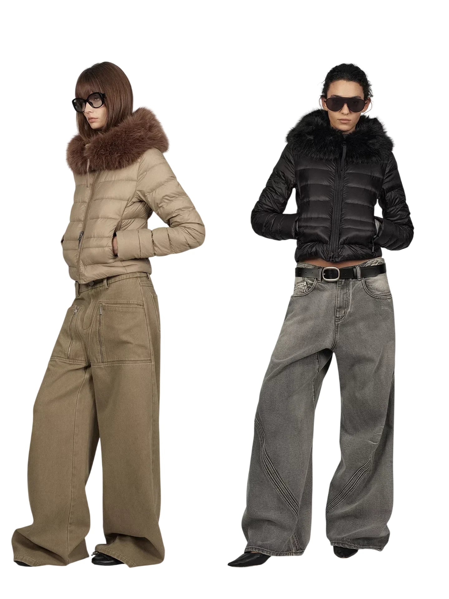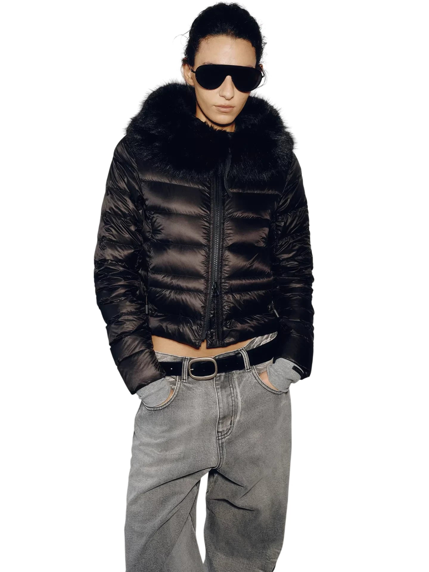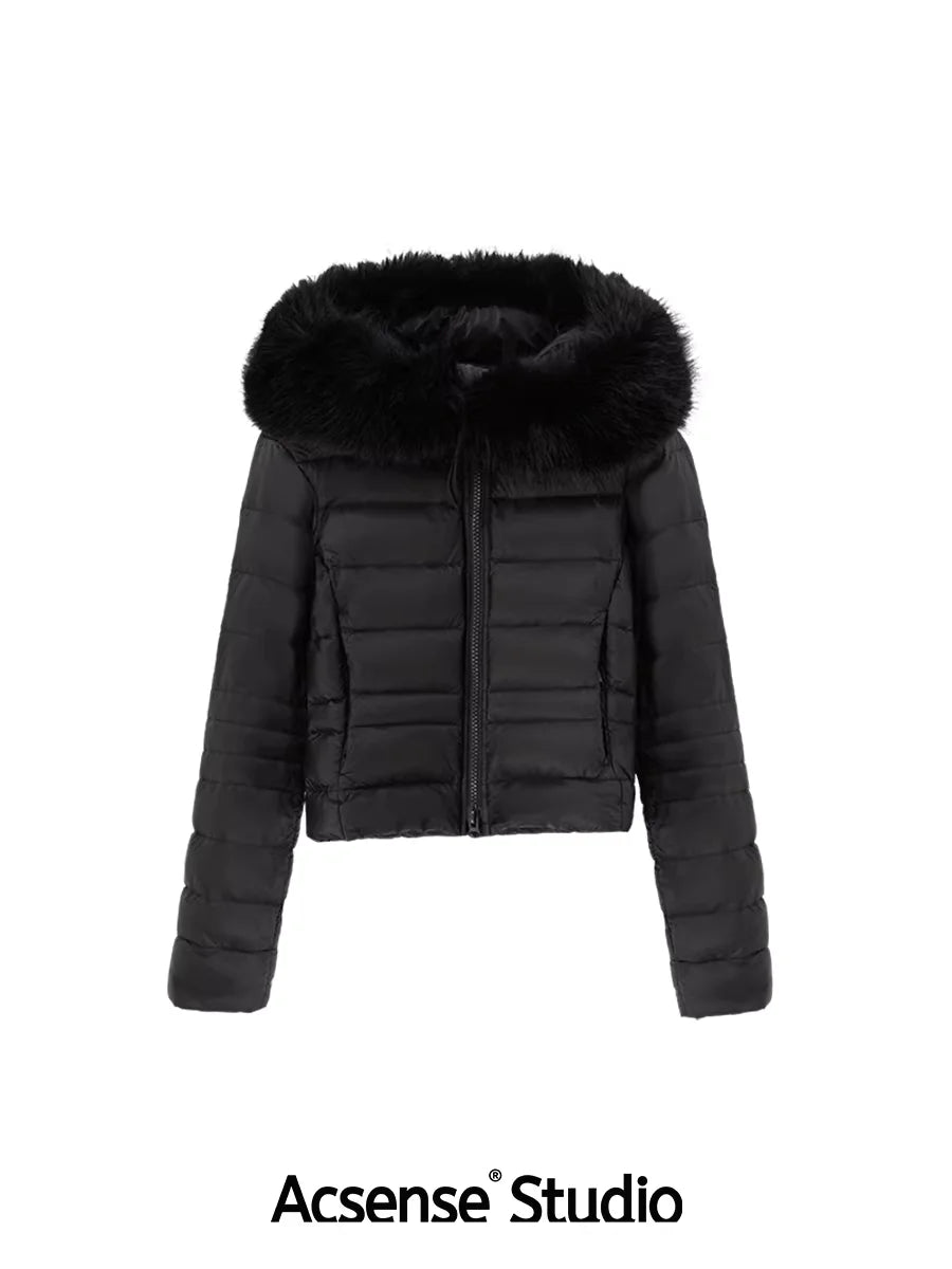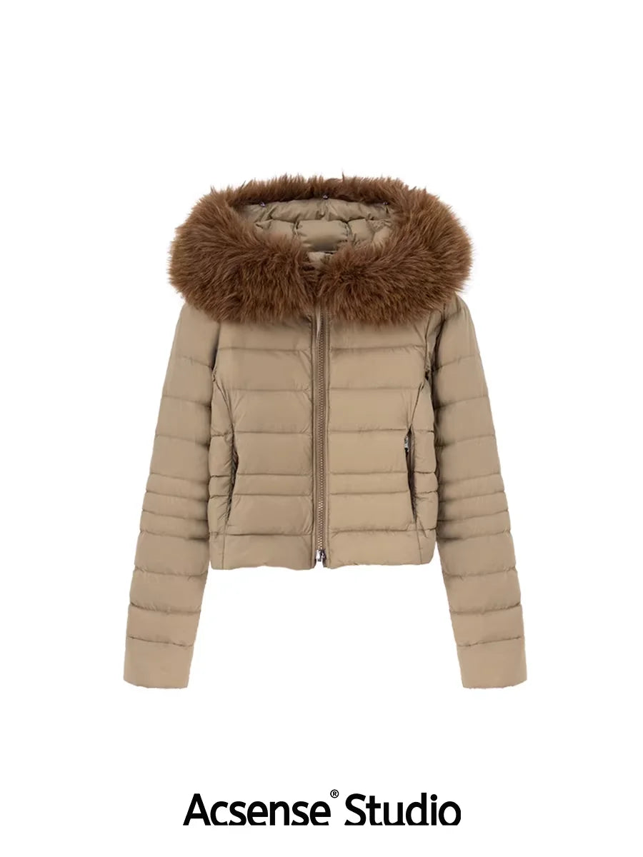 ACSENSE STUDIO Slim Fit Down Jacket with Detachable Fur Collar