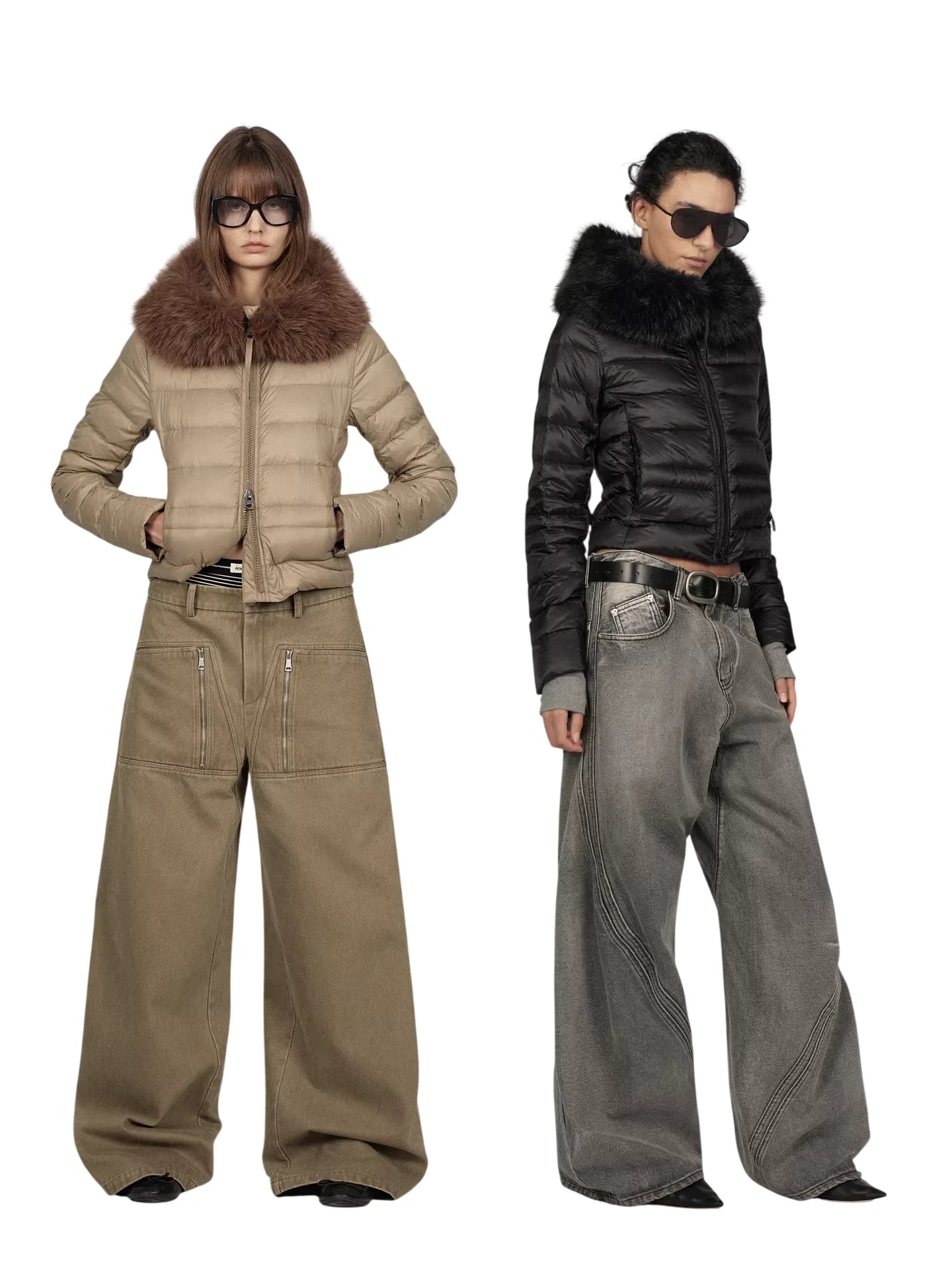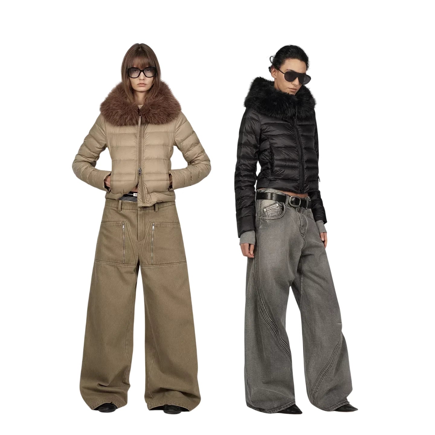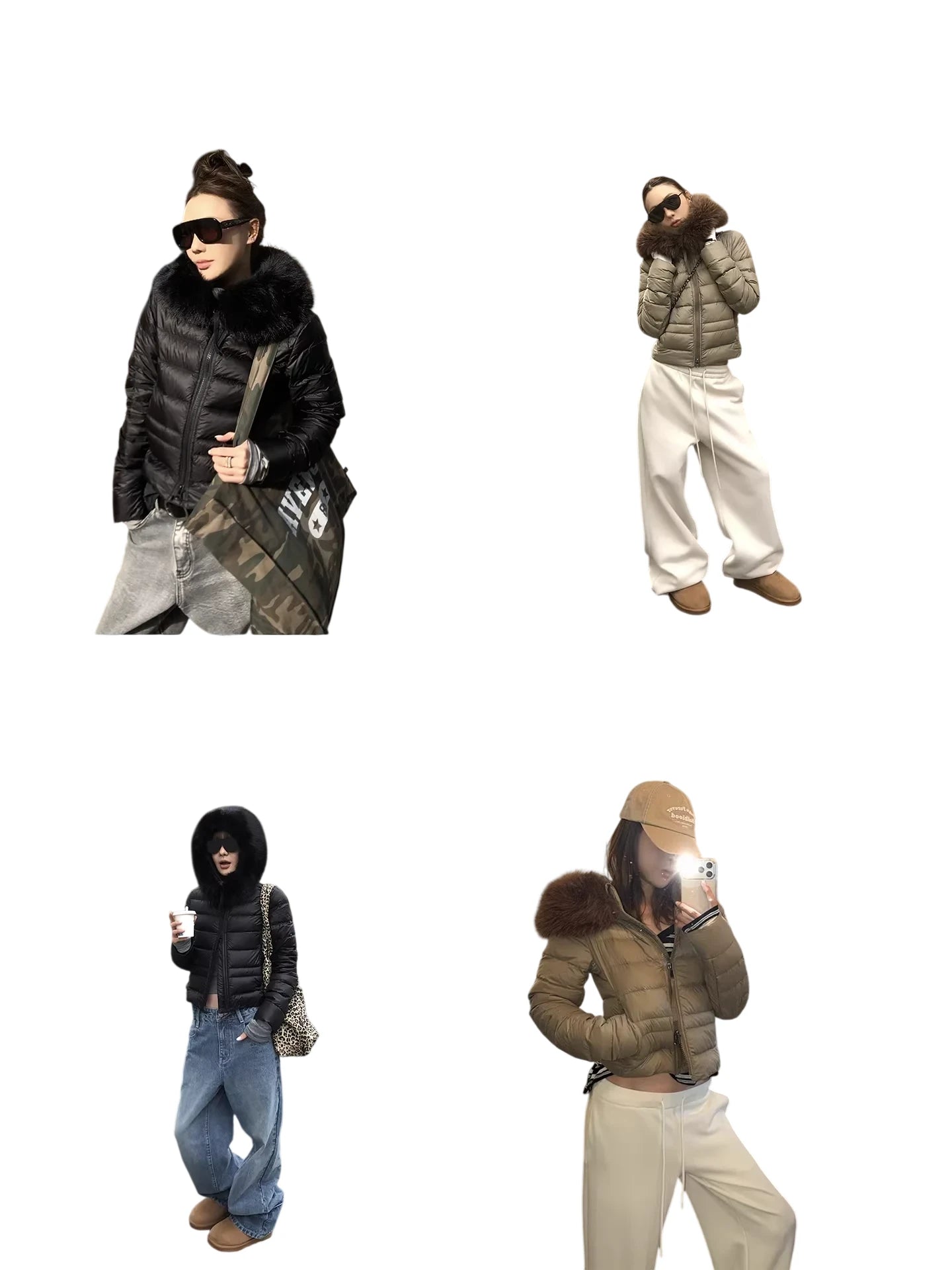 ACSENSE STUDIO Slim Fit Down Jacket with Detachable Fur Collar