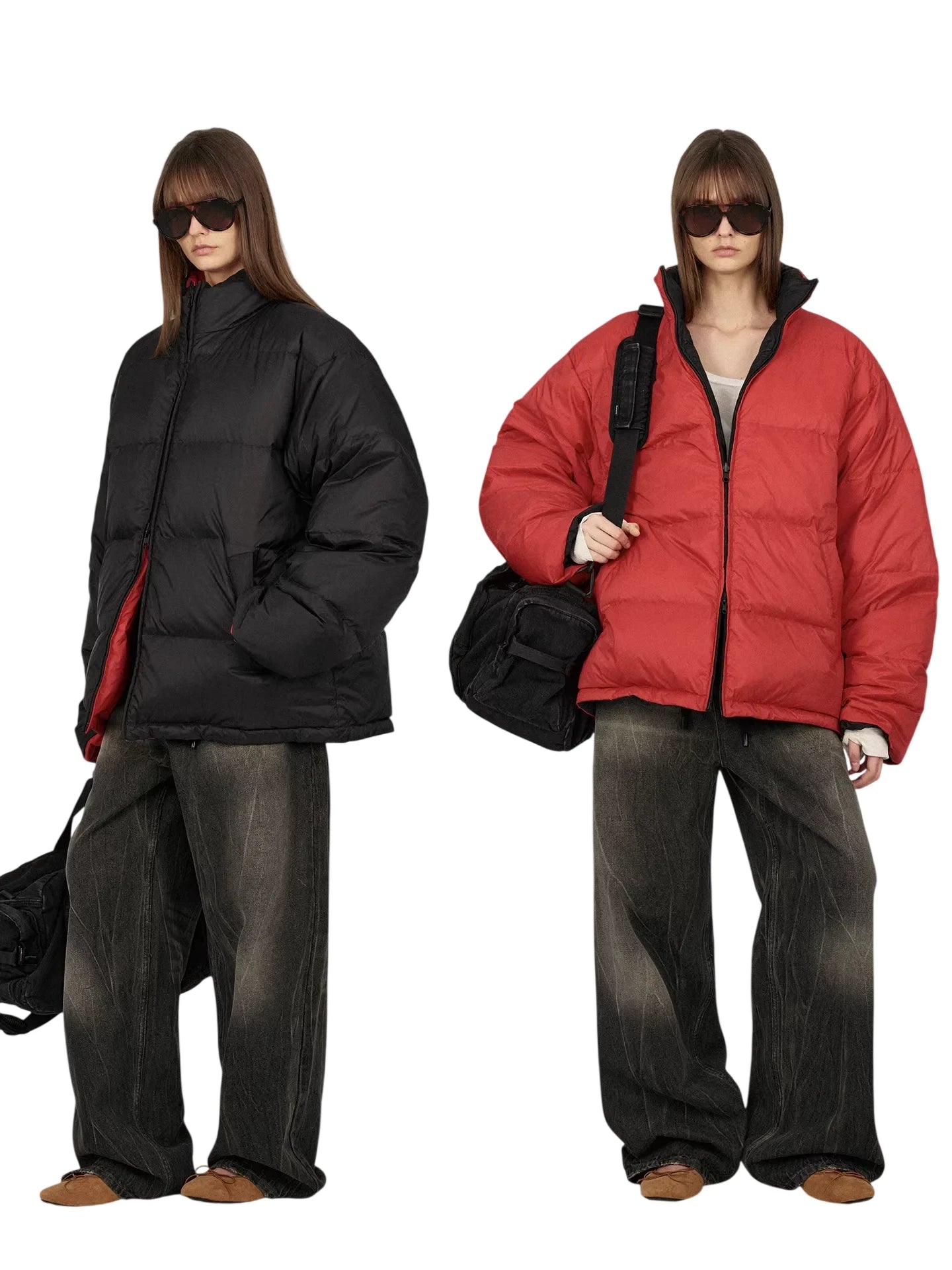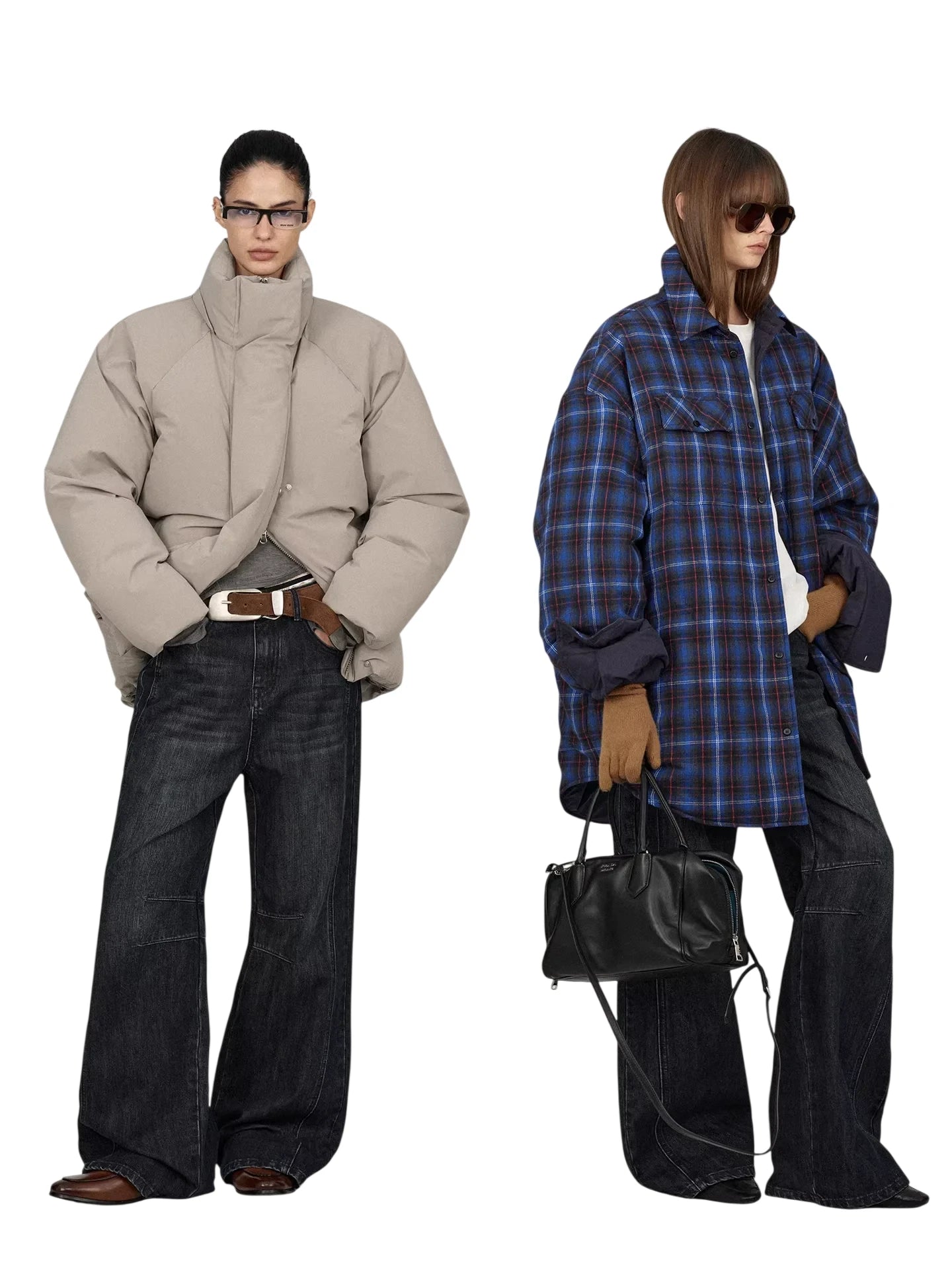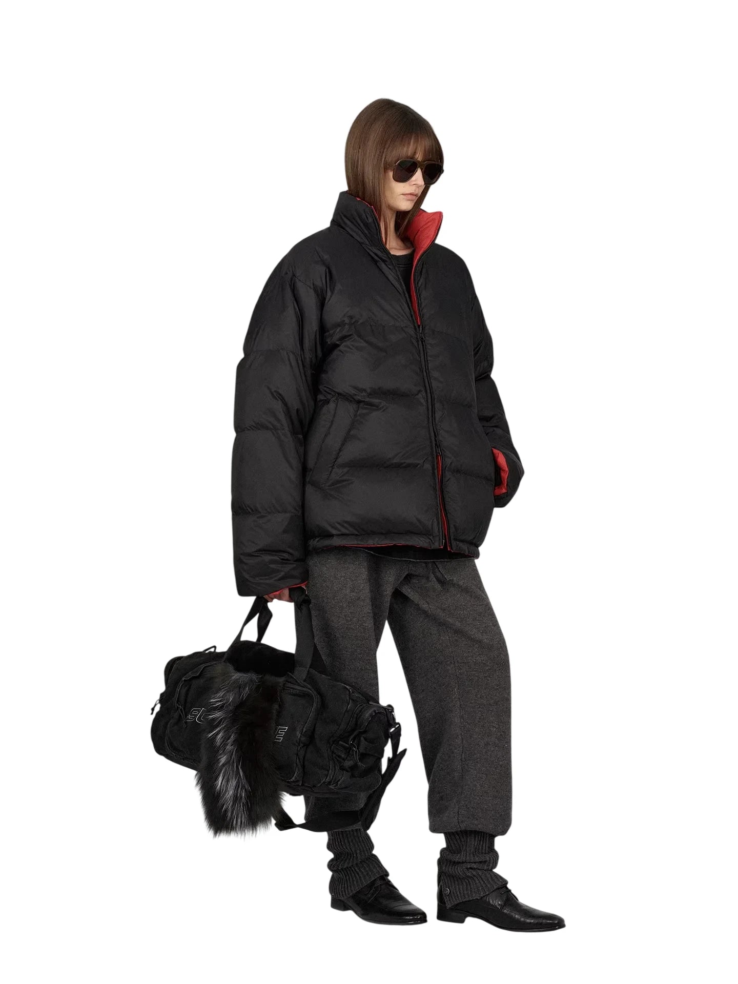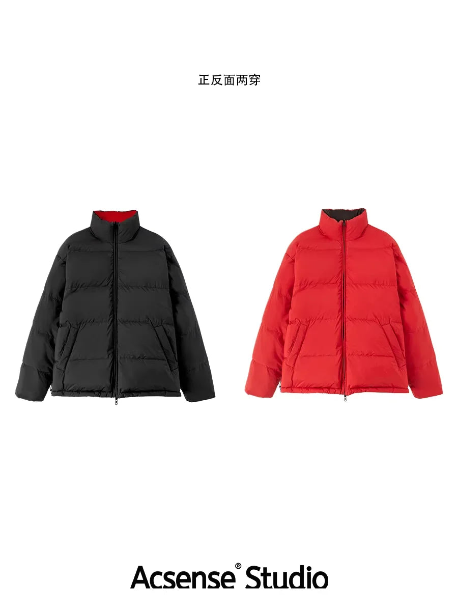 ACSENSE STUDIO Slim Fit Down Jacket with Detachable Fur Collar