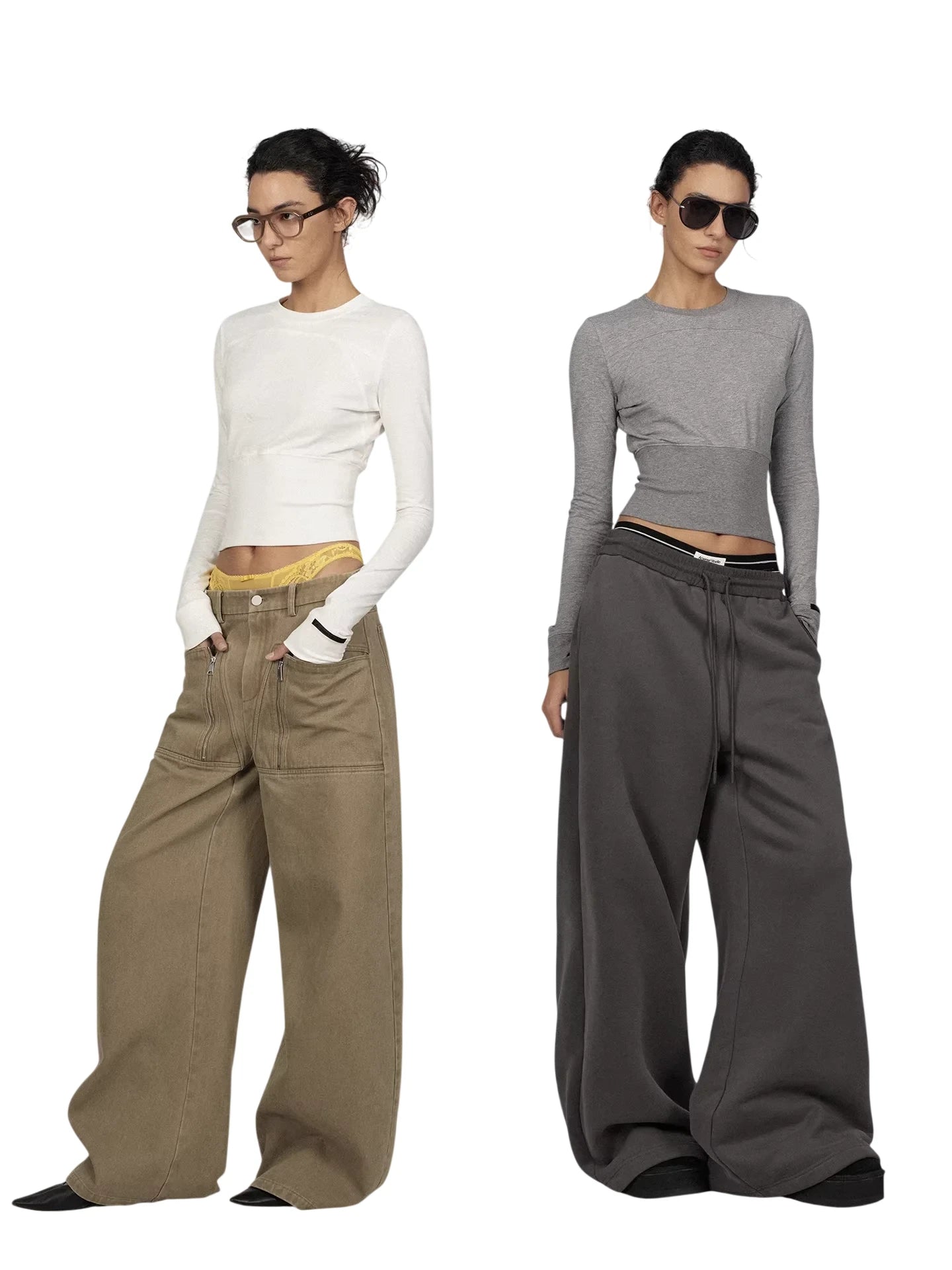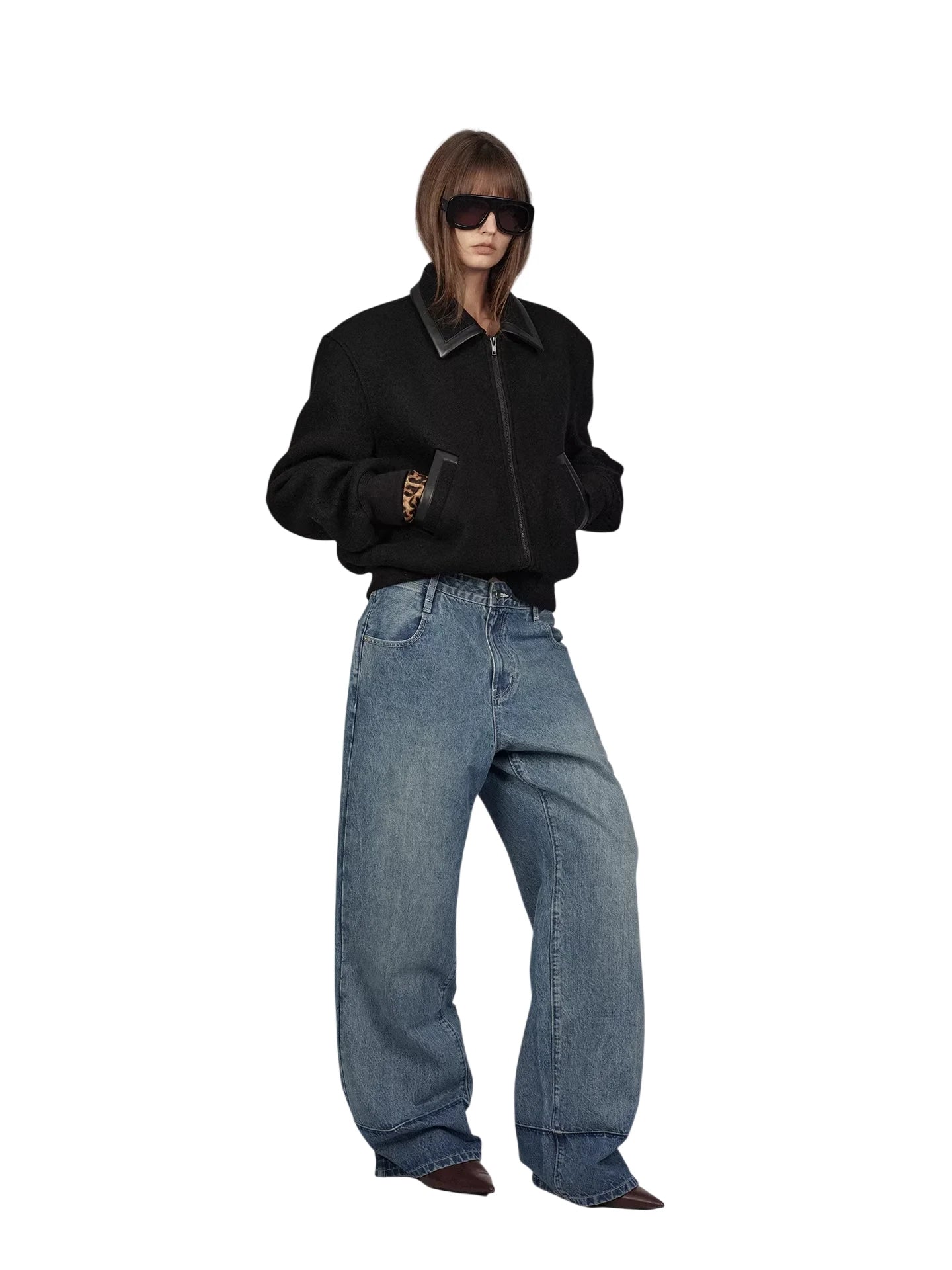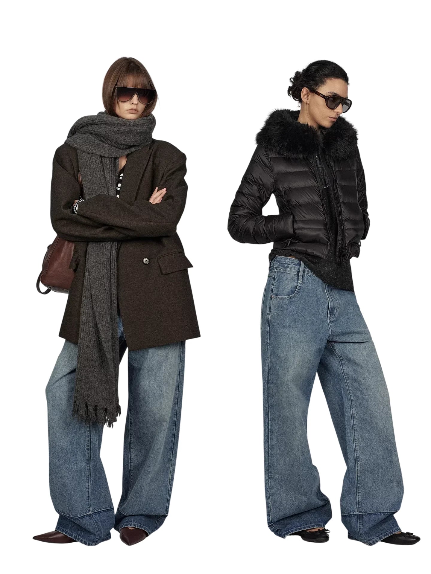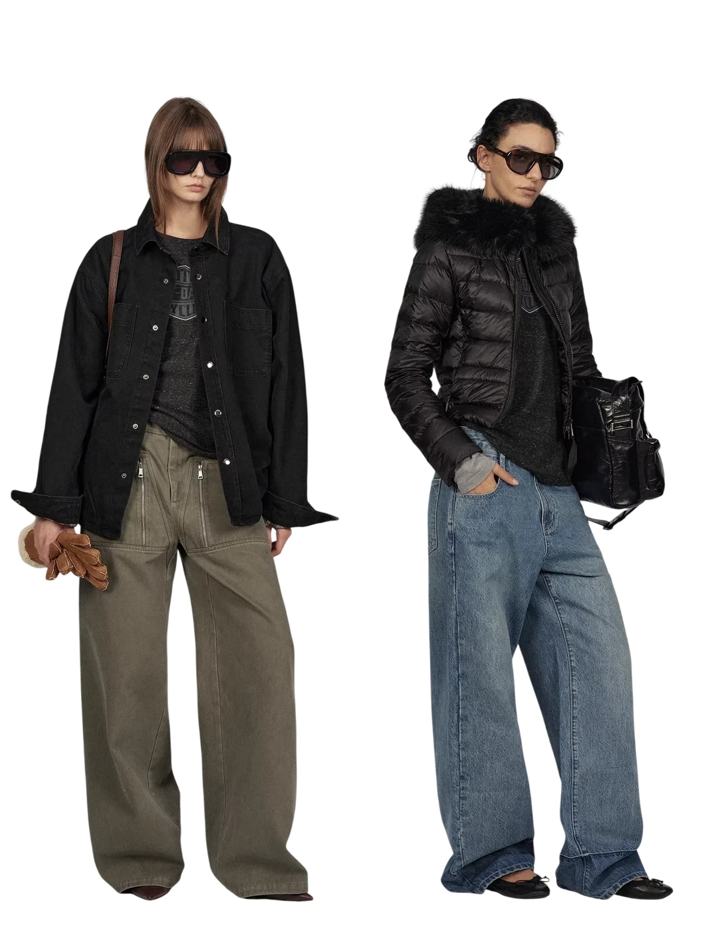 ACSENSE STUDIO Two-Tone Distressed Wide-Leg Jeans